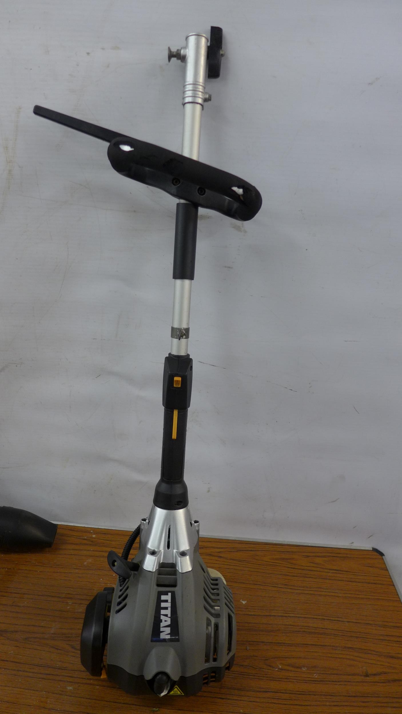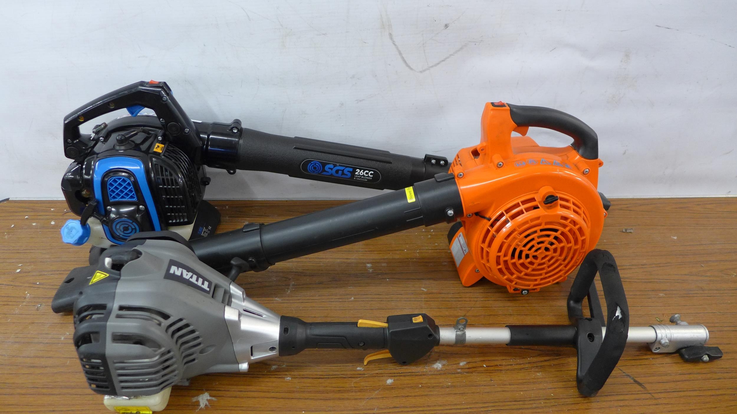 An SGS 26cc petrol driven leaf blower and vacuum, a Parker PGBV-2600 petrol driven leaf blower vac and a Titan TTK587 GDO, 25cc petrol driven multi-tool (no attachments) * Police repossession
