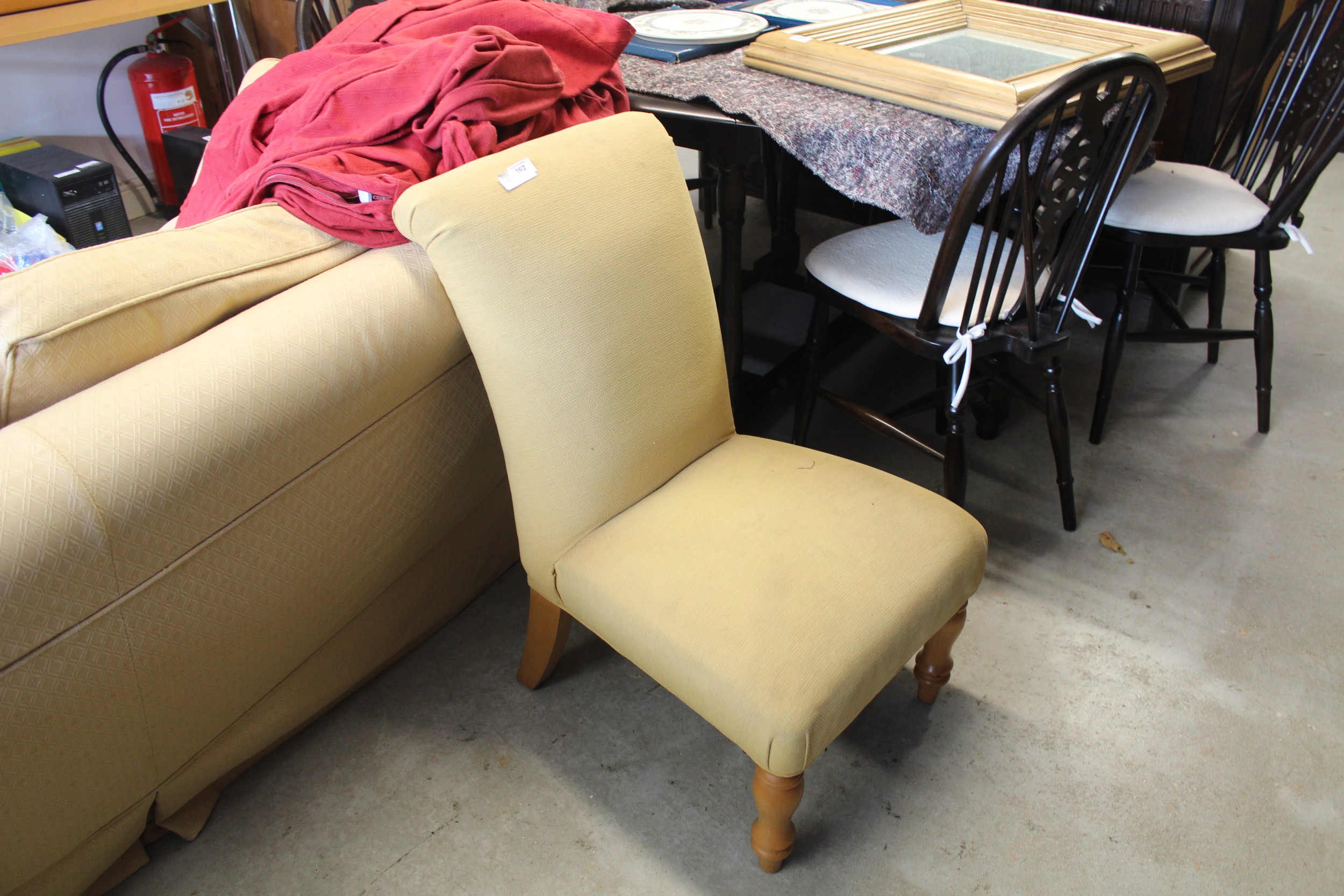 An Upholstered Nursing Chair on short turned legs