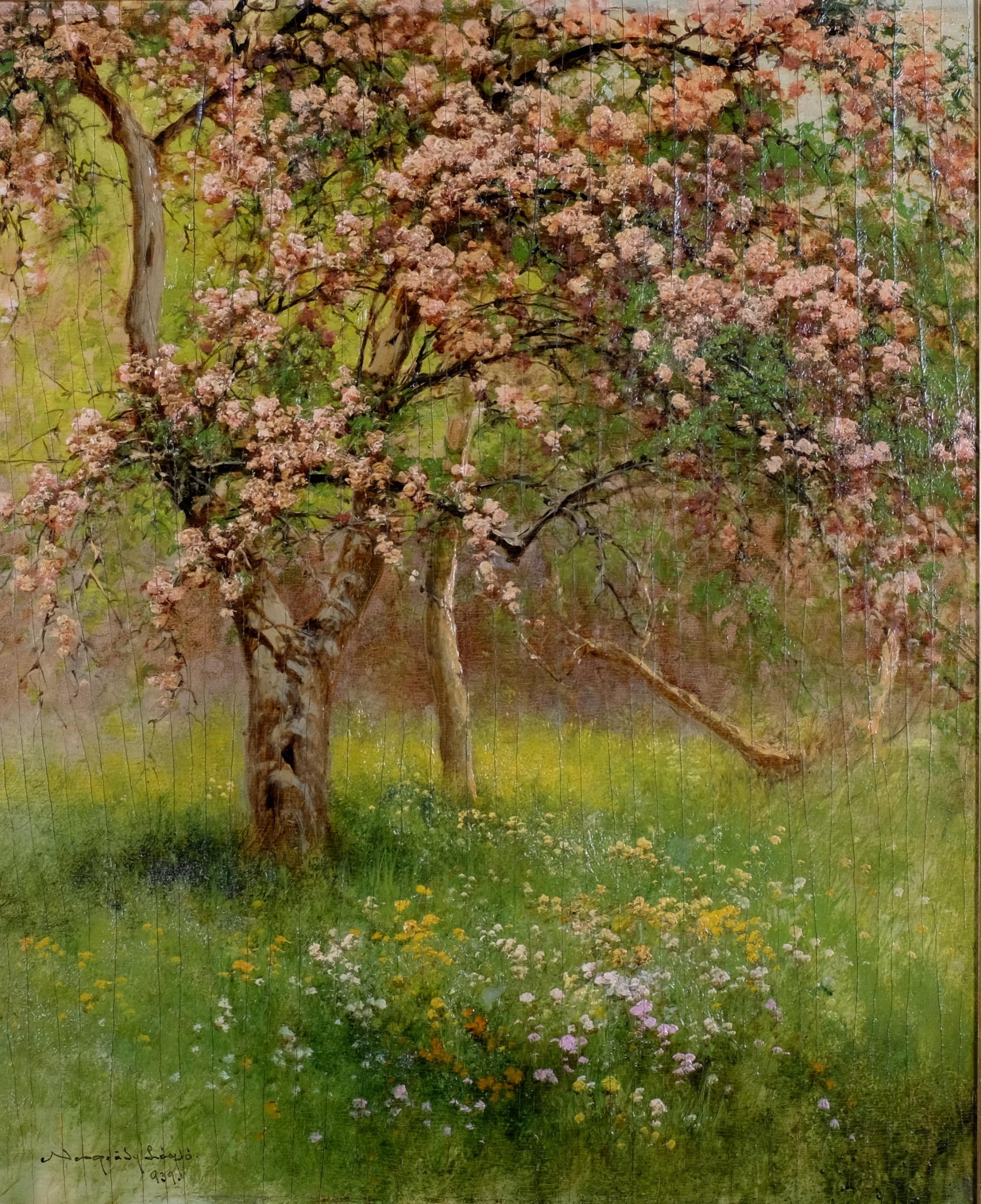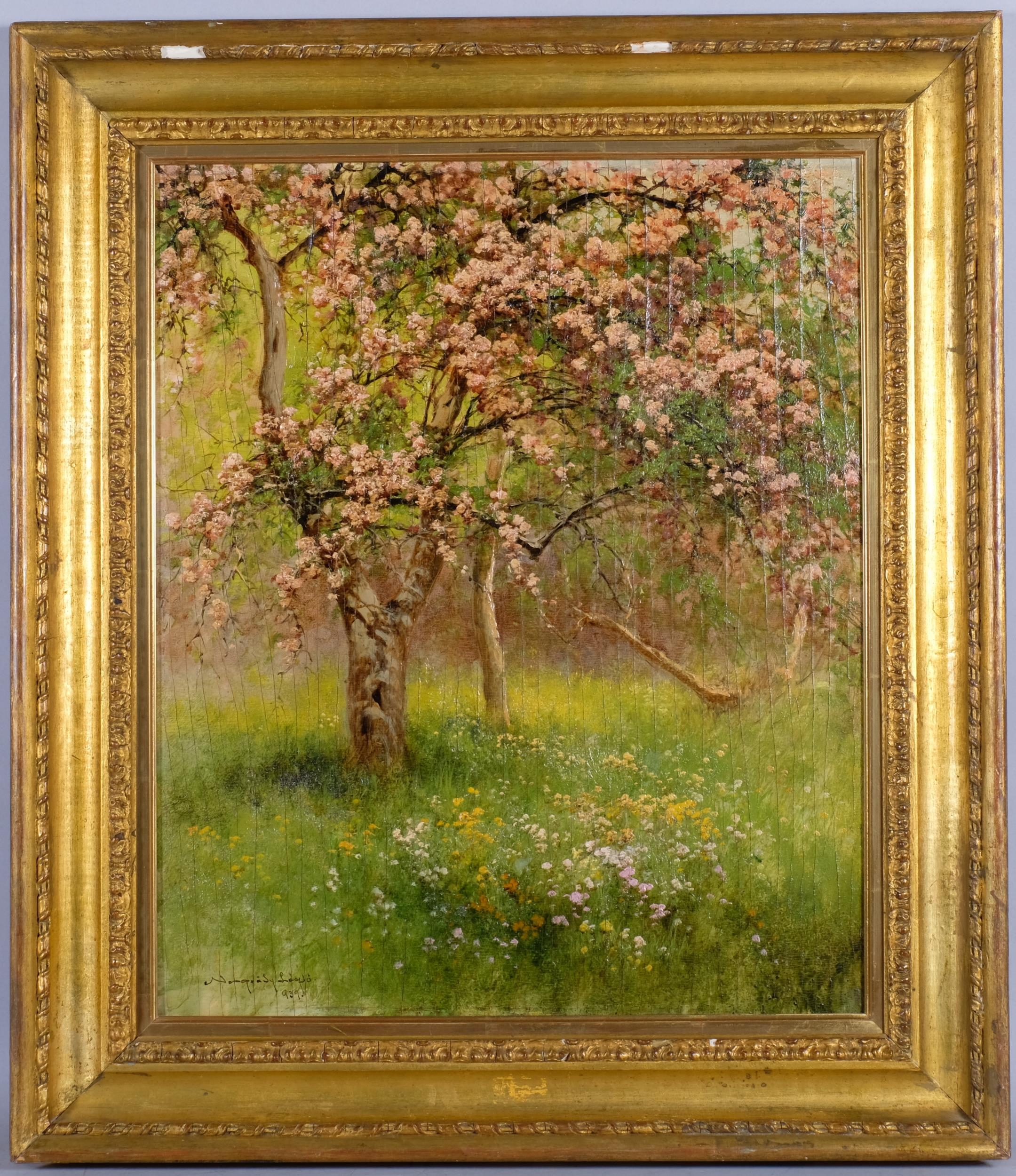 Laszlo Neogrady (1896 - 1962), blossom trees, oil on board, 60cm x 50cm, framed