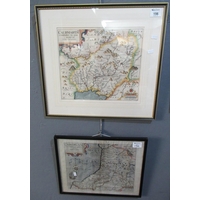 Two reproduction maps of the UK and North Wales after Mercator and Robert Morden together with an original Strip Road Map of The road from Monmouth to Llanbedr by John Ogilby. Ogilby unframed. (3)