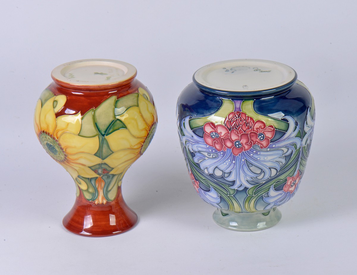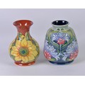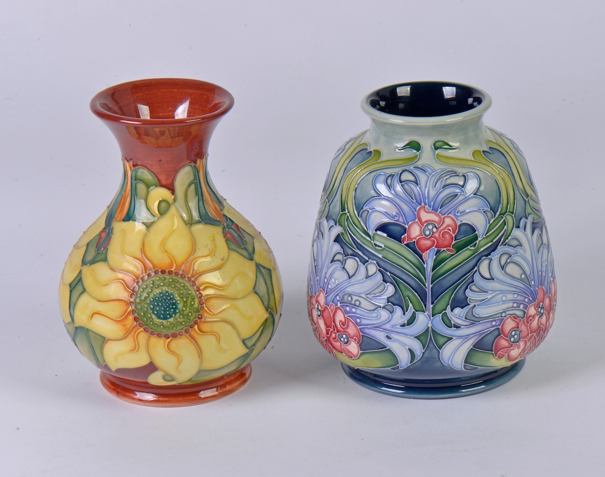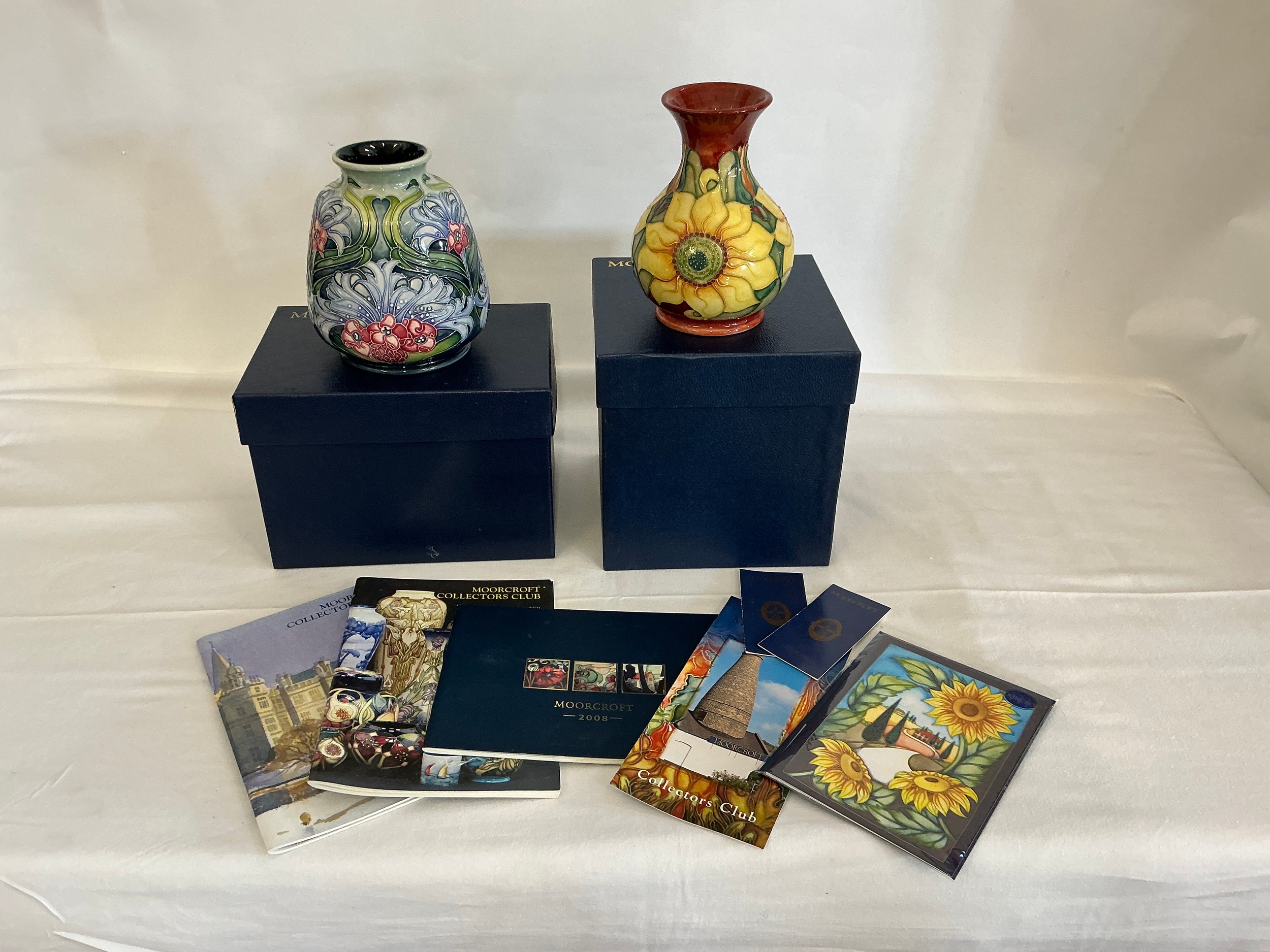 A Sunflower Moorcroft Vase & one other decorated in the Art Nouveau style Complete with Boxes & Paperwork. Measuring: 15cms High.