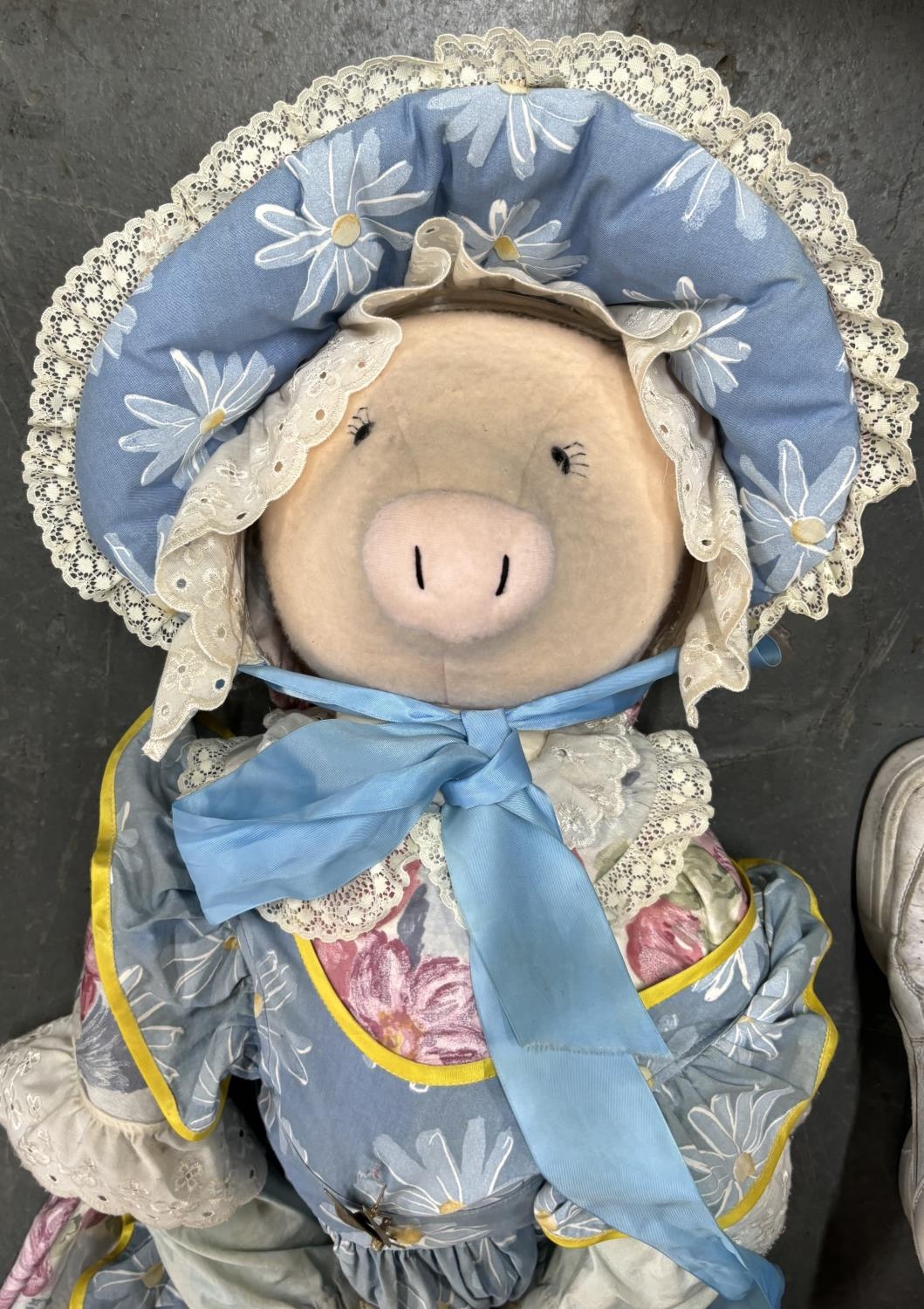Jean and Rose bee toy of a pig with clothes HOOVER COVER