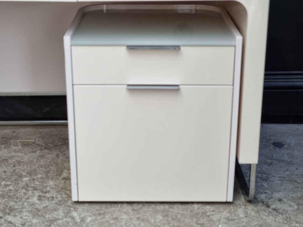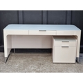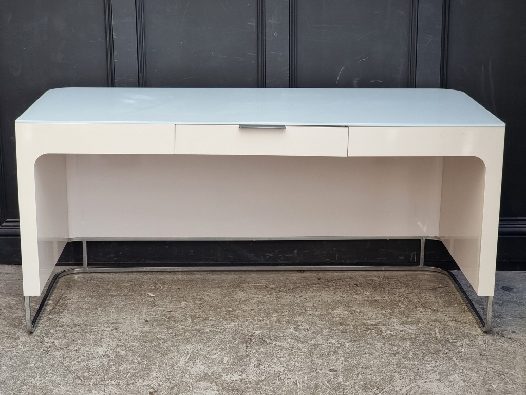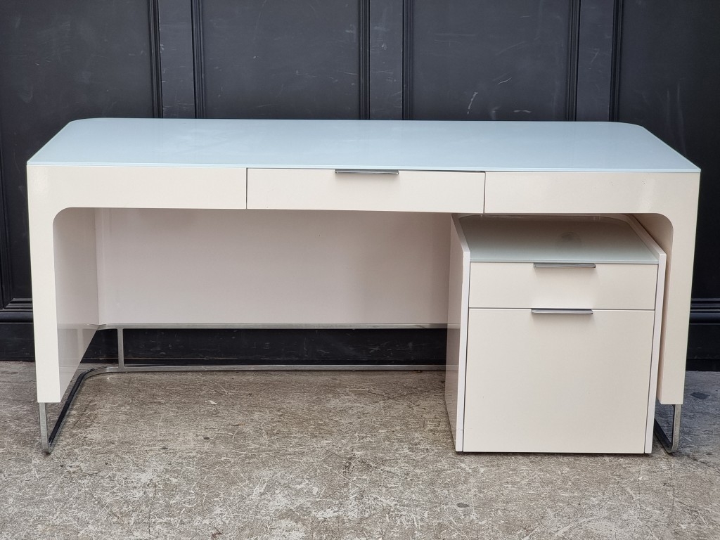 A Ligne Roset 'Hyannis Port' gloss white lacquer desk, by Eric Jourdan, 160cm wide x 70cm deep; together with a matching two drawer chest, 50cm wide. (2)
