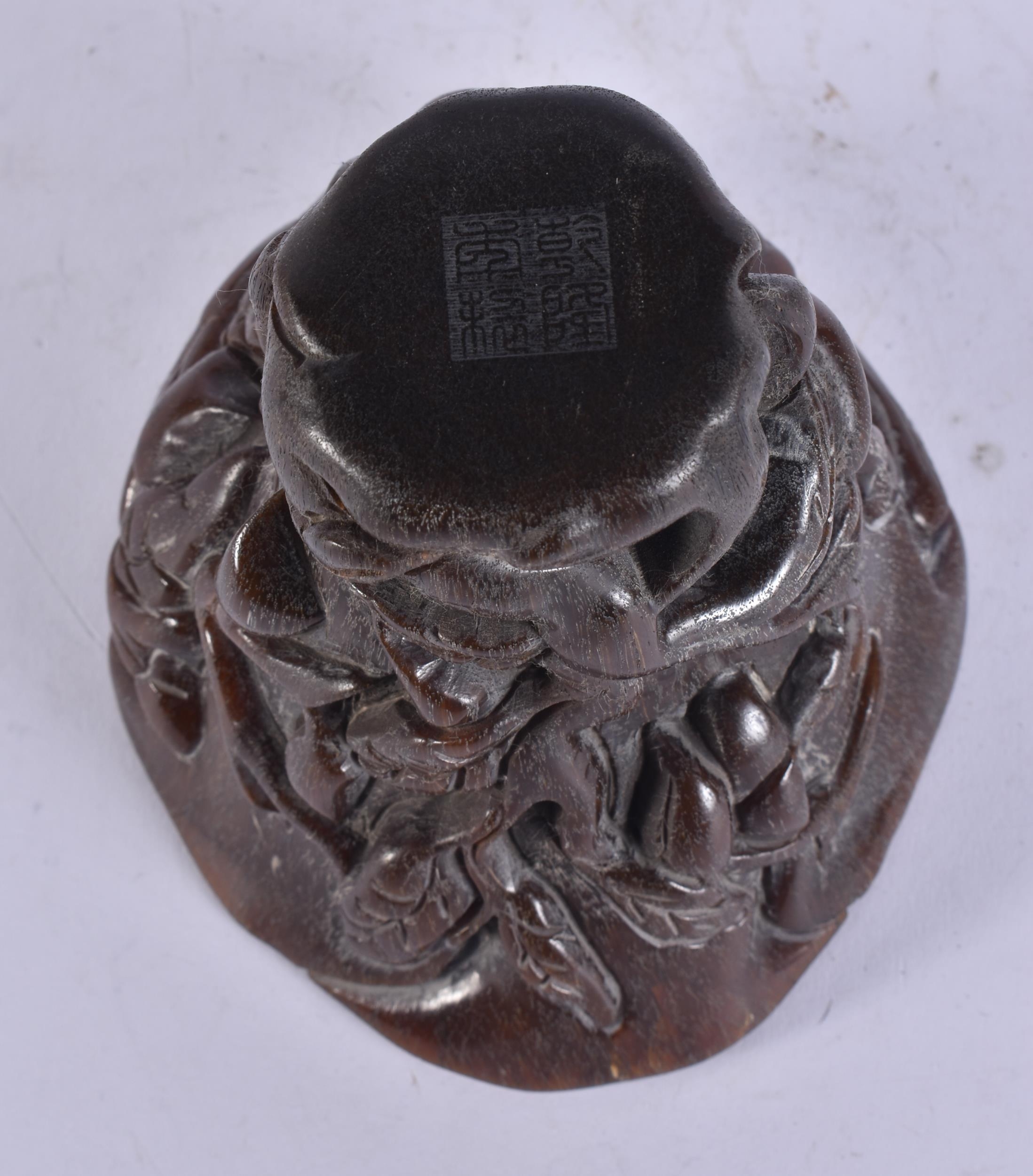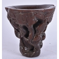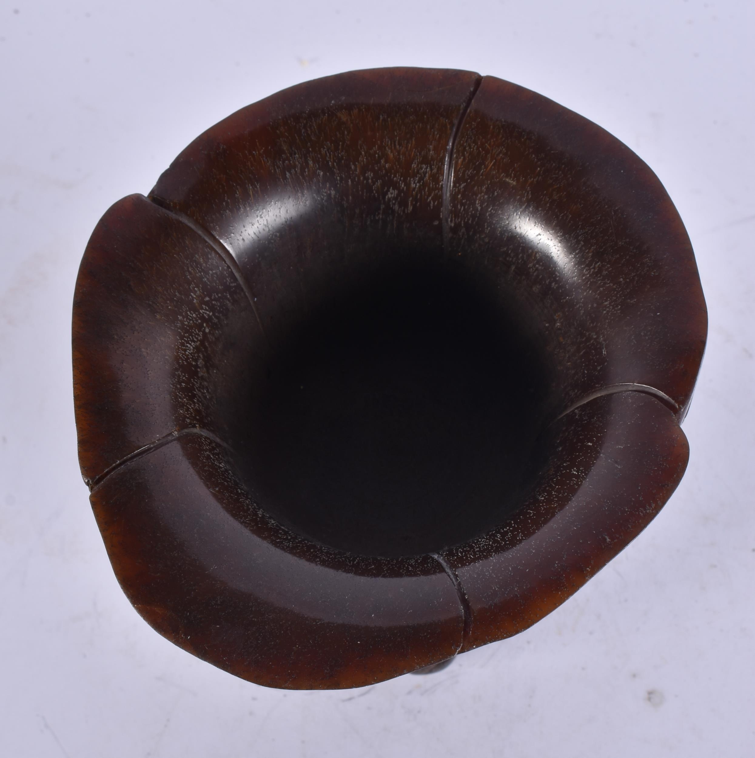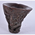 A CHINESE HORN TYPE LIBATION CUP. 14 cm x 12 cm.