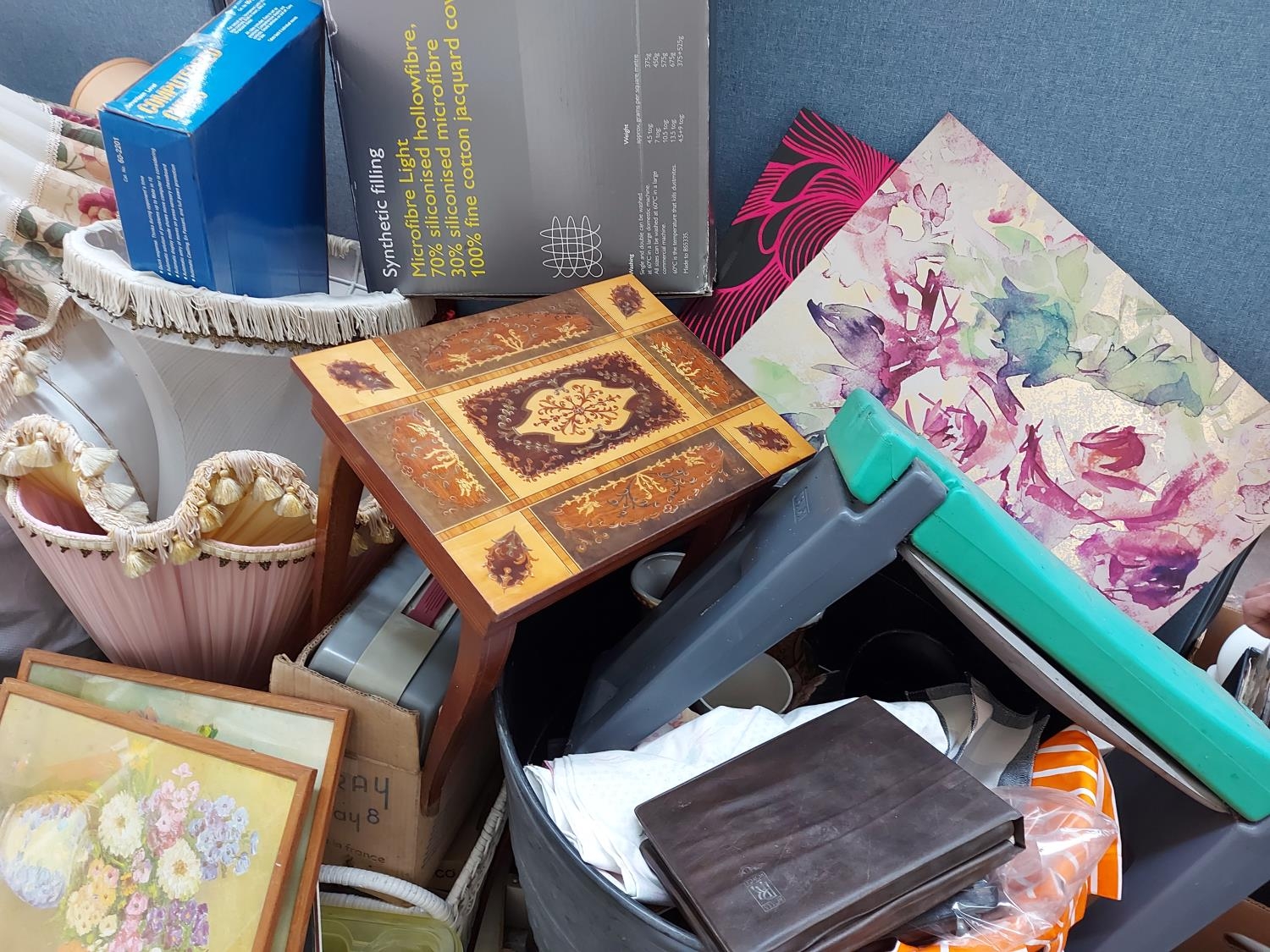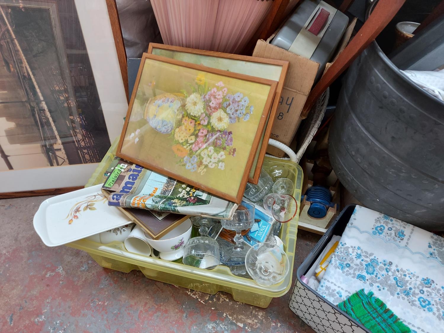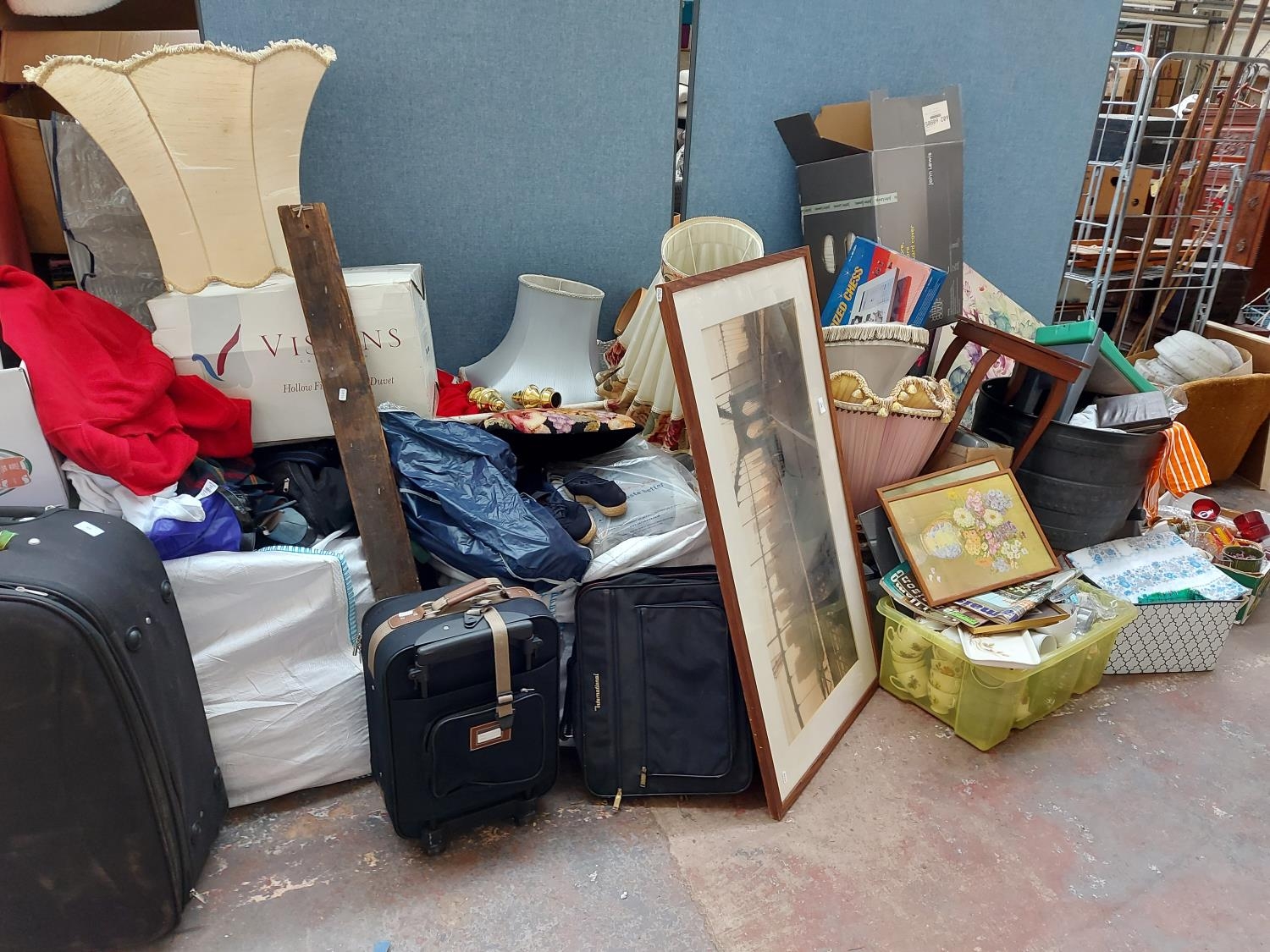 A very large mixed clearance lot to include pictures, glassware, lampshades, clothing, suitcases etc. (one ton bag not included)