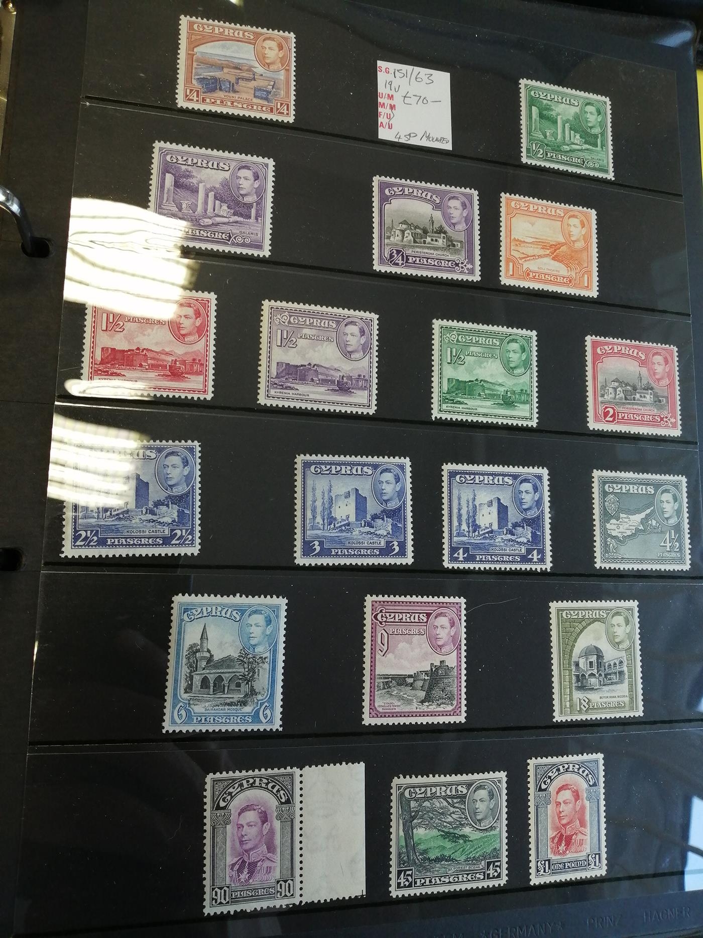 QV-QEII mint & used coln of British Europe in 3 vols, incl Cyprus 1912-15 vals to 18pi FU, 1921-33 vals to 9pi (2) M, 1924-8 45pi UM, 1935 SJ UM/M & FU, 1938-51 to £1 UM & M, 1948 RSW FU, 1955-60 set UM, 1960-66 set to £1 UM plus £1 FU, Gibraltar incl 1898 to 1/- (2) FU, 1938-51 extensive range to 5/- M (3) & FU, 1960-62 to £1 UM & M, plus extensive later ranges, Malta incl 1914-21 2/- FU (2), 1935 SJ FU, 1938-43 range to 10/- (4) UM, 1948-53 to 10/- UM (2) & FU (2), plus 5/- with NT joined variety FU, 1956-8 vals to £1 UM & set FU, plus later ranges. (3V)