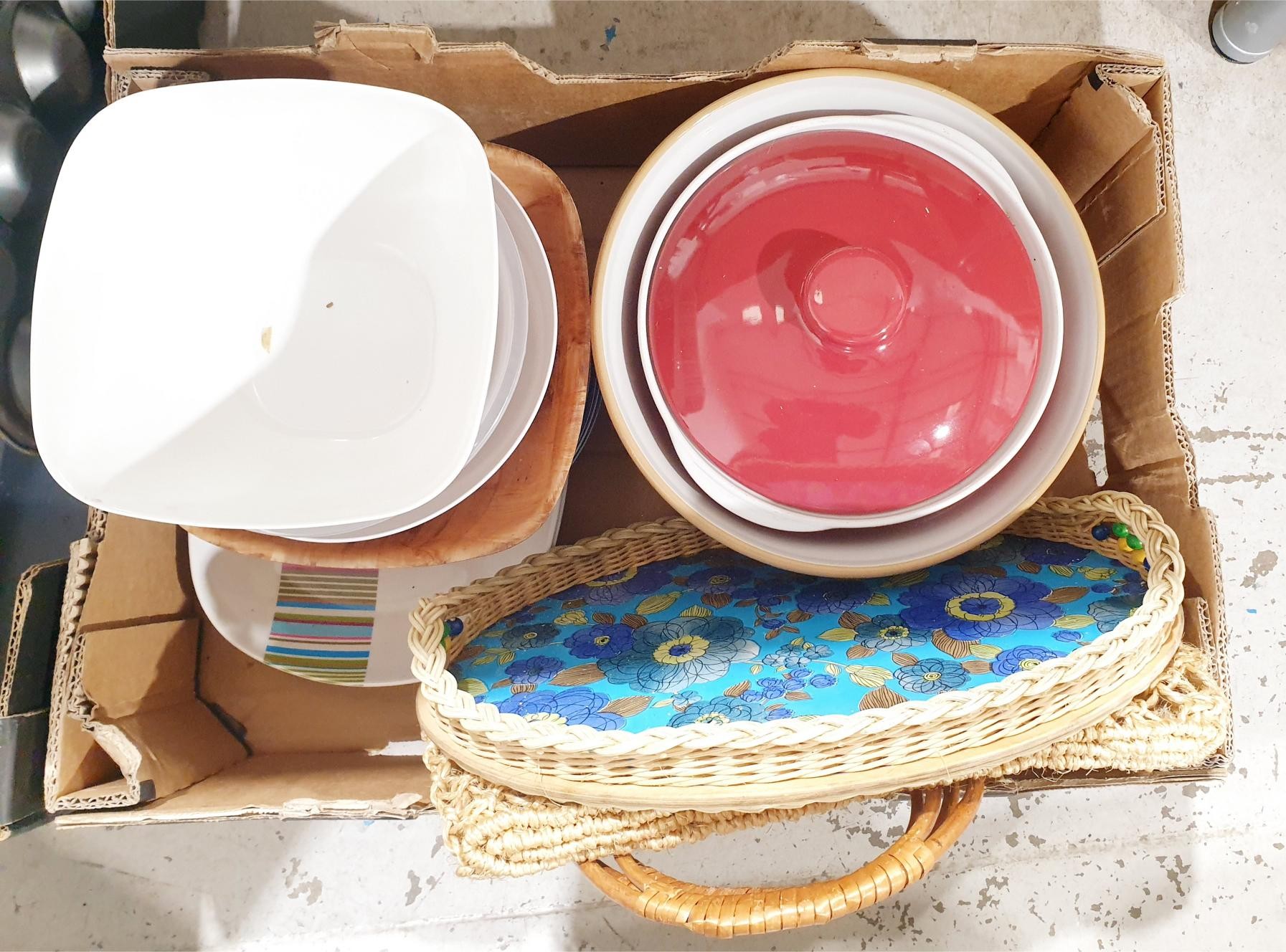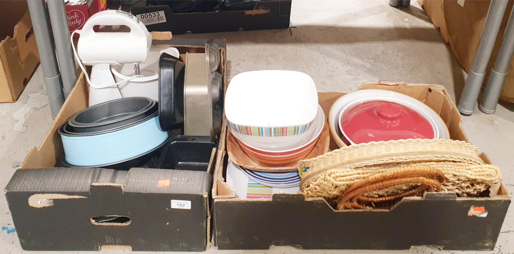 Two boxes of kitchenware. No shipping. Arrange collection or your own packer and shipper, please. Electricals are sold as scrap.
