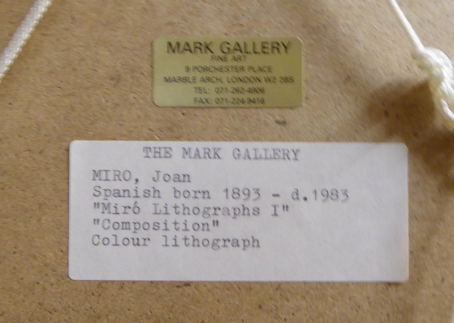 JOAN MIRO 'The Blue Star', 1972, lithograph, with the Mark Gallery label verso, 33cm x 25cm, framed and glazed.