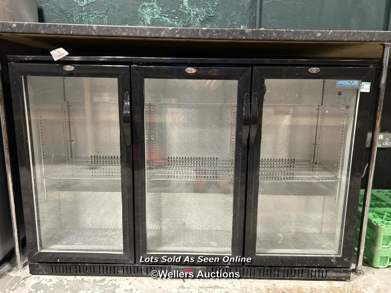 Polar Refrigeration Climatic Class GL004-03 drinks fridge, powers up, 89cm (h) x 135cm (w) x 50cm (d) / Buyer will be responsible for removal, located in the bar area / Lot Location: The Tropicana, Marine Parade, Weston-Super-Mare, North Somerset, BS23 1BE