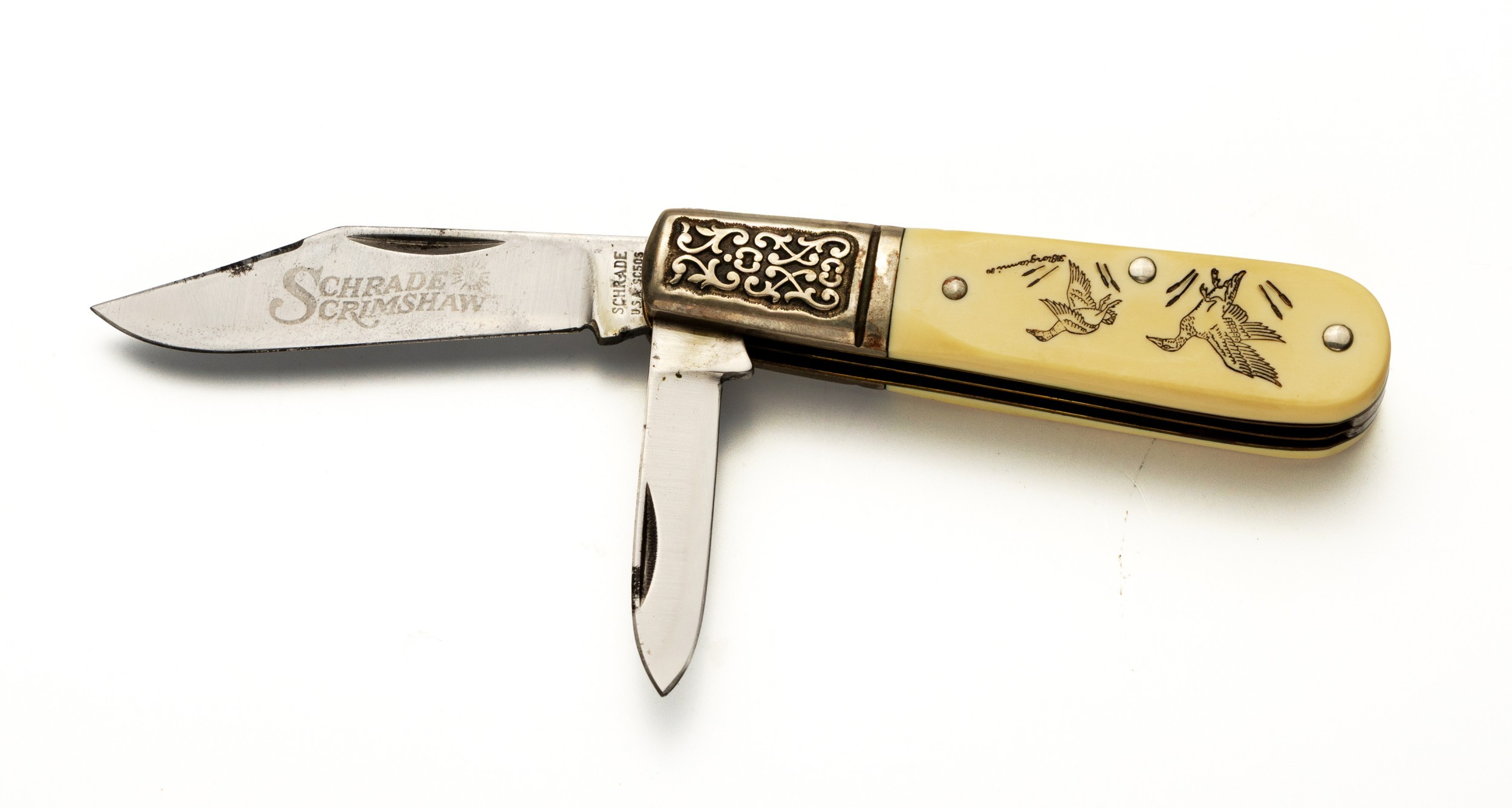 A SCHRADE SCRIMSHAW POCKET KNIFE