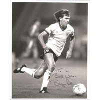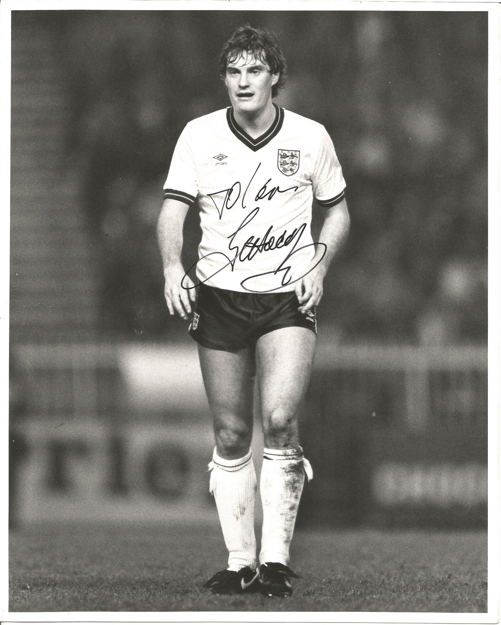 Glen Hoddle signed 10x8inch black and white photo pictured in action for England. Dedicated .