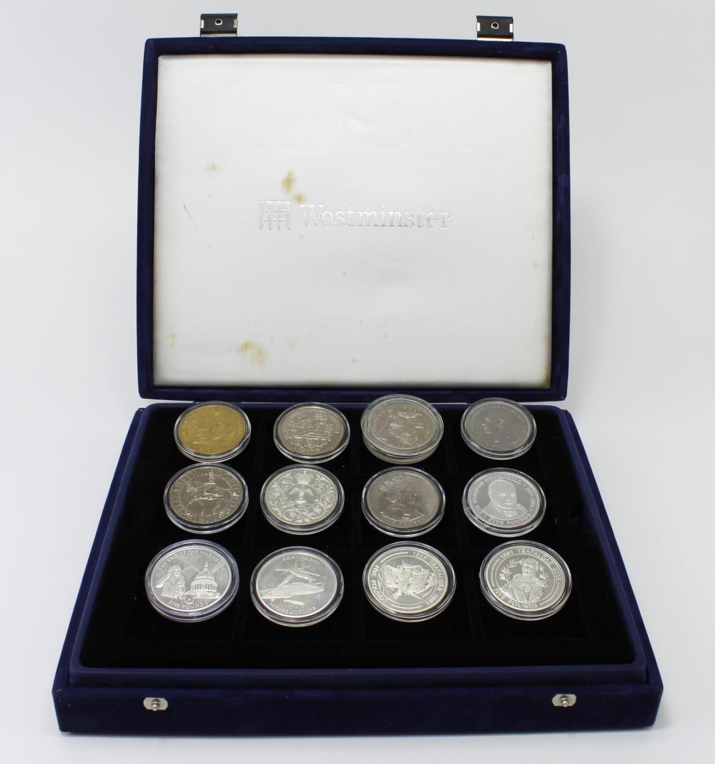GB & Commonwealth Crowns (36) in a Westminster case, including many £5 coins and some silver proofs, toned.