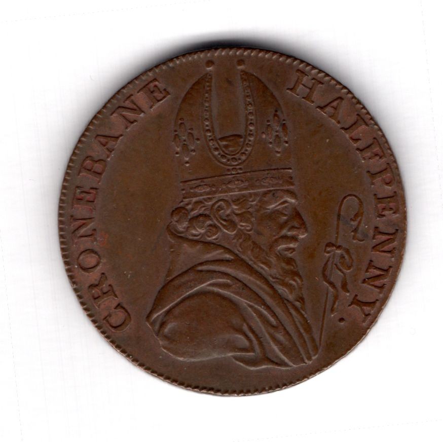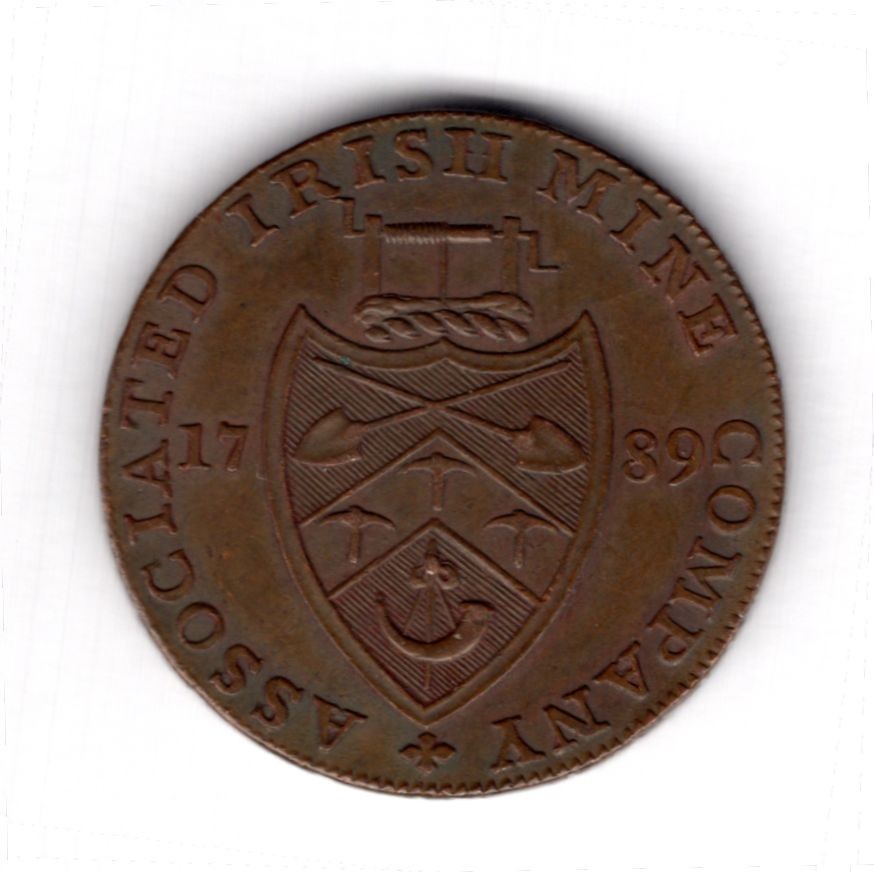 Ireland, Cronebane, halfpenny, 1789, Bishop right, rev. Associated Irish Mine Company arms, near EF
