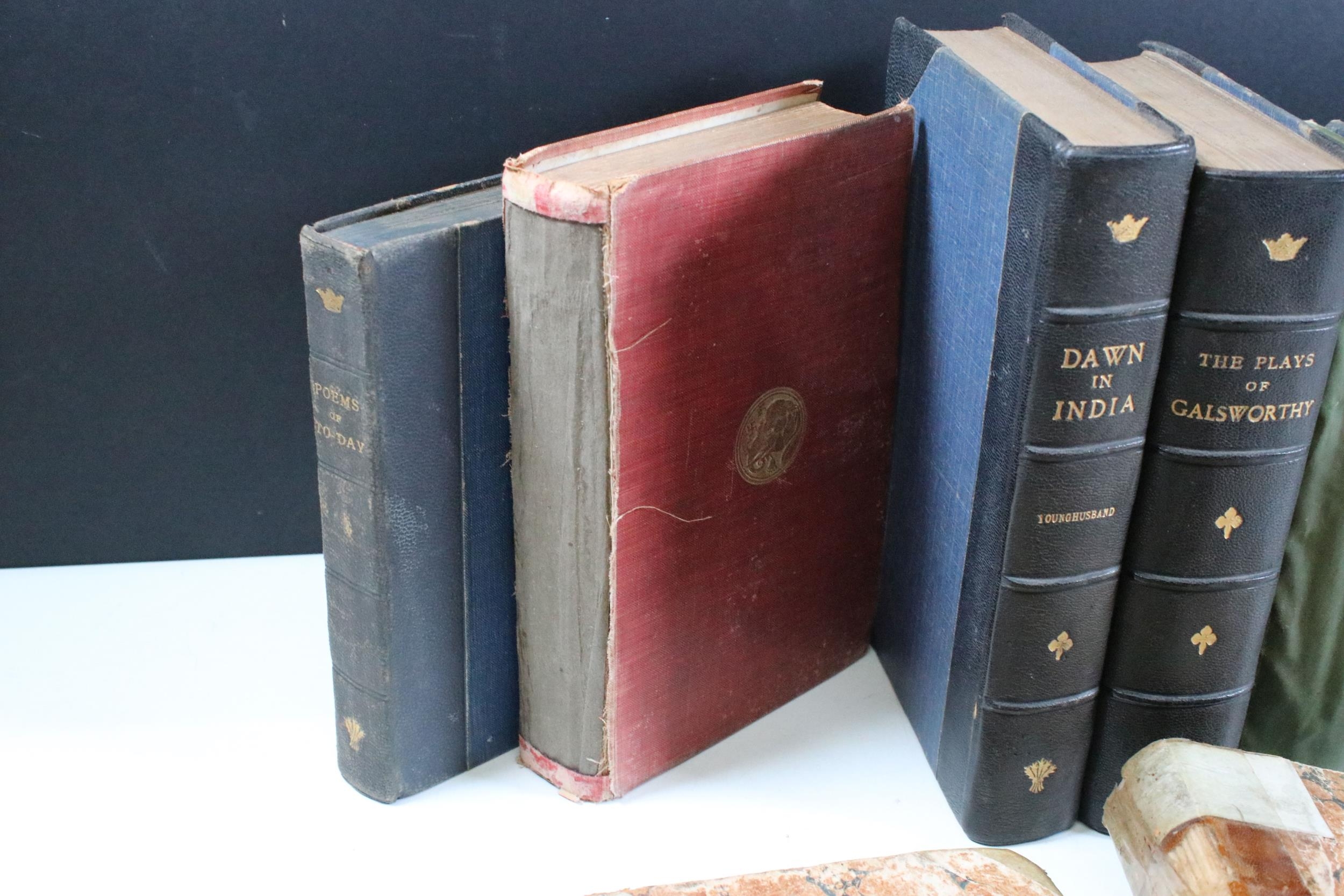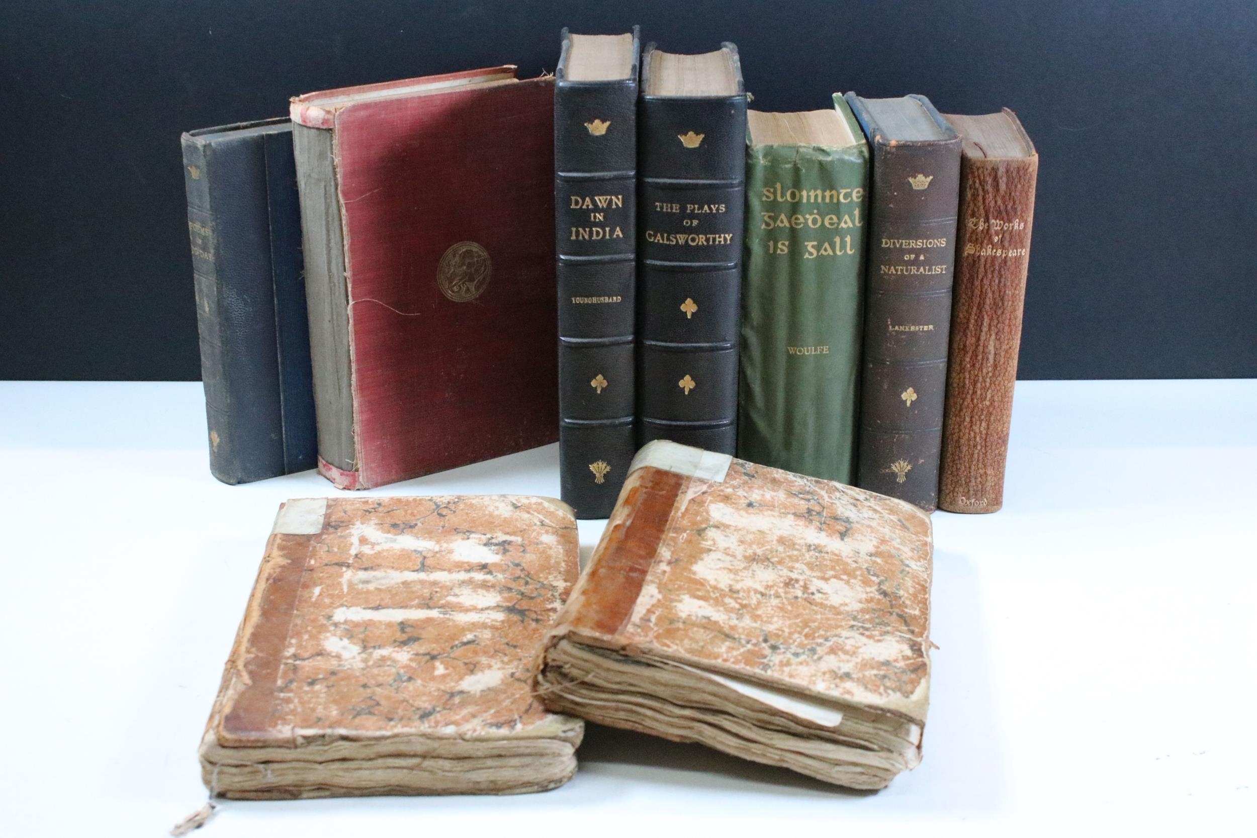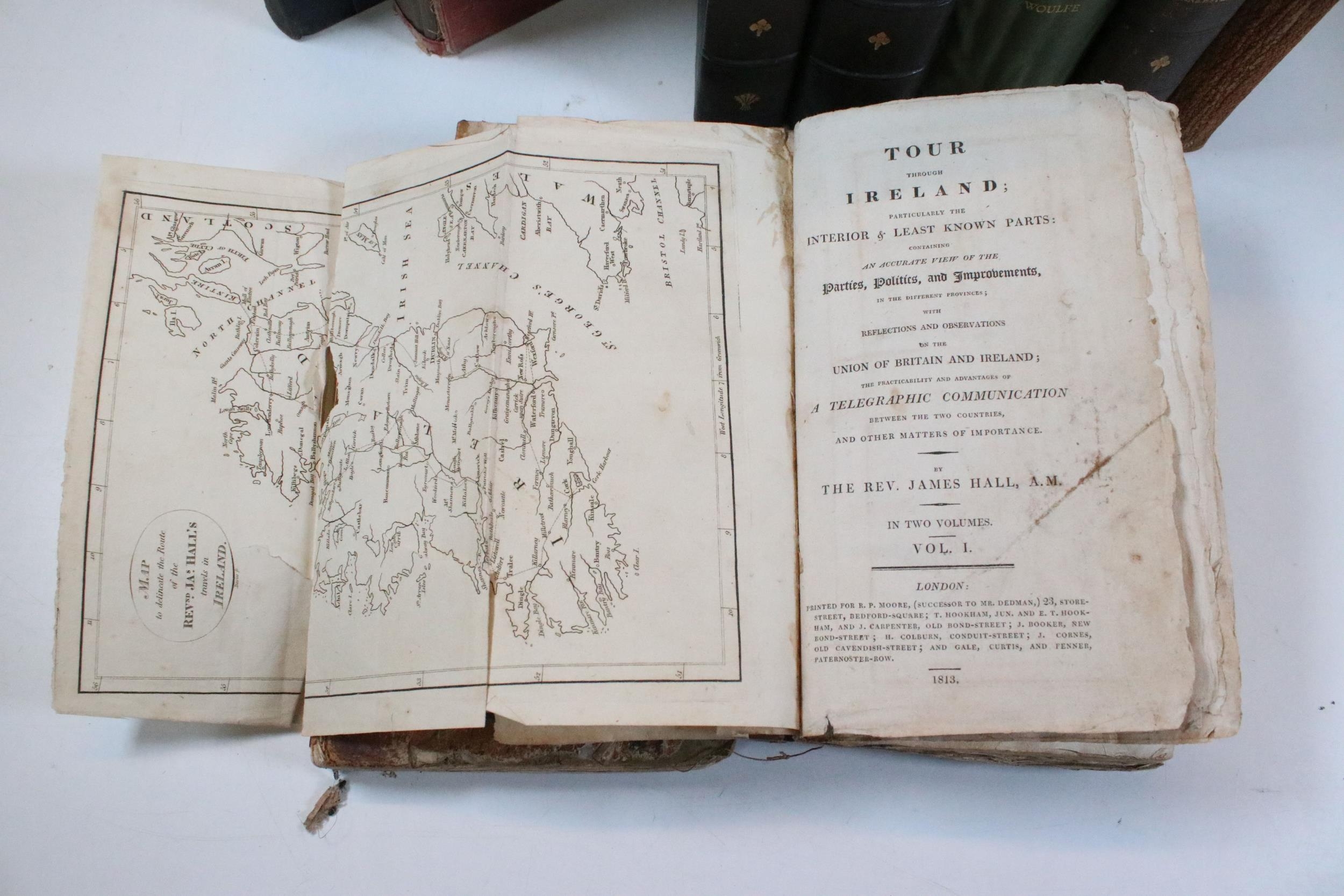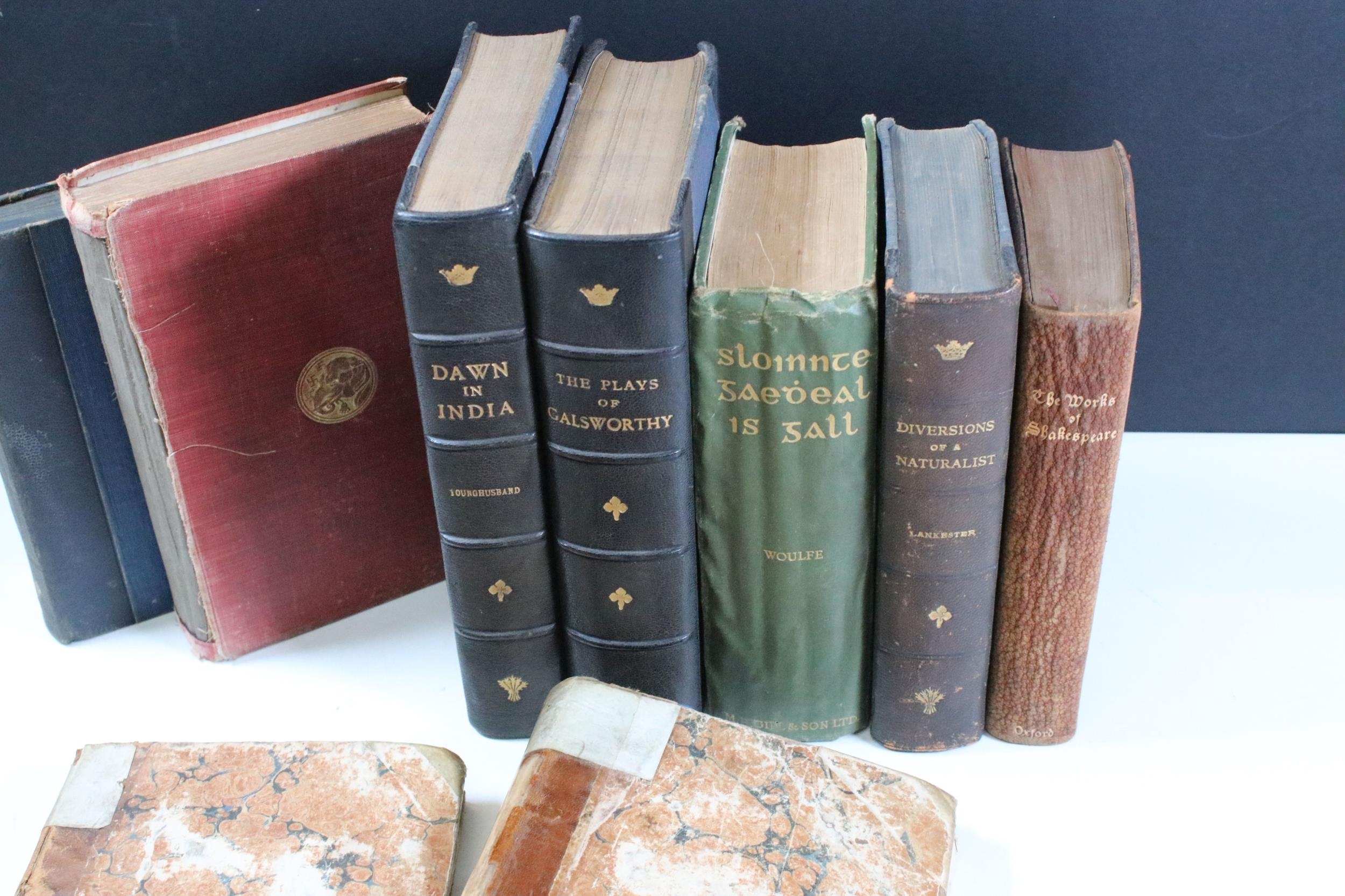 Quantity of books to include The Dawn Of India, The Plays Of Galsworthy and 2 x Early 19th Century tour books of Ireland dated 1813, etc