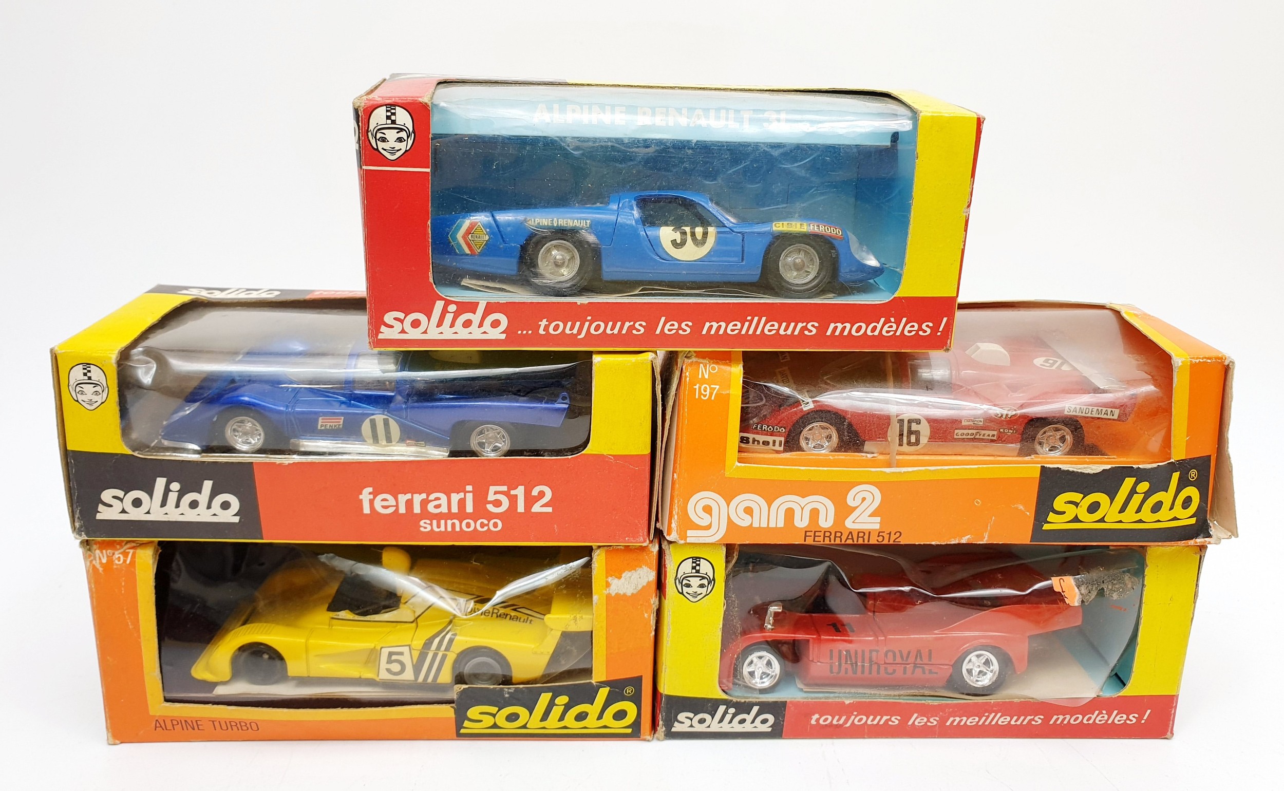 Nine boxed Solido diecast model racing cars inc the Le Mans winning Matra 670, Alpine Renault 3L& Porsche Can Am.