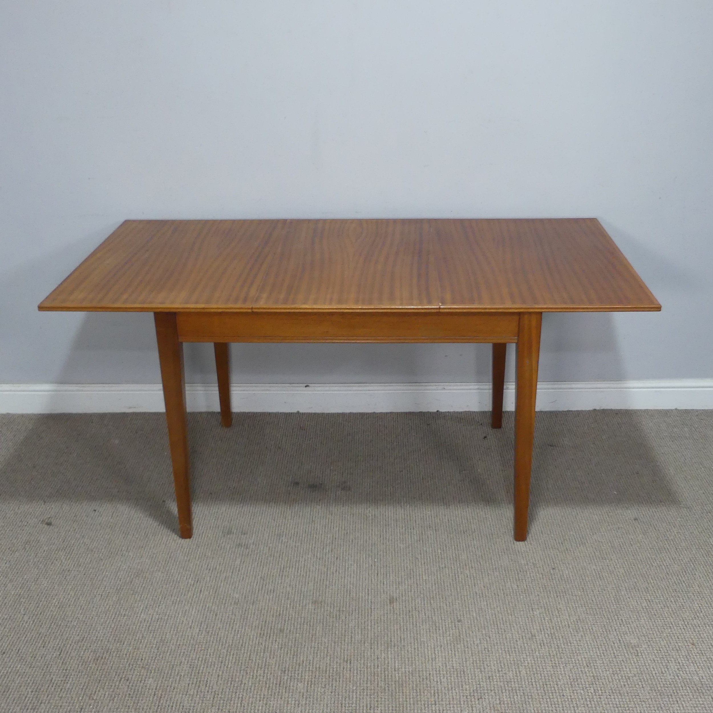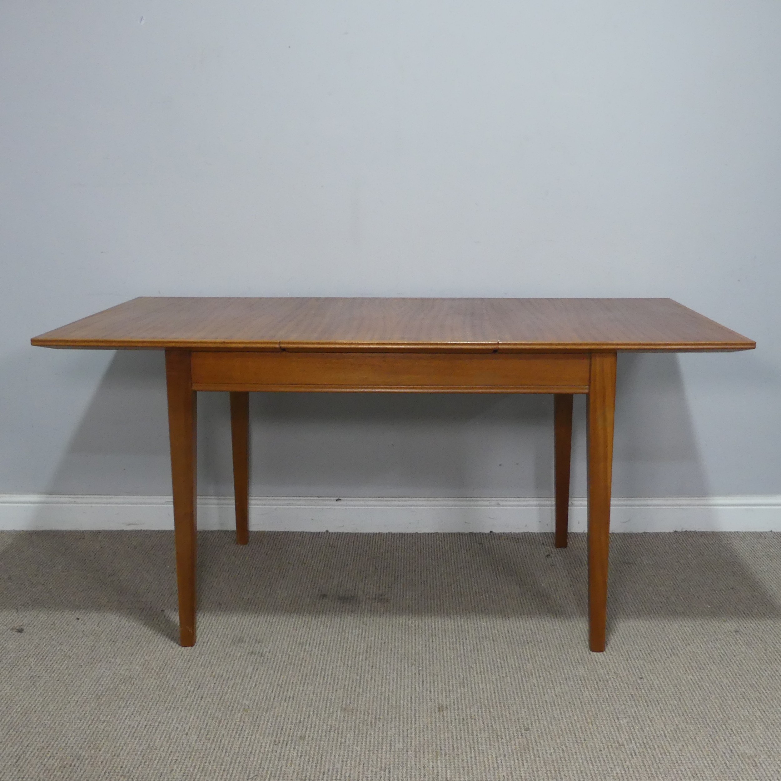 A Mid 20th century Gordon Russell of Broadway teak extending dining Table, raised on tapering supports, W 153 cm x H 74 cm x D 78 cm.