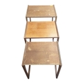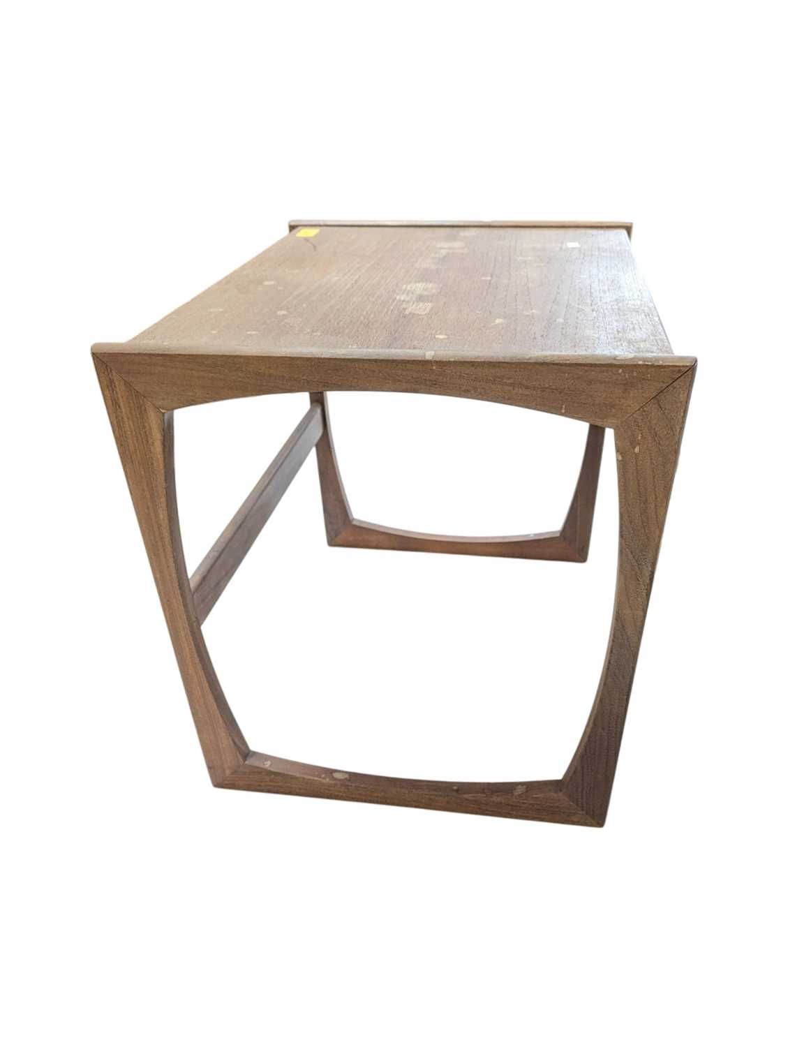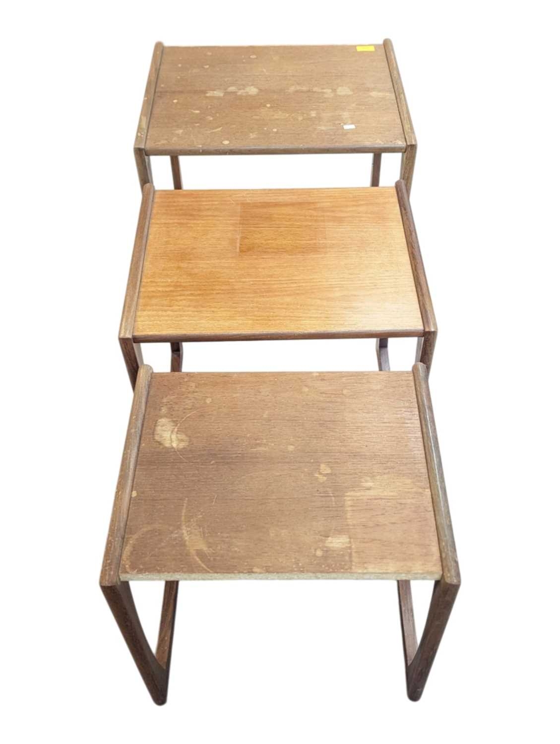 G Plan Furniture - Mid century teak nest of tables. Rectangular form raised on quadrille supports with maker's lable to underside. Measures approx: 49x54x44cm