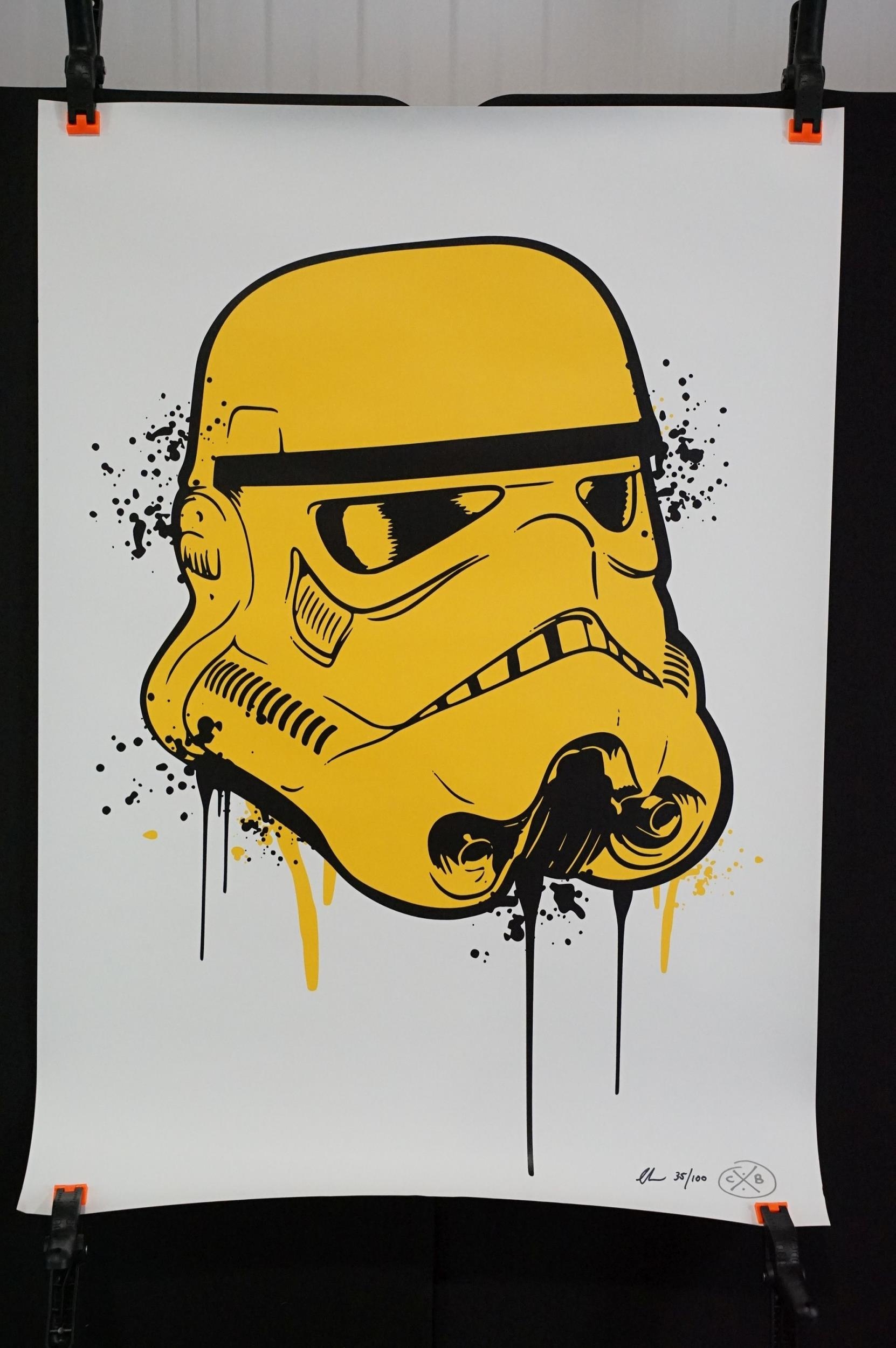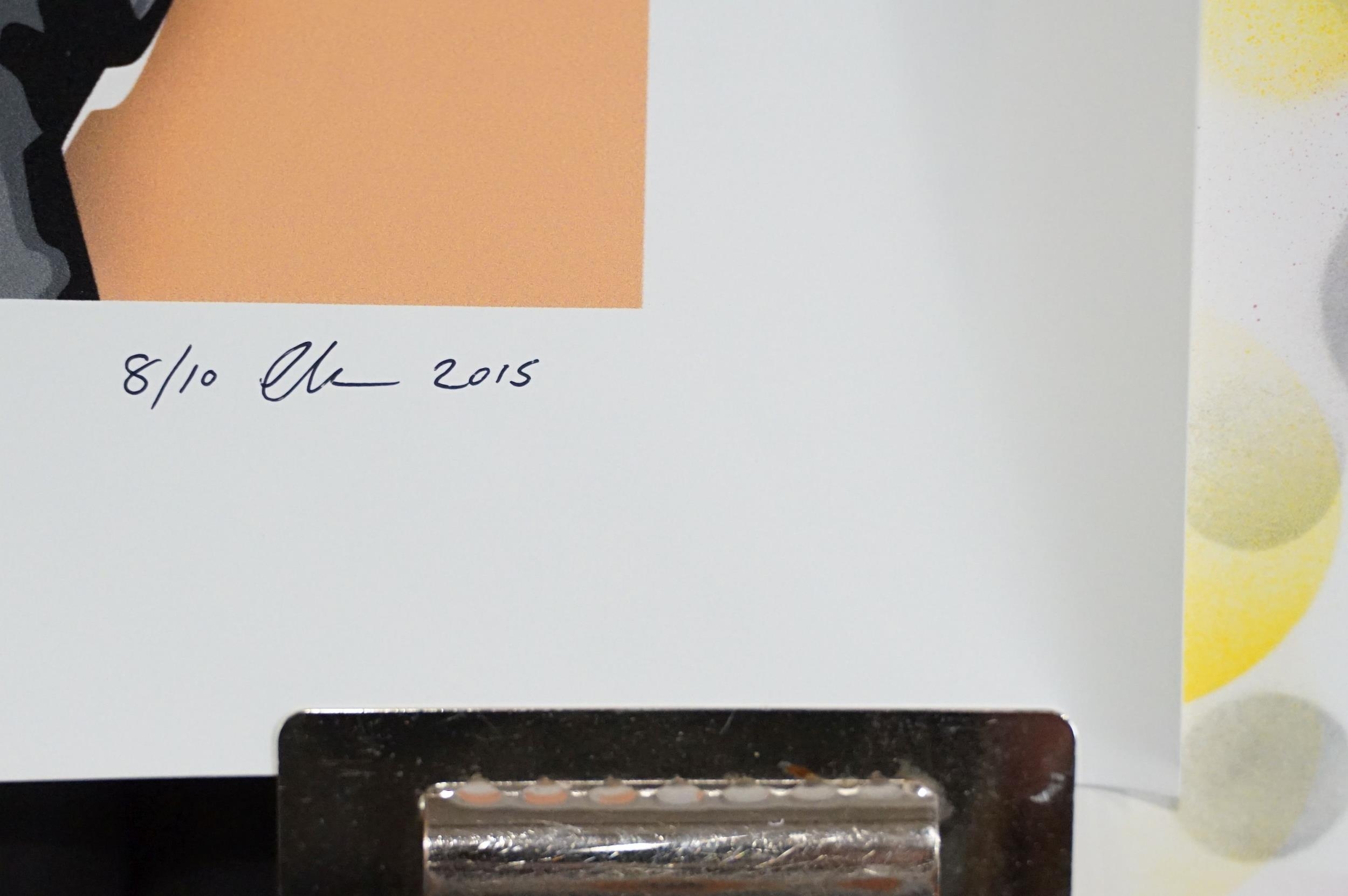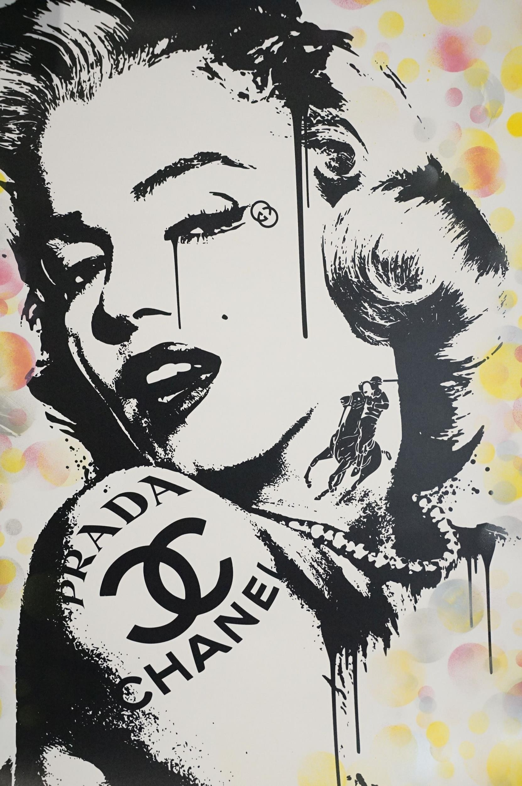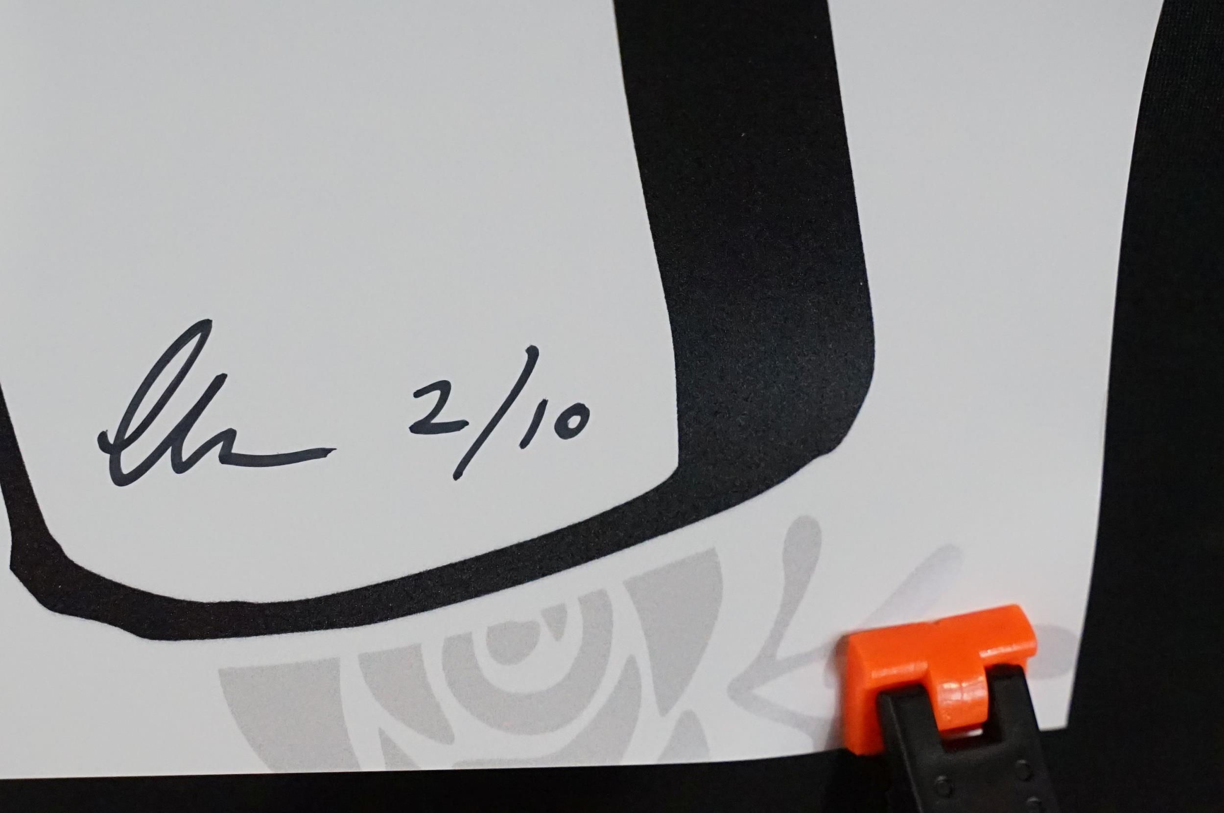 Memorabilia - 6 Punk prints / Art prints by Chris Boyle to include: Sid Vicious Only Love Beer + Mirrors numbered and signed print from 2015, this one is number 8/10, 23 1/2in x 33in, 59 1/2cm x 84cm. In EX condition, rolled. The Queen signed and numbered 2/10, 23 1/2in x 33in, 59 1/2cm x 84cm. In EX condition, rolled. Yellow Trooper signed and numbered 35/100, 23 1/2in x 33in, 59 1/2cm x 84cm. EX (rolled), Prada Chanel, 2016 signed, 23 1/2in x 33in, 59 1/2cm x 84cm. EX (rolled), Super Mario 2016 signed and dedicated, 16 1/2” x 11 3/4” / 32cm x 29 1/2cm. EX rolled. Imperial A T’s over London signed and dedicated, 23 1/2in x 33in, 59 1/2cm x 84cm. EX (rolled)