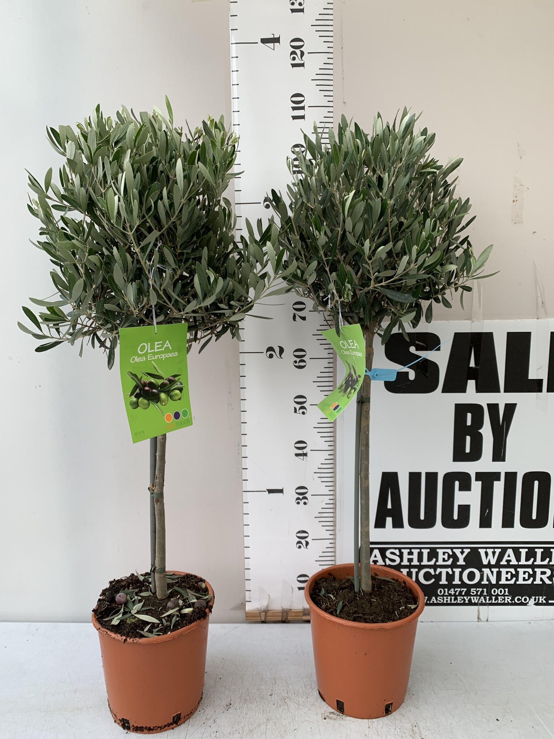 TWO OLIVE OLEA TREES IN 3.5 LT POTS. APPROX 110CM TALL, TO BE SOLD FOR THE TWO. NO VAT