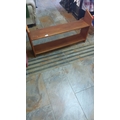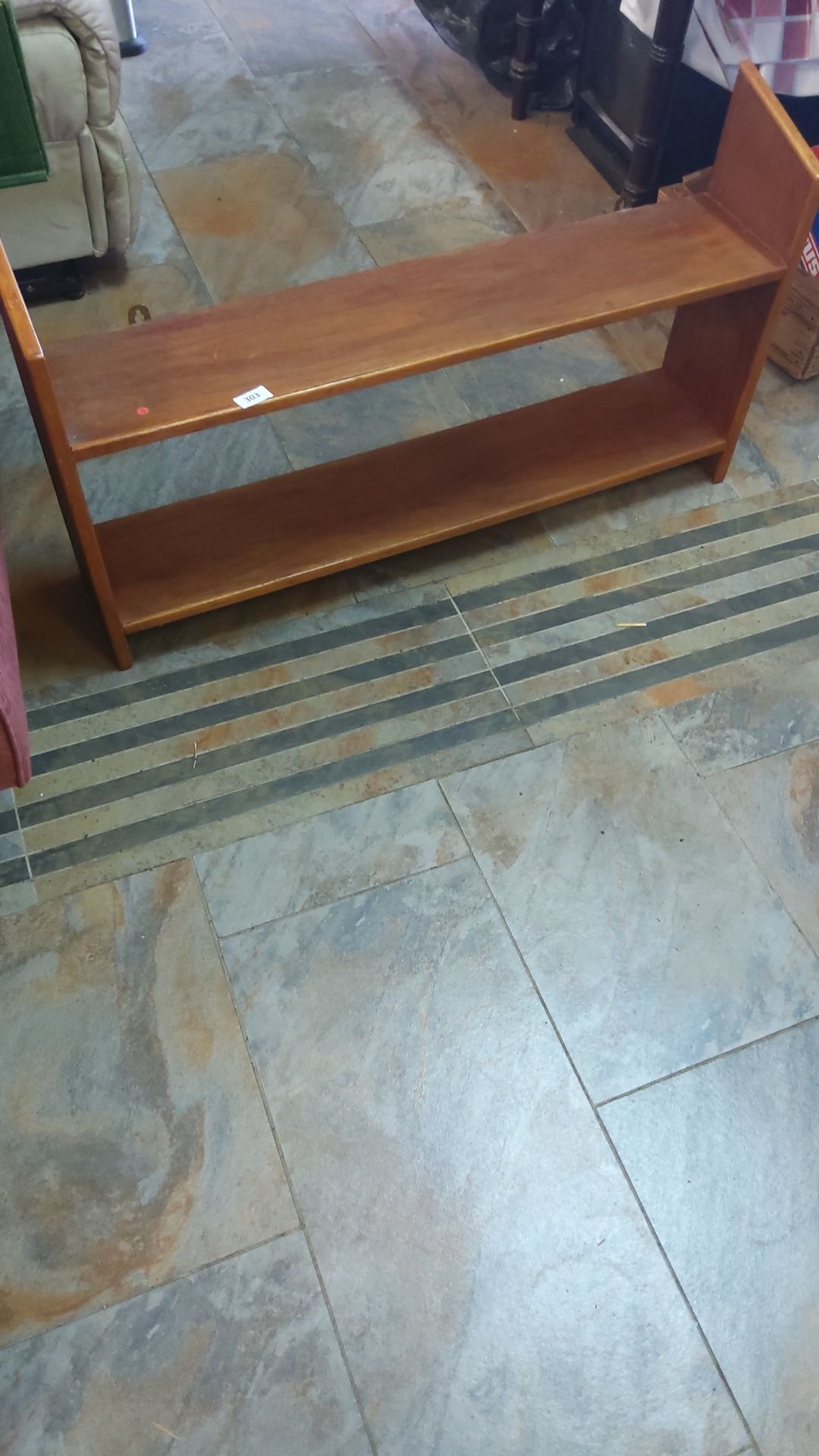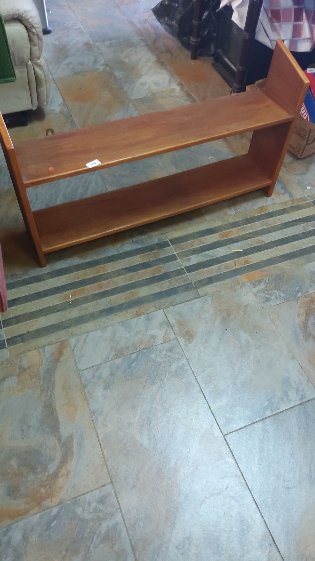 Wooden shelf unit, two-tier, minimalist design, from the mid-20th century with natural finish.