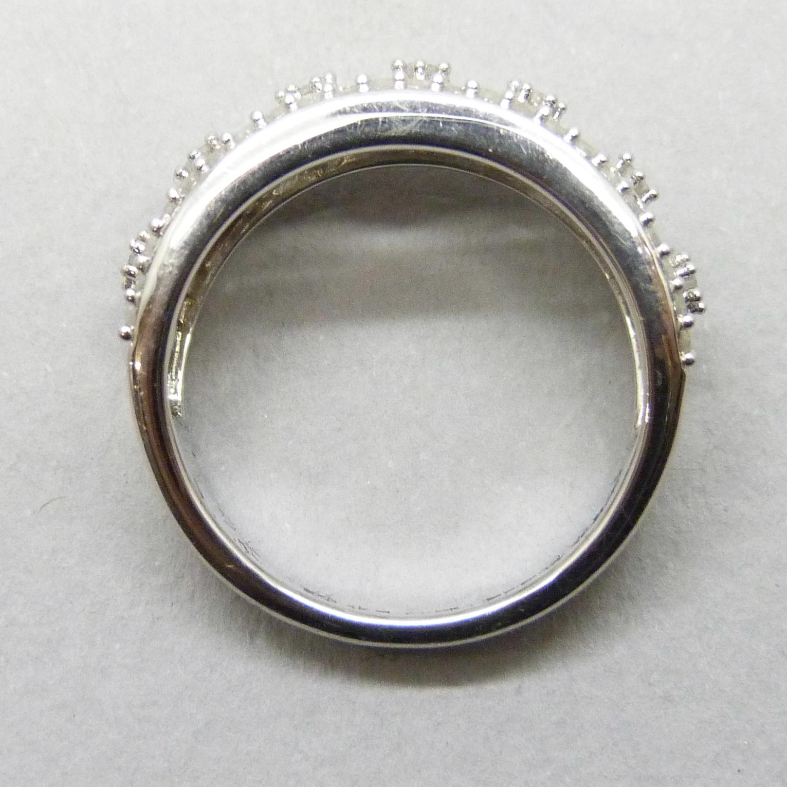 A silver ring set with approximately 0.5ct of diamonds, N/O