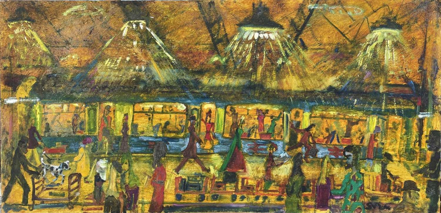 Sven BERLIN (1911-1999) Railway Station Oil on board Signed 61x121cm