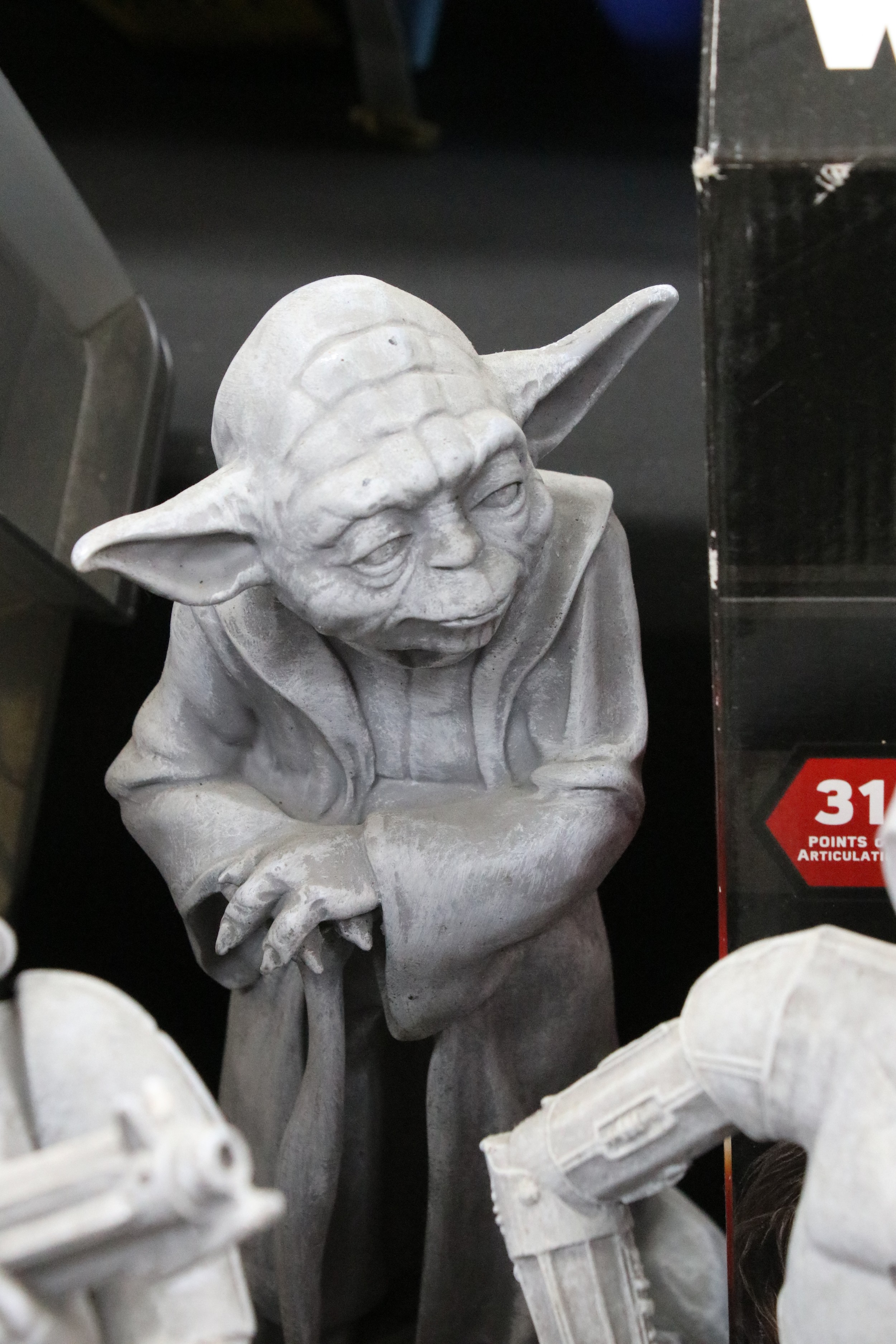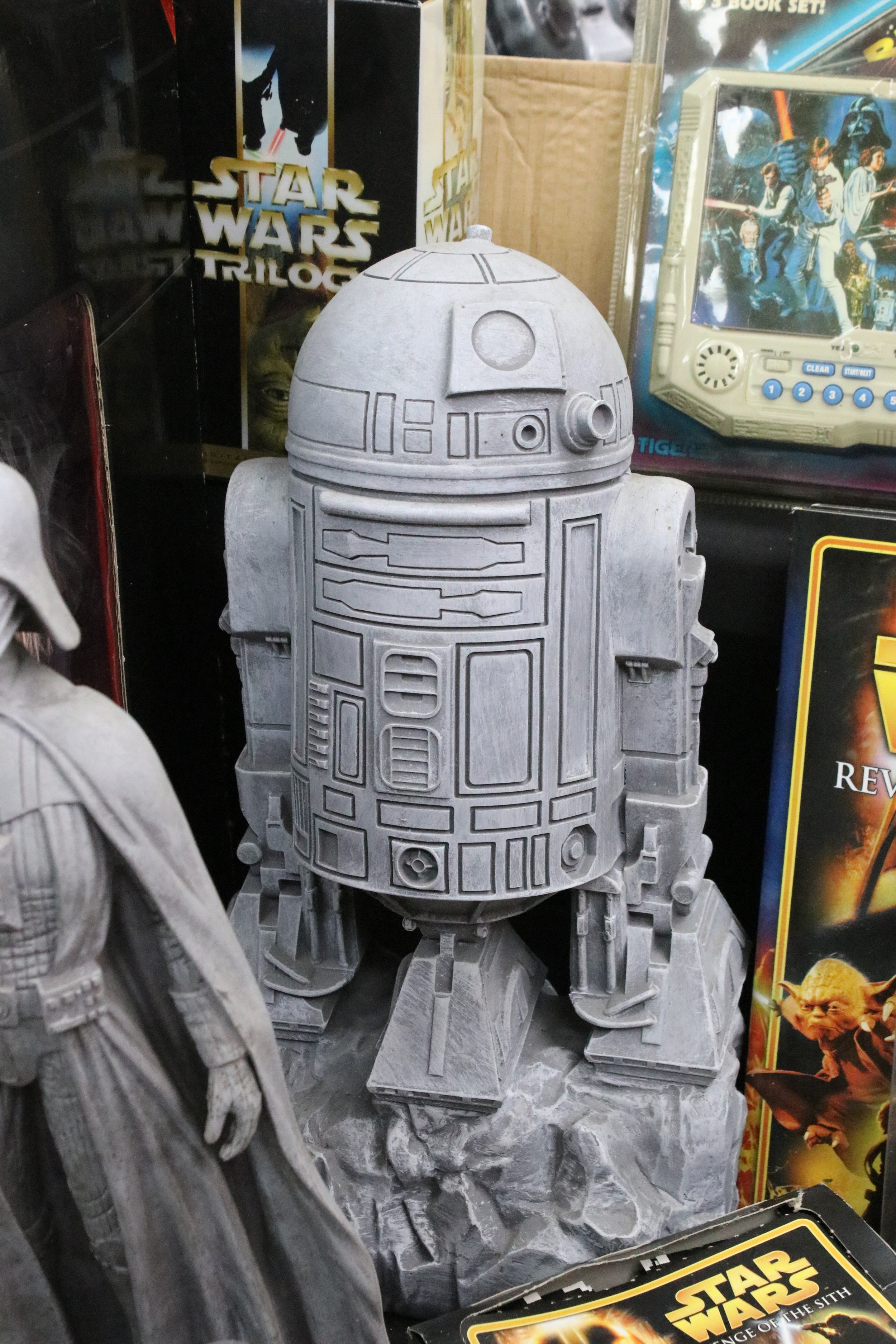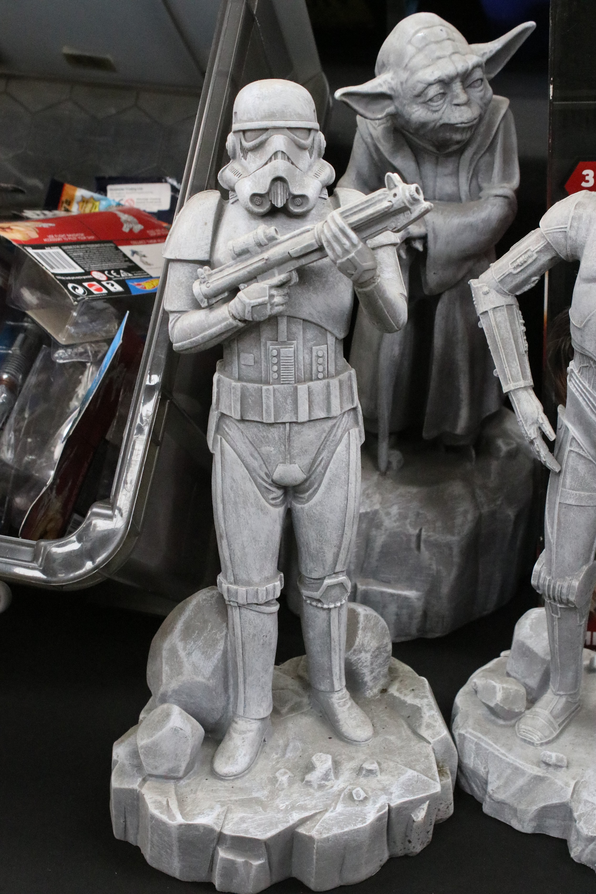 Star Wars - Collection of Star Wars figures, garden ornaments & diecast featuring 5 x Garden Ornament (Darth Vader, R2-D2, Stormtrooper, etc), 3 x boxed Thinktoy The Force Awakens figures (Kylo Ren, Darth Vader & Chewbacca), 7 x carded Hot Wheels, etc (11)