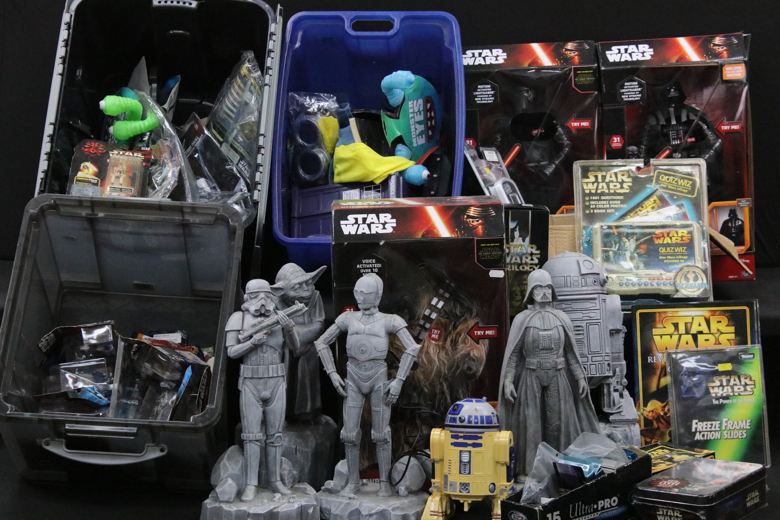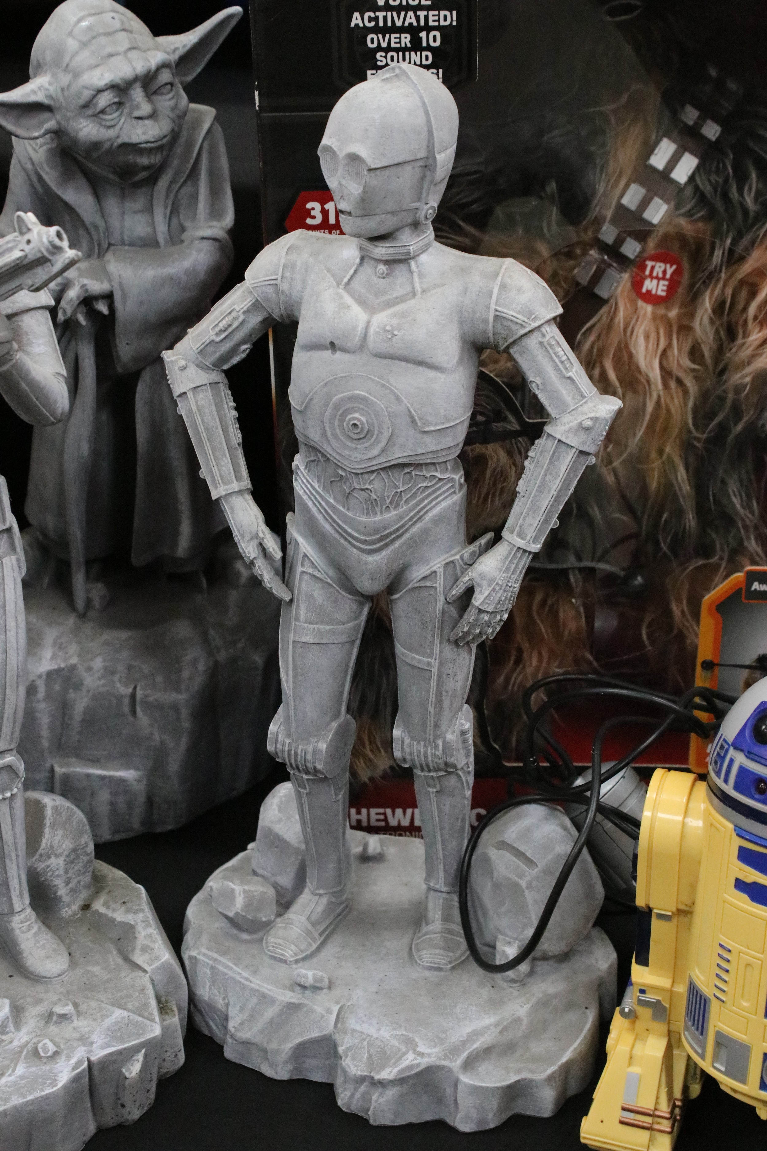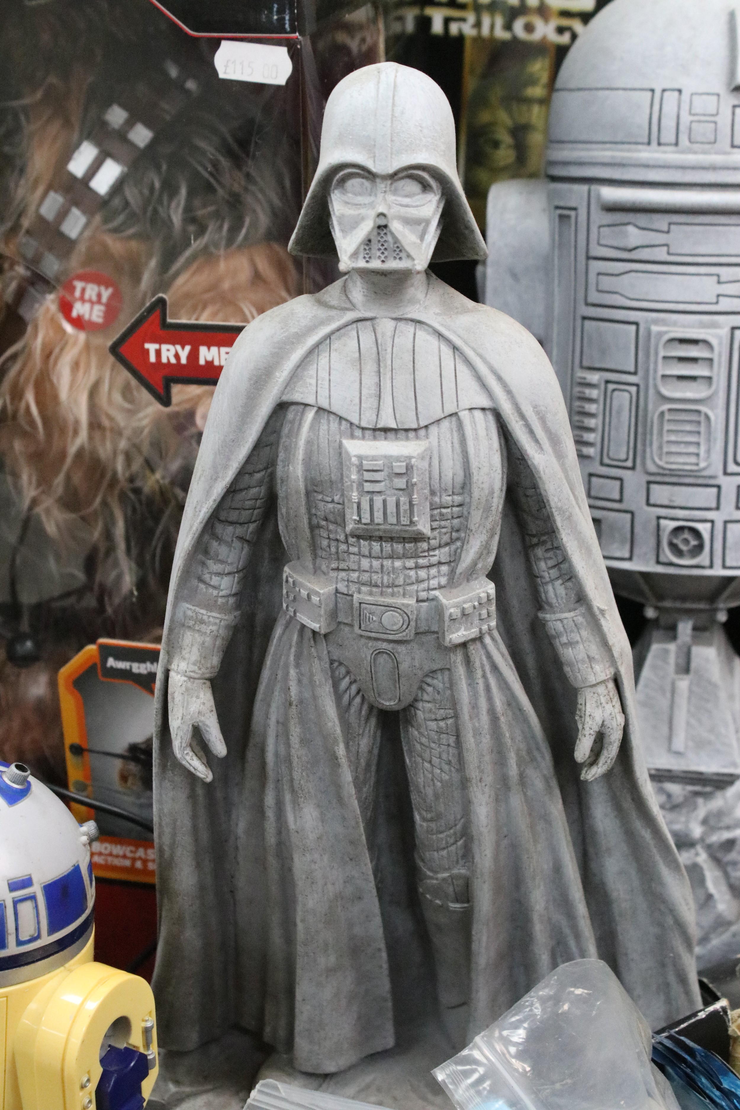Star Wars - Collection of Star Wars figures, garden ornaments & diecast featuring 5 x Garden Ornament (Darth Vader, R2-D2, Stormtrooper, etc), 3 x boxed Thinktoy The Force Awakens figures (Kylo Ren, Darth Vader & Chewbacca), 7 x carded Hot Wheels, etc (11)