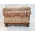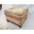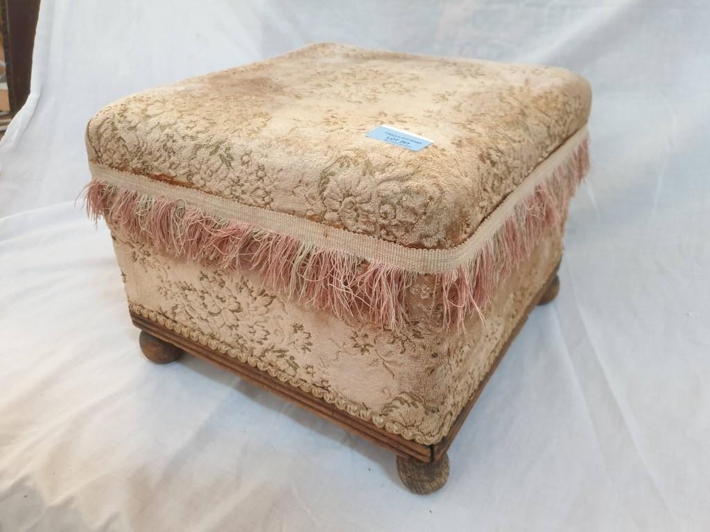 Antique Foot Stool in Original Embroidered Covering & Wooden Bun Feet (31cm x 31cm x 26cm)