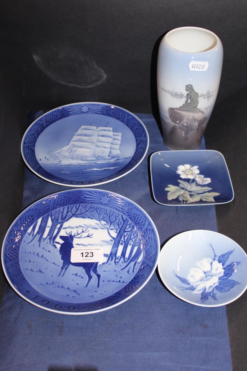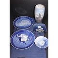 Royal Copenhagen vase, pin dishes and collectors' plates.