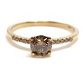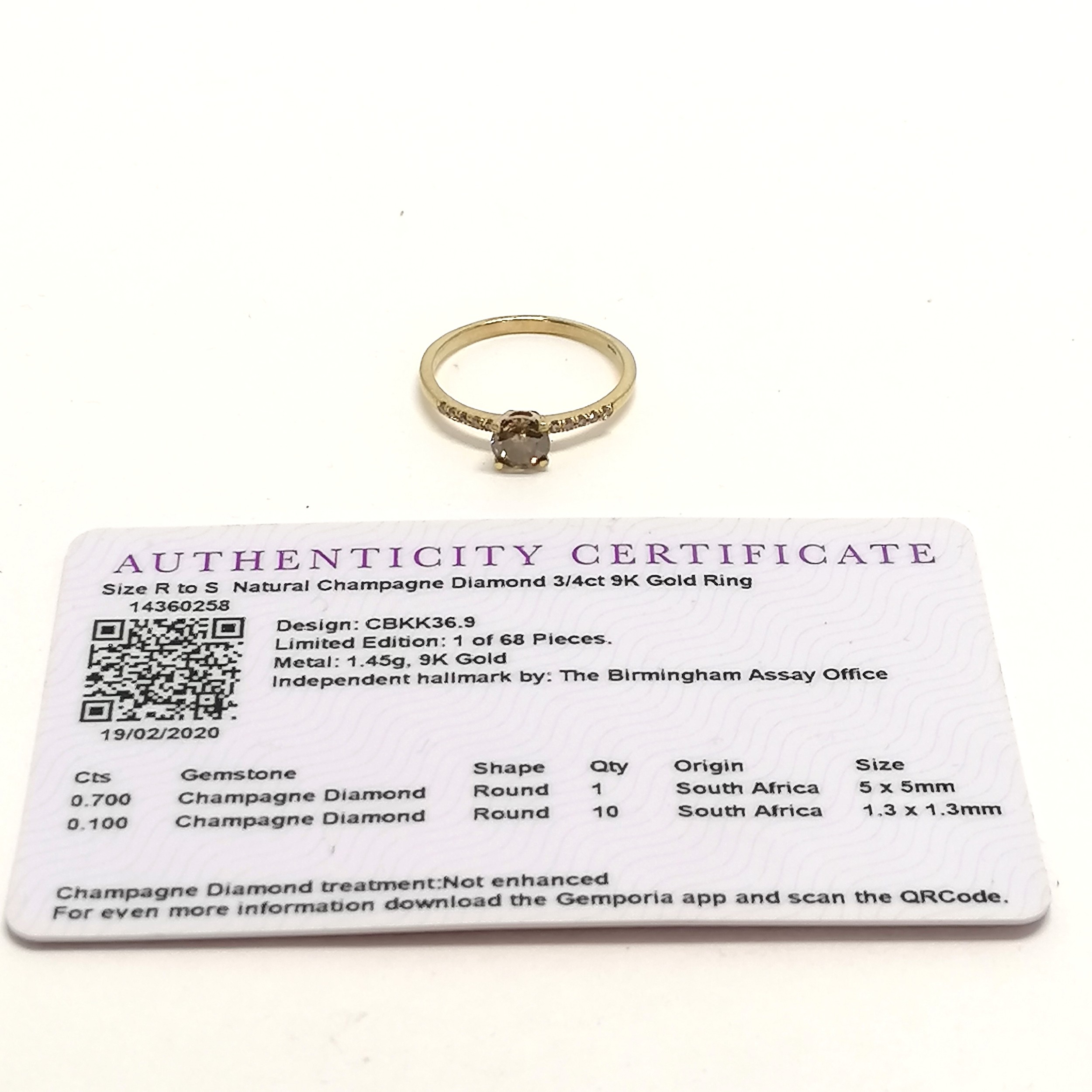 9ct hallmarked gold champagne diamond (0.75ct) ring with champagne diamond shoulders (with certificate) - size S & 1.7g total weight