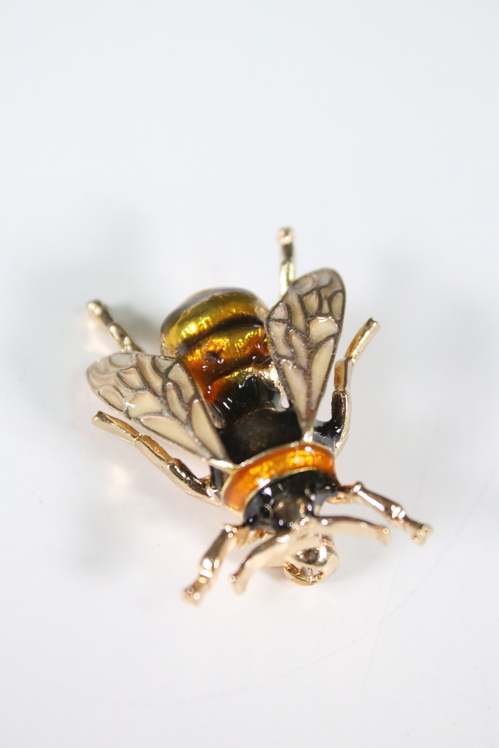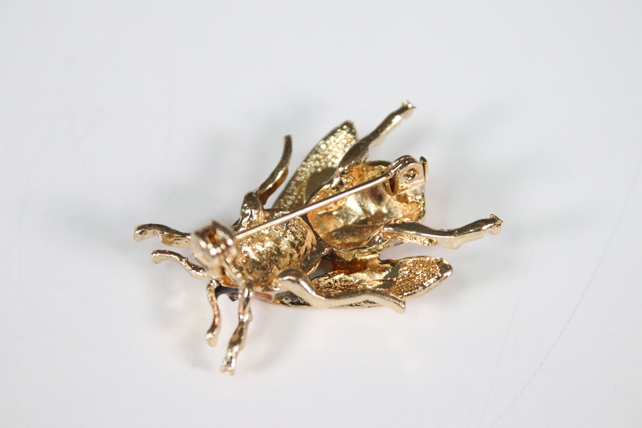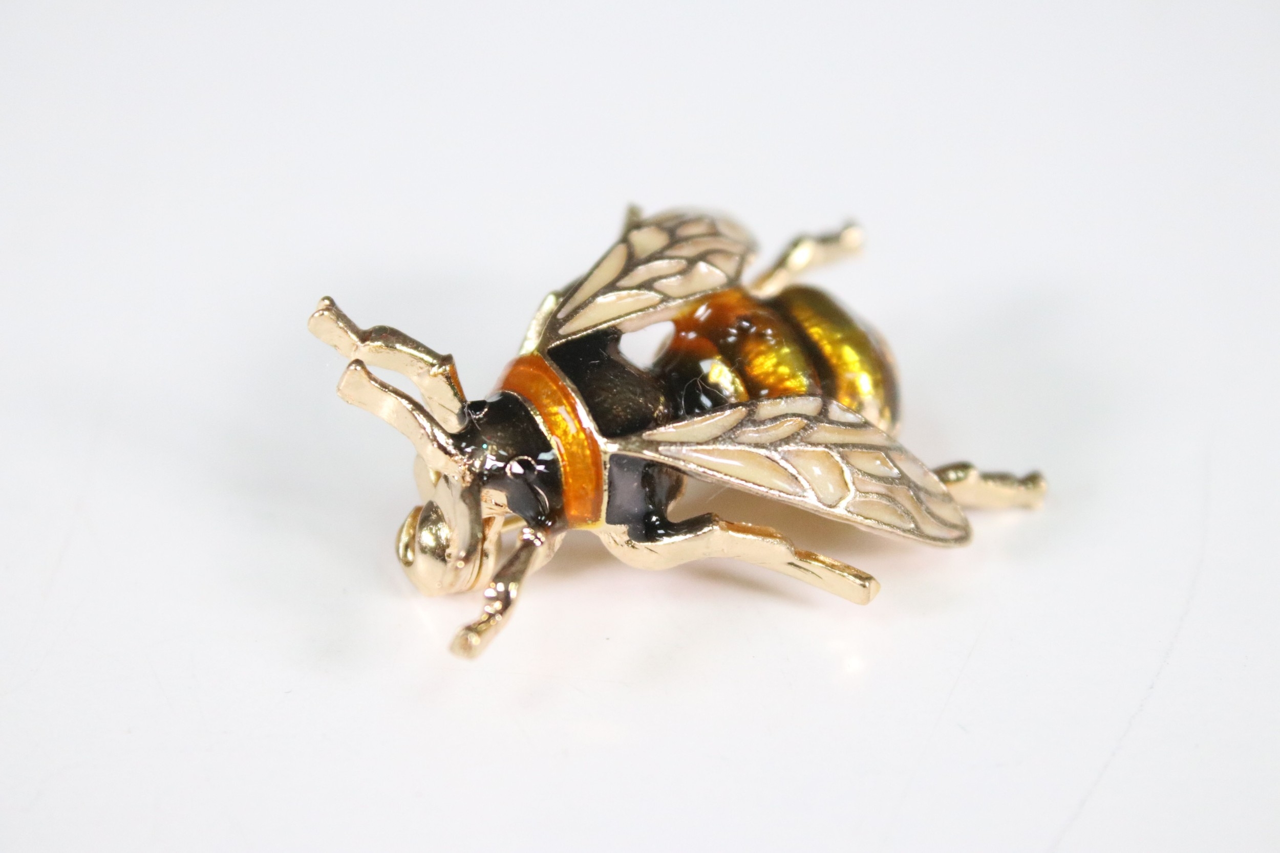 Large enamel bee brooch, 4cm long, with pouch