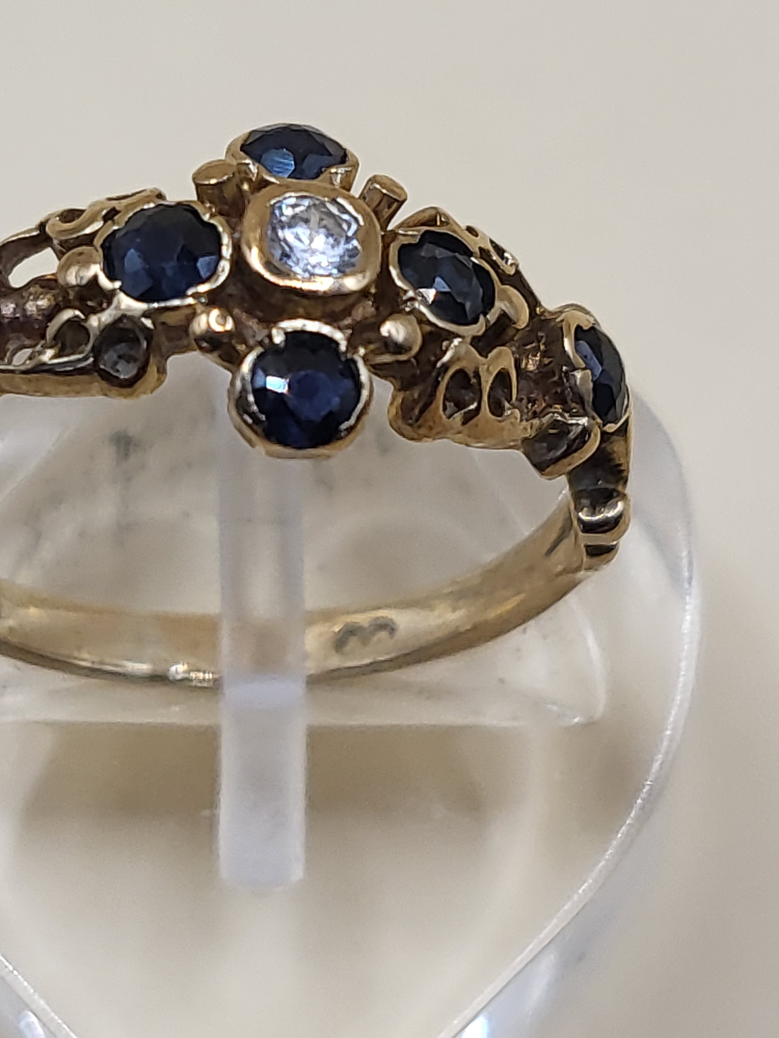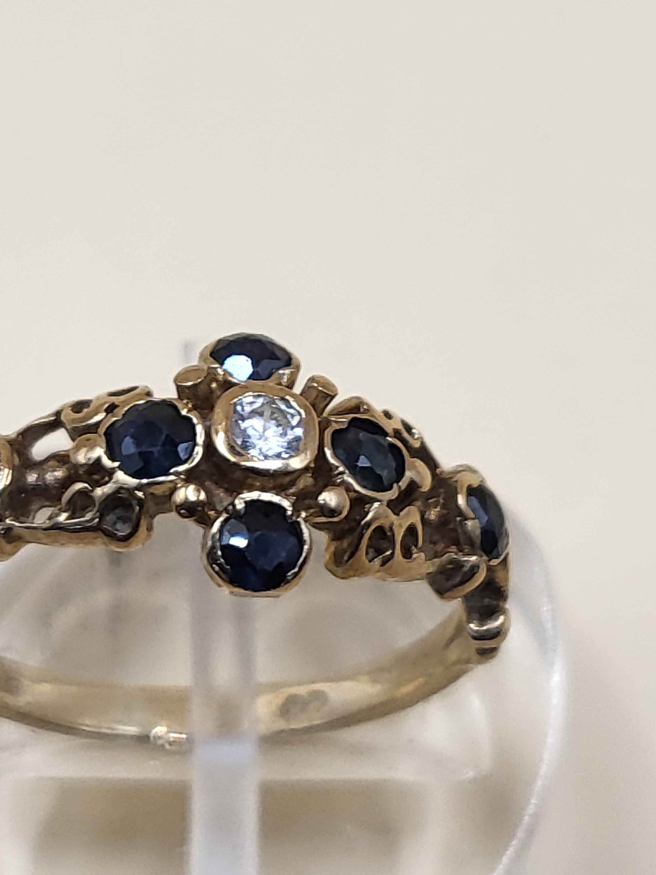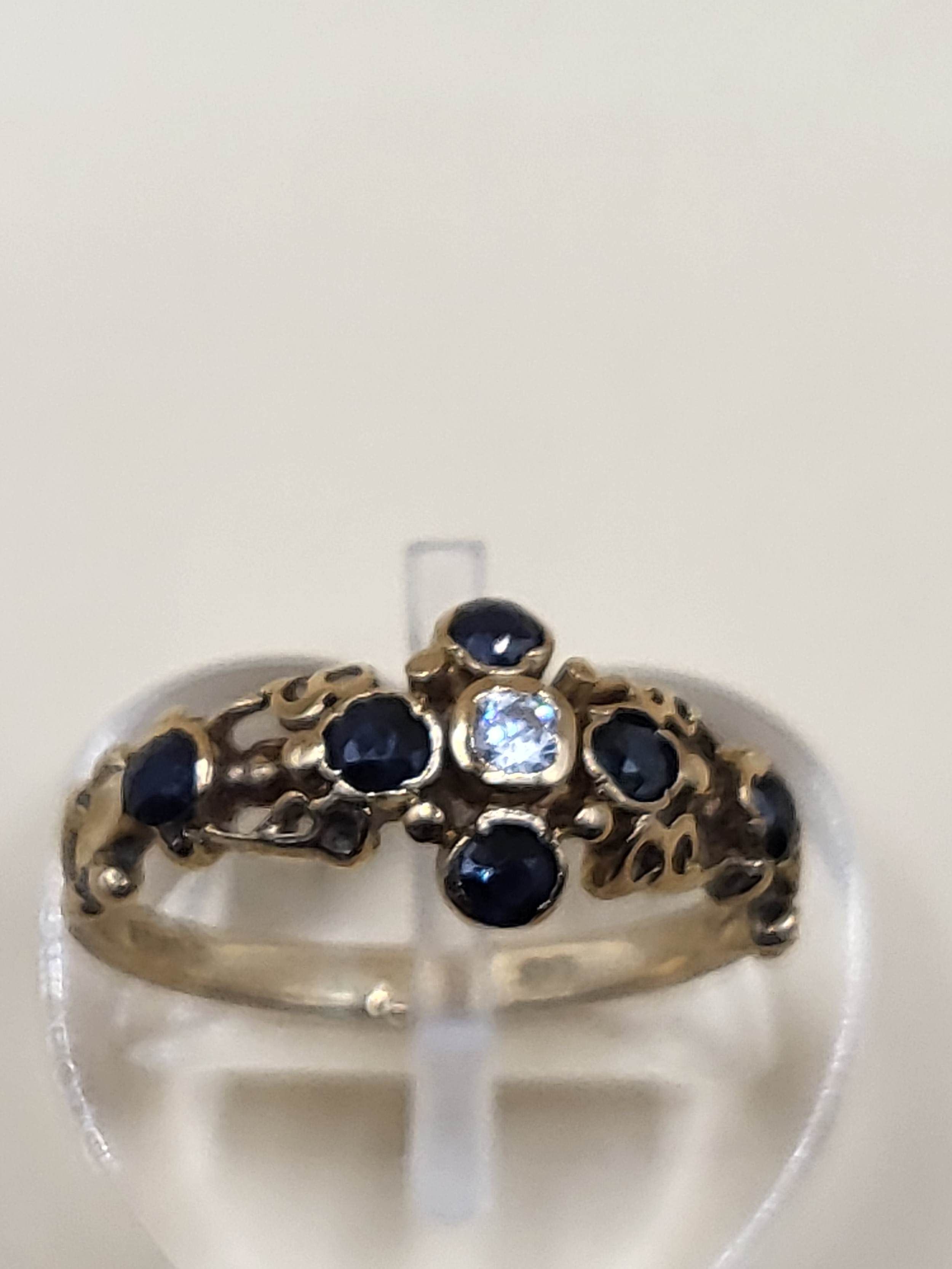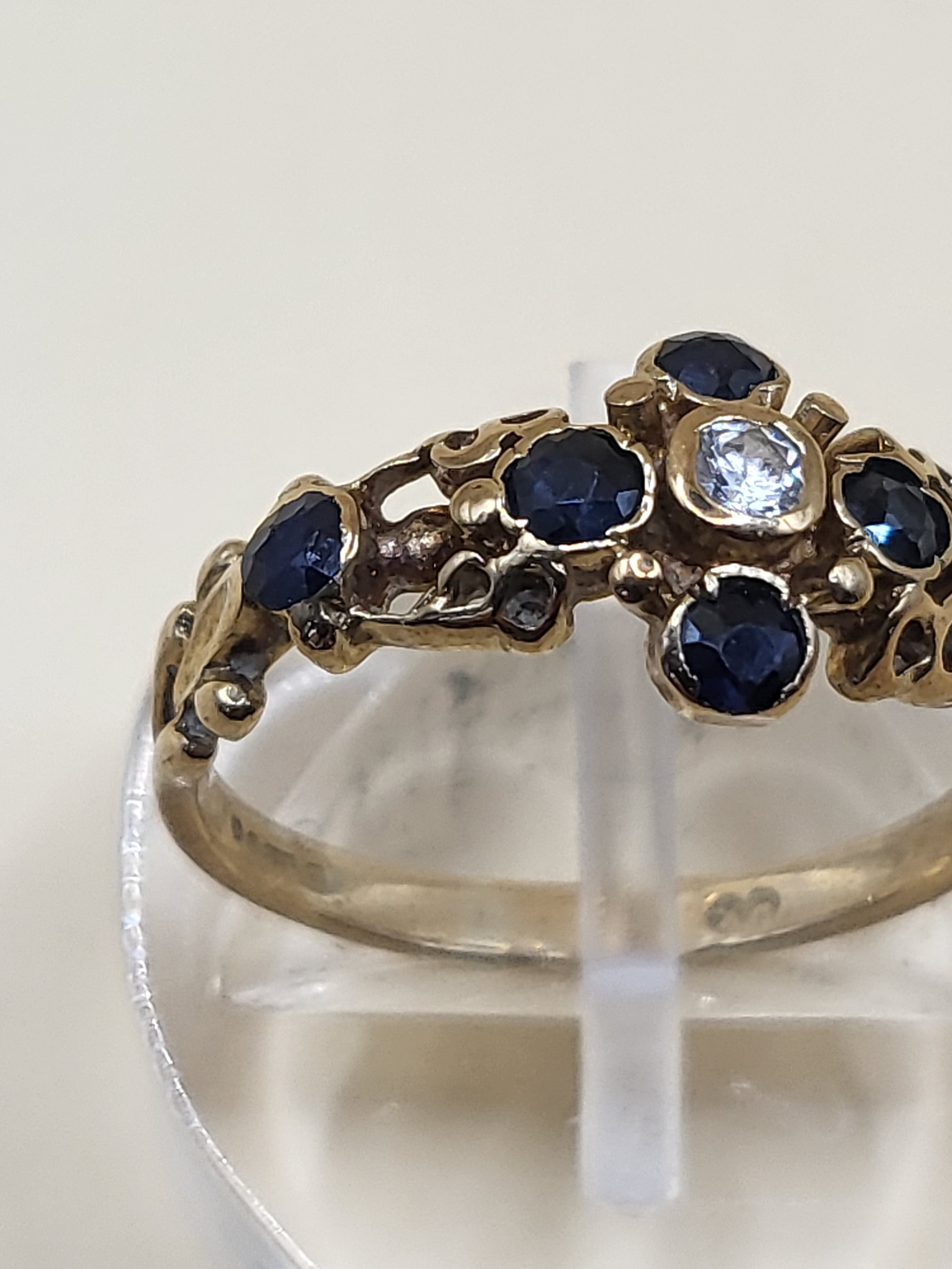 Sapphires & Cubic Zirconia Central Stone 9ct Gold Ring Fully Hallmarked Size L Weighs 1.8g