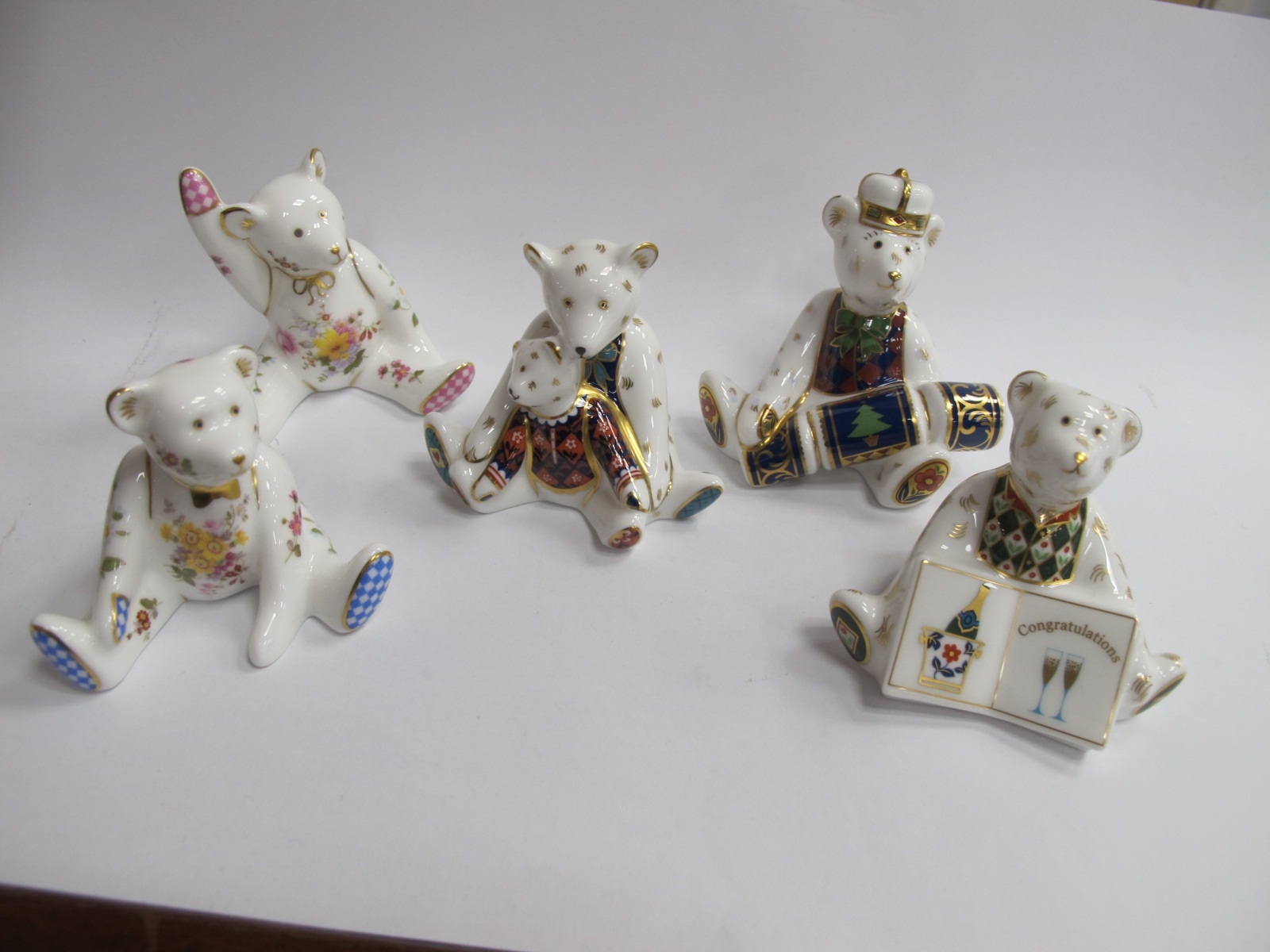 Royal Crown Derby Seated Teddy Bears, including 'Congratulations' 6cm high. (5).