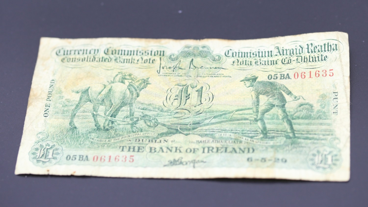 One Pound Ploughman Banknote Issued by Bank of Ireland 6-5-29