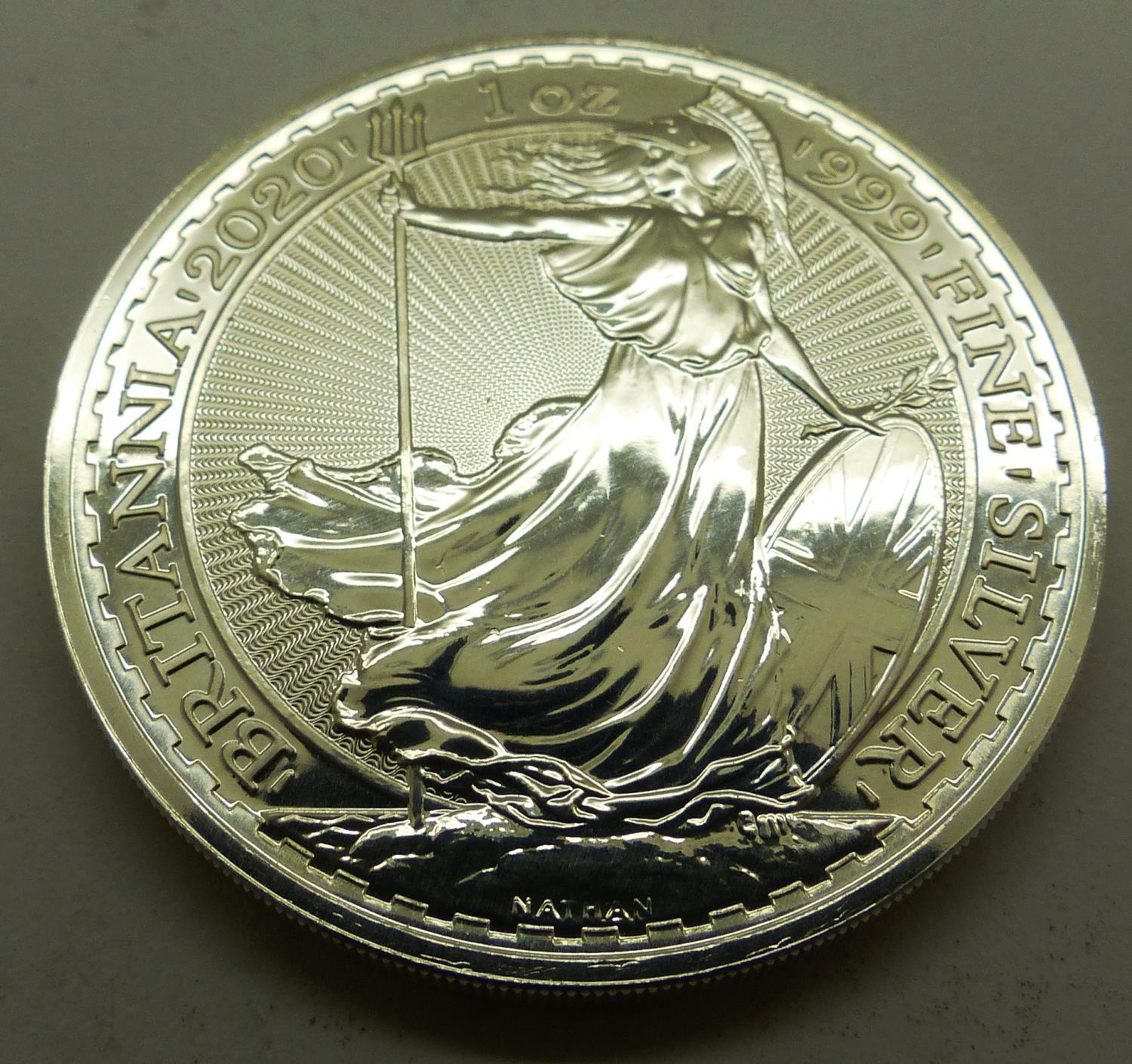 Silver Bullion 1 ounce pure UK Britannia 2020. P&P Group 0 (£5+VAT for the first lot and £1+VAT for subsequent lots)