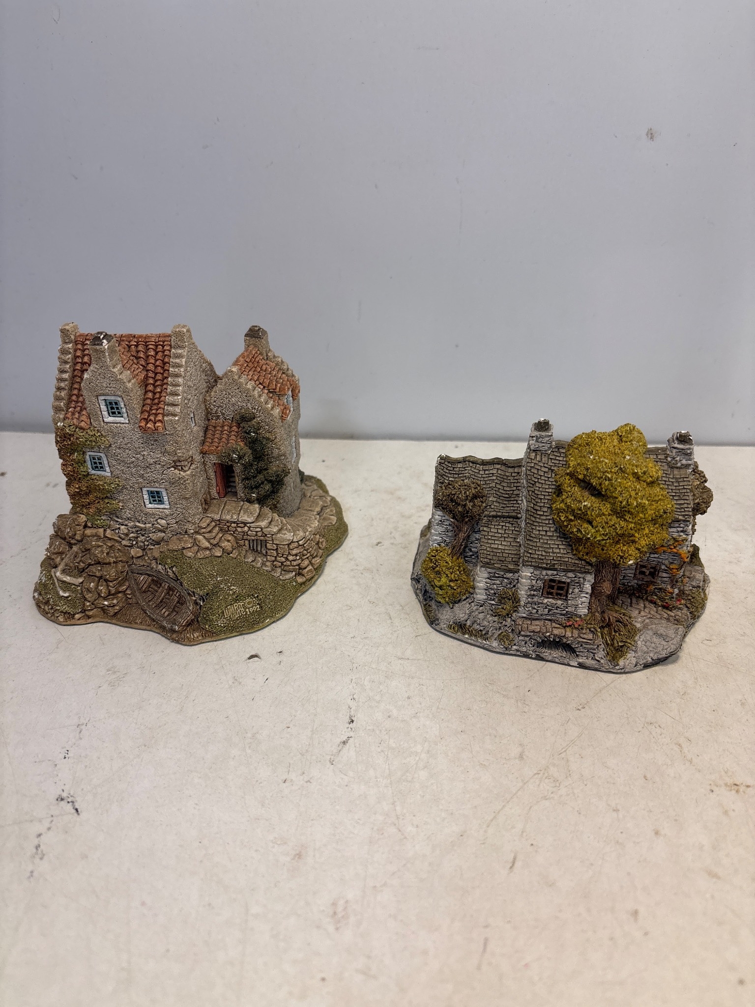 Two Lilliput Lane miniature cottages titled 'Brecon Bach,' handcrafted in the United Kingdom, in good condition.