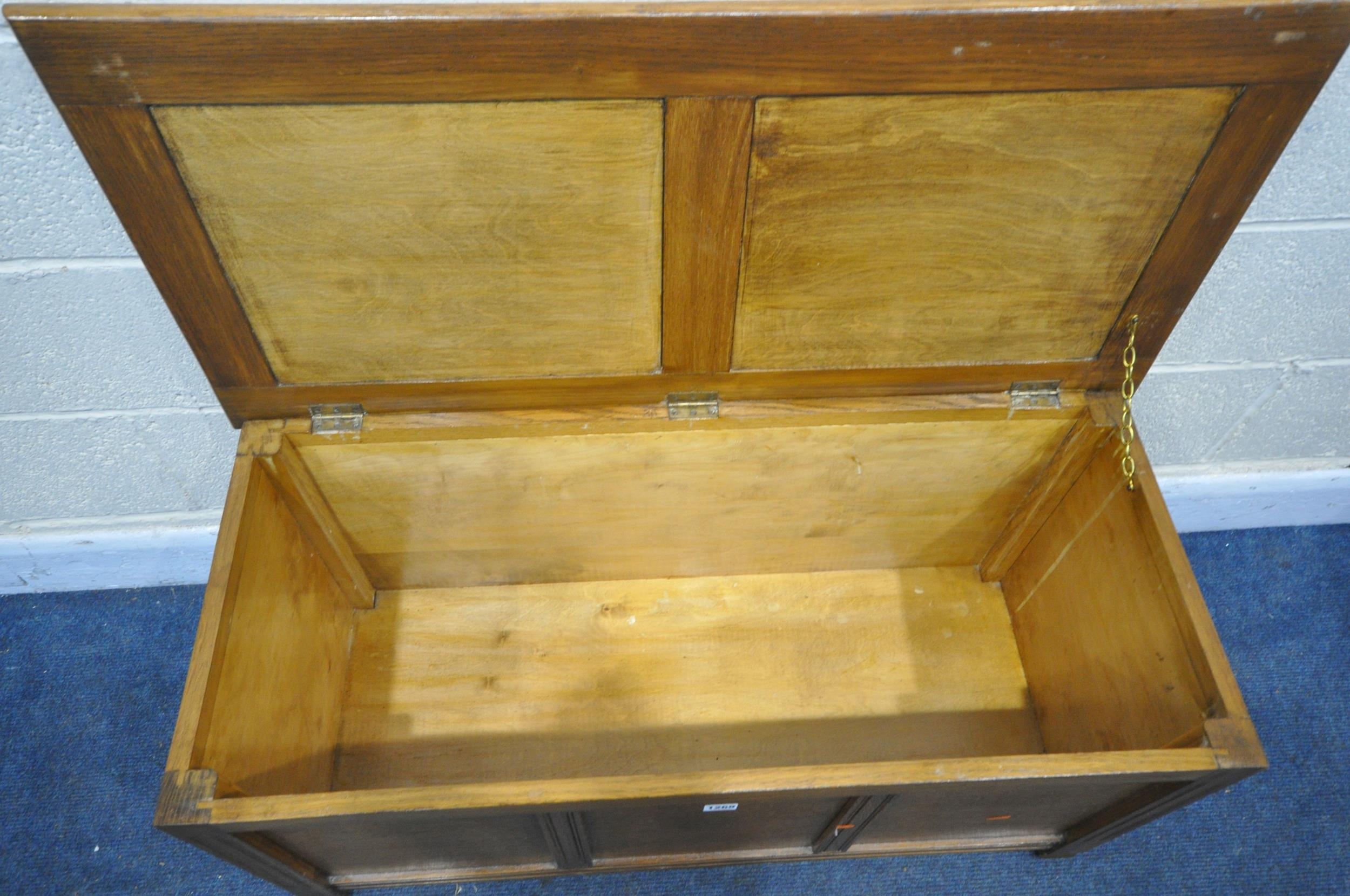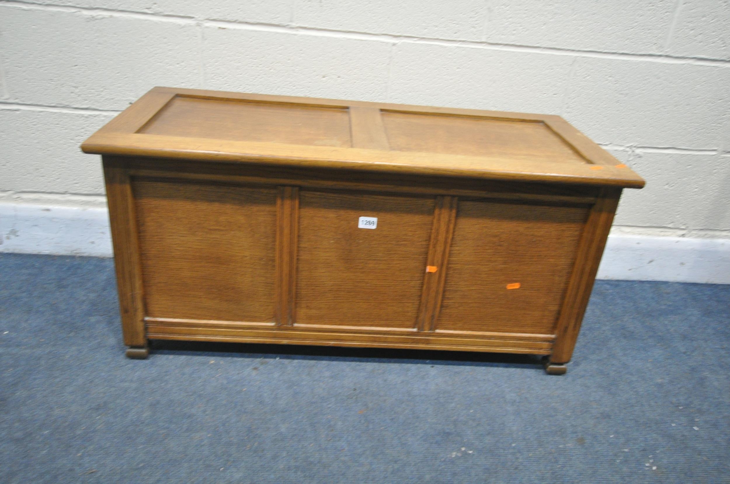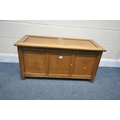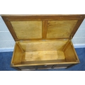 A MODERN PINE PANNELED BLANKET BOX, with a hinged lid, width...