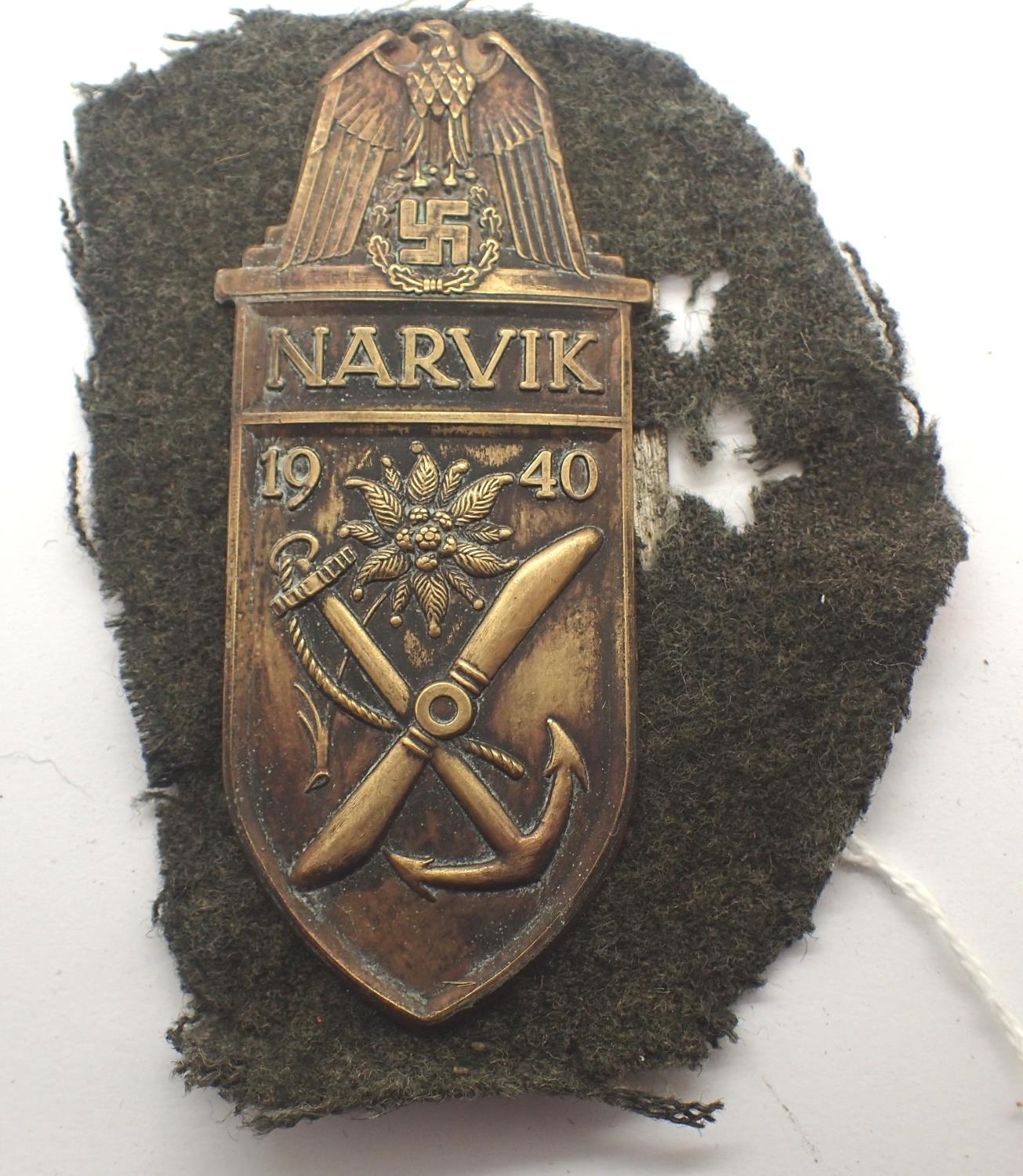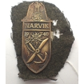 WWII German Narvik Campaign Shield cut from a uniform. P&P Group 1 (£14+VAT for the first lot and £1+VAT for subsequent lots)