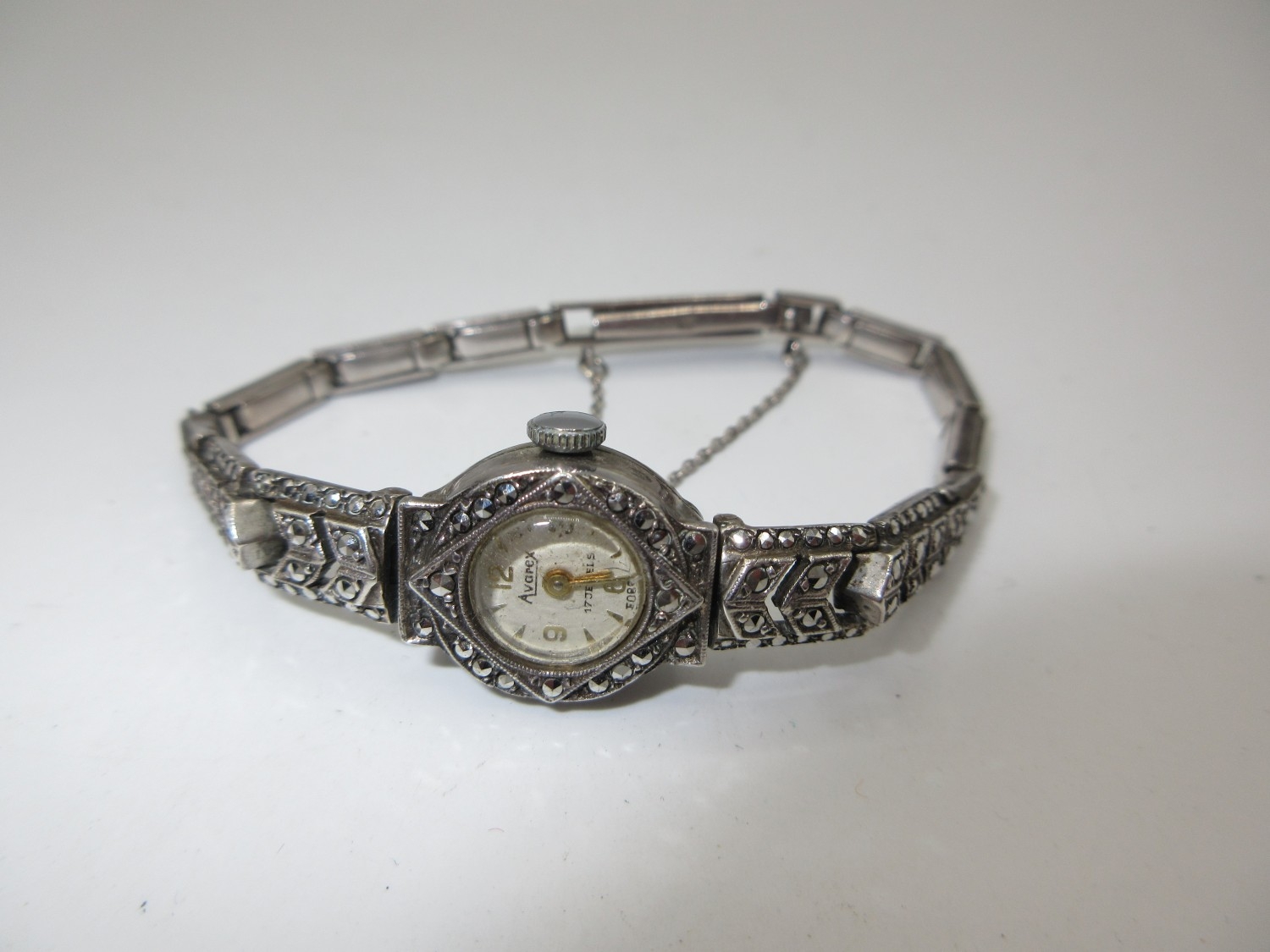 Ladies Avarex Silver and Marcasite Cocktail Watch
