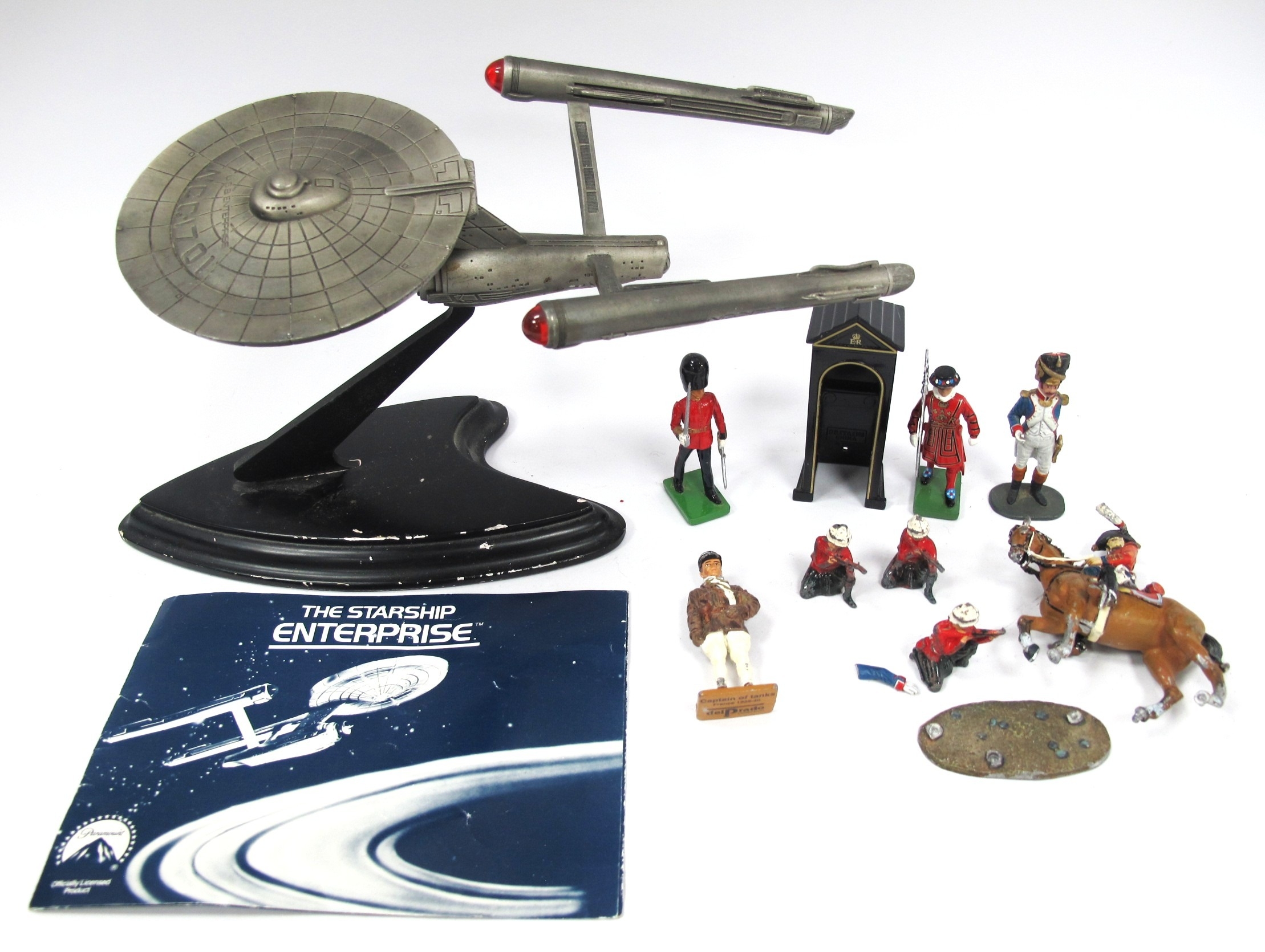 Franklin Mint Star Trek “Starship Enterprise” metal figure with COA, together with metal toy soldier figures including Del Prado example. One tray. [783032/870054]