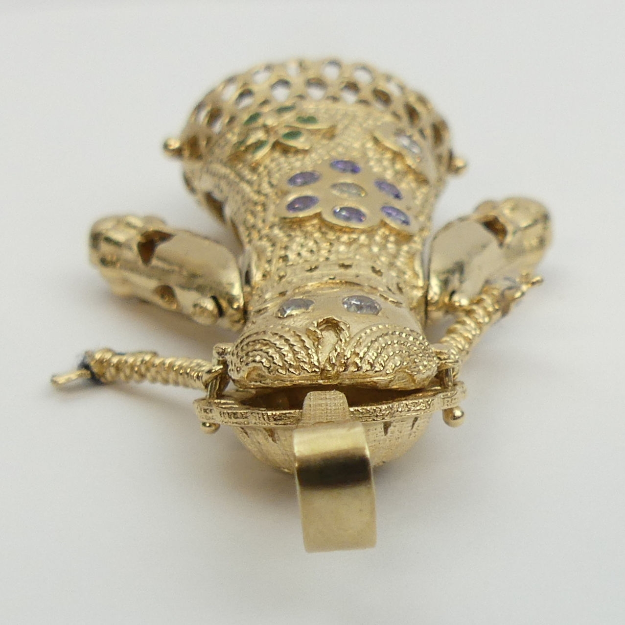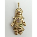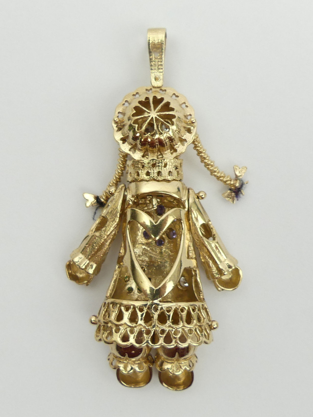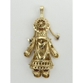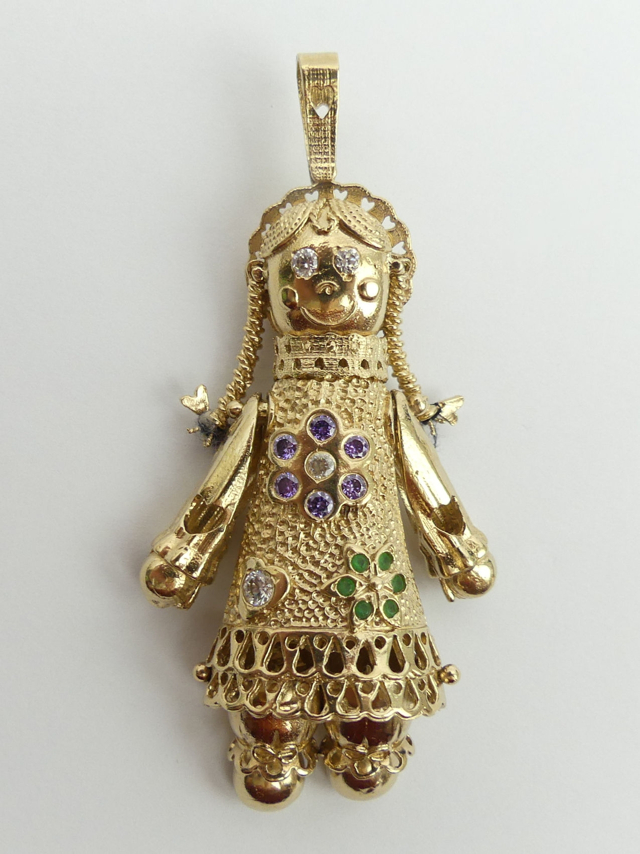 9ct gold stone set articulated rag doll pendant, 30 grams. 76 mm long. UK Postage £12.