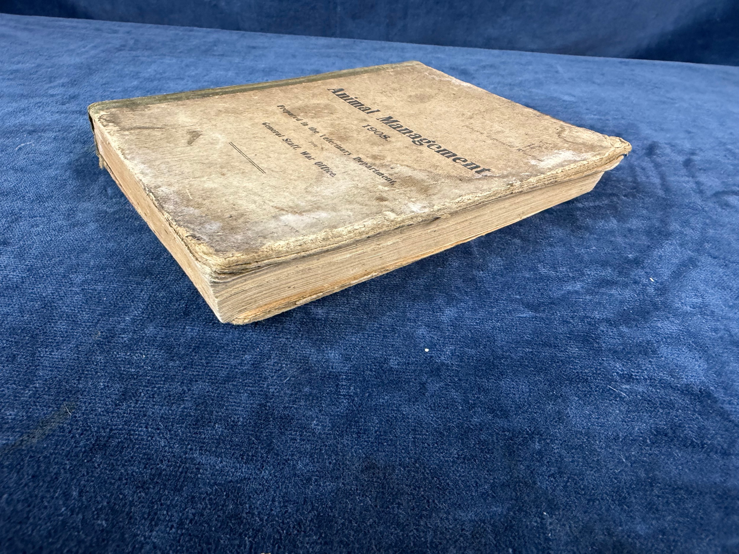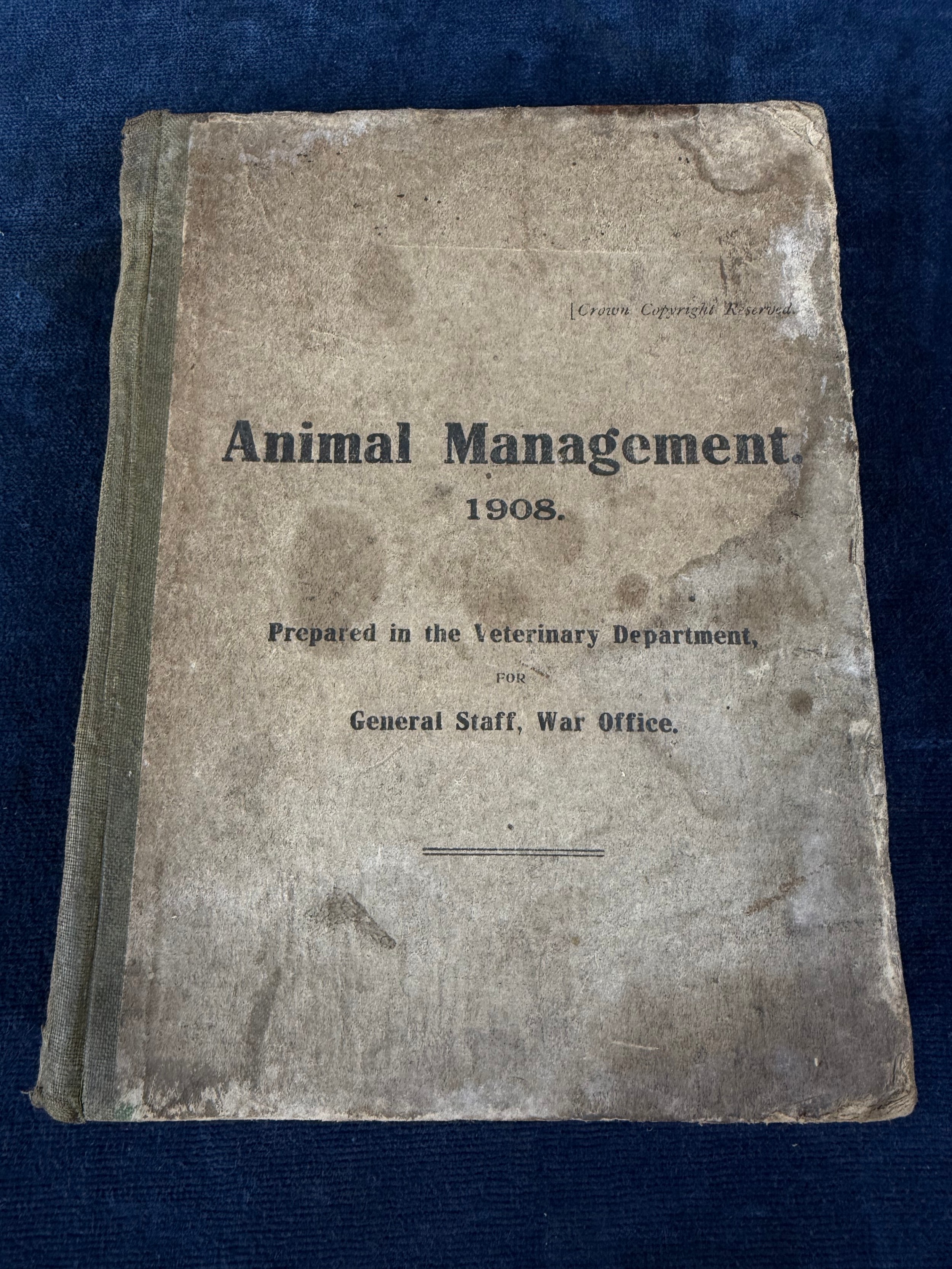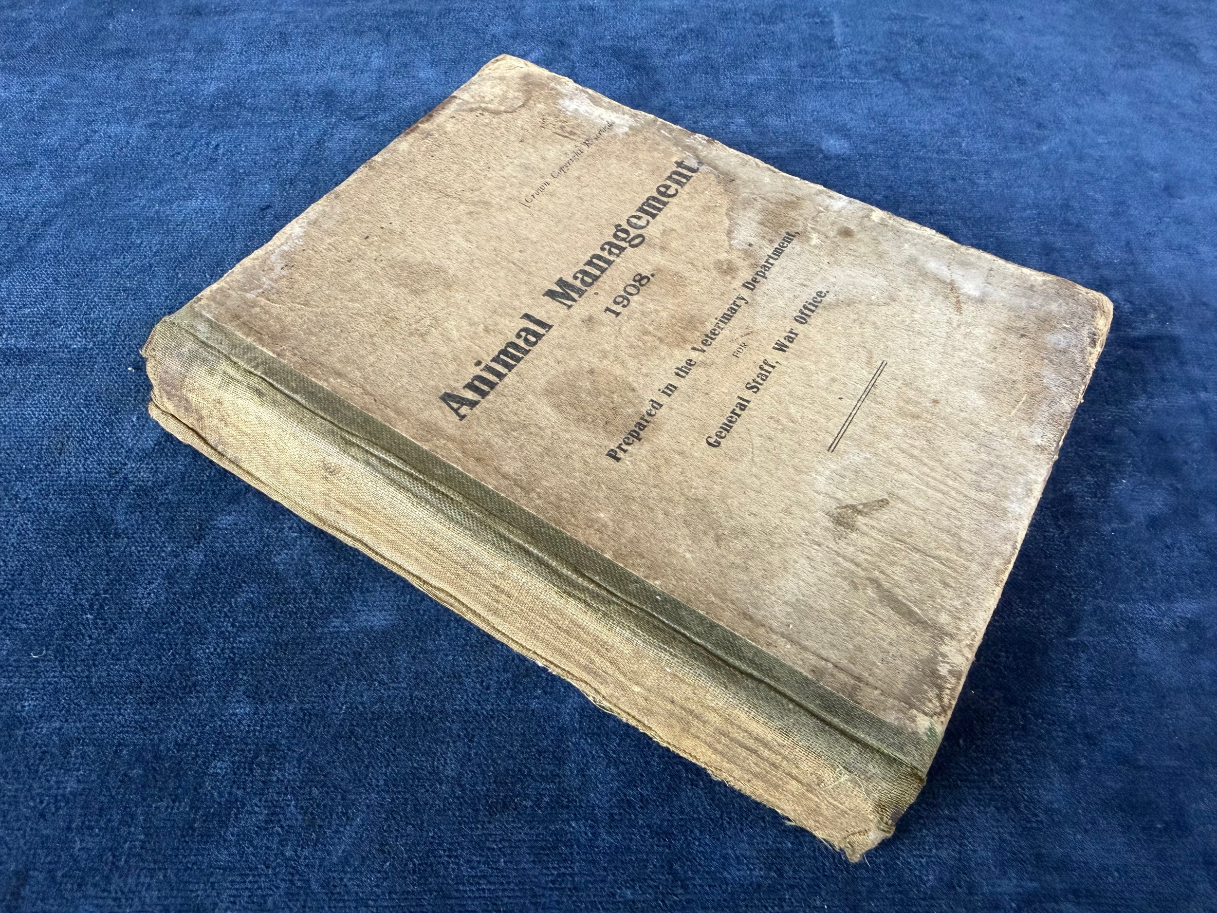 One volume 'Animal Management 1908' prepared in the veterinary department for general staff - war office- reprinted version 19.
