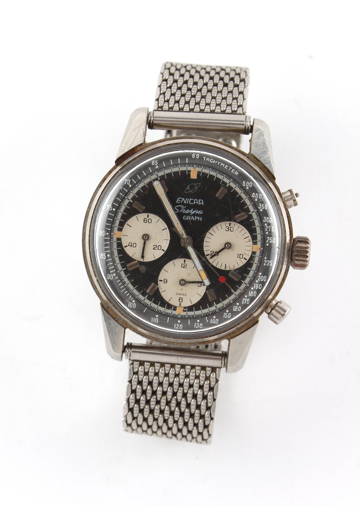 Property of a deceased estate, a private collection of watches - a gentleman's Enicar Sherpa Graph chronograph wristwatch, ref. 072-02-01, circa 1965, stainless steel, 40mm diameter, upper push button missing, main time keeping function appears to be working but push button functionality not tested.