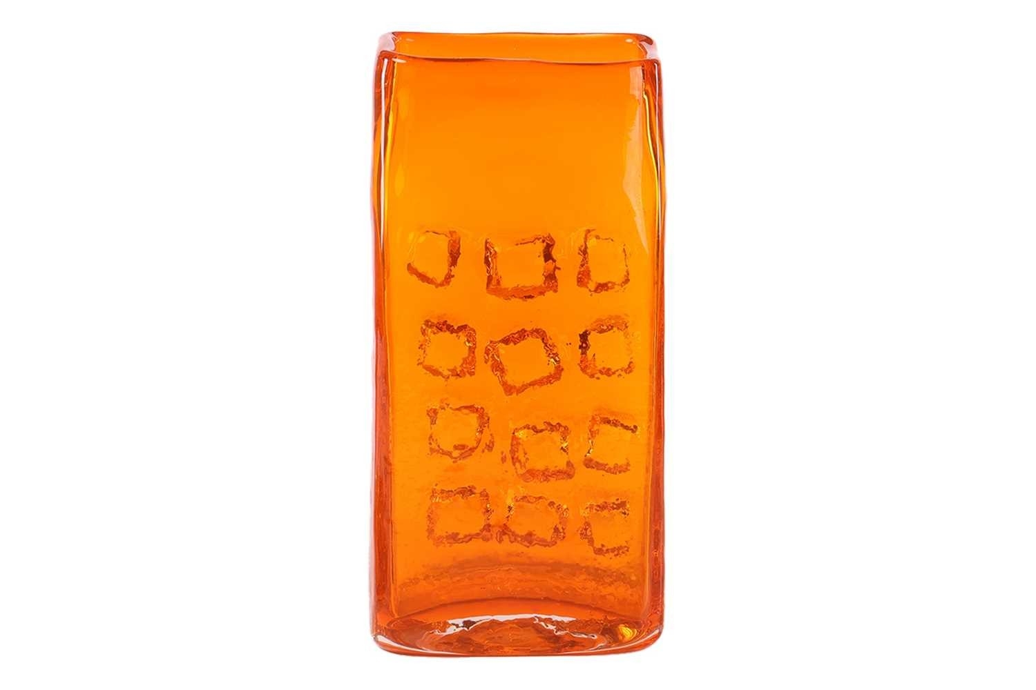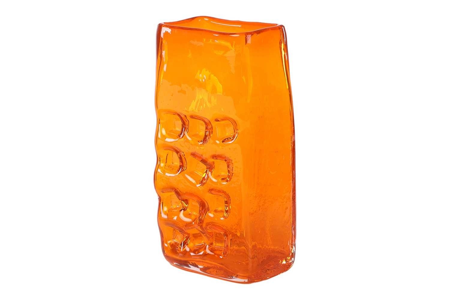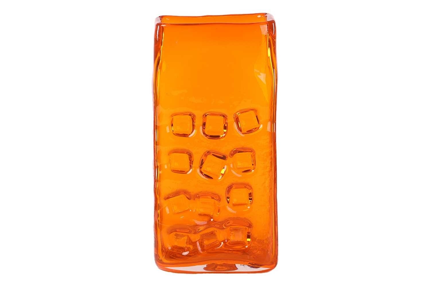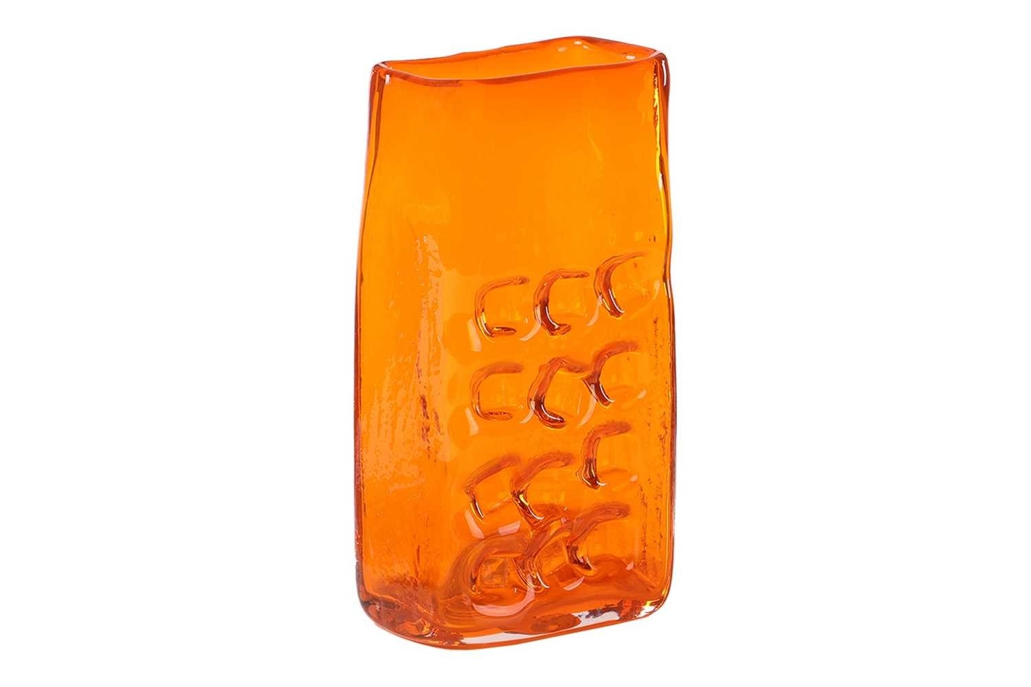 Geoffrey Baxter (1922-1995) for Whitefriars, a Textured Range 'Nuts 'n' Bolts' vase in Tangerine, No. 9668, c.1970, 26.7 cm high x 12.8 cm wide. No chips or cracks. Small frit to the top rim.