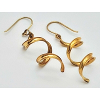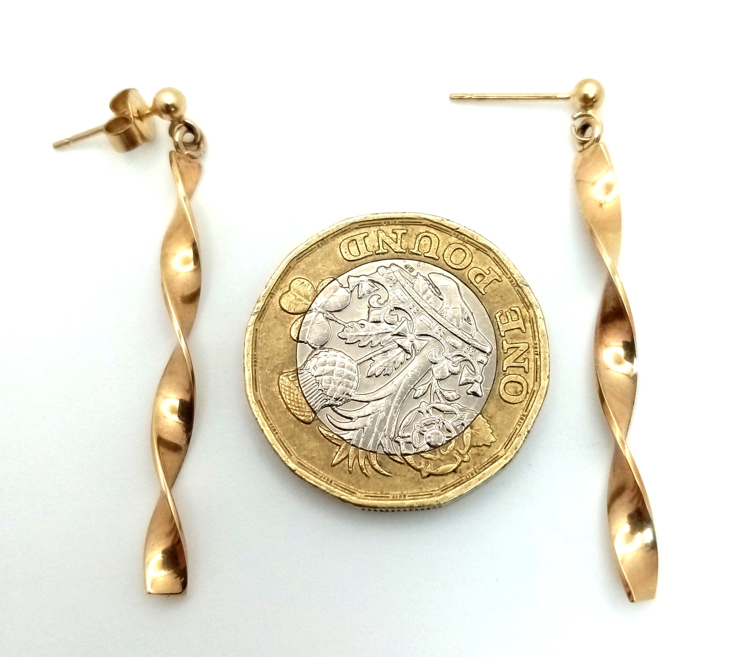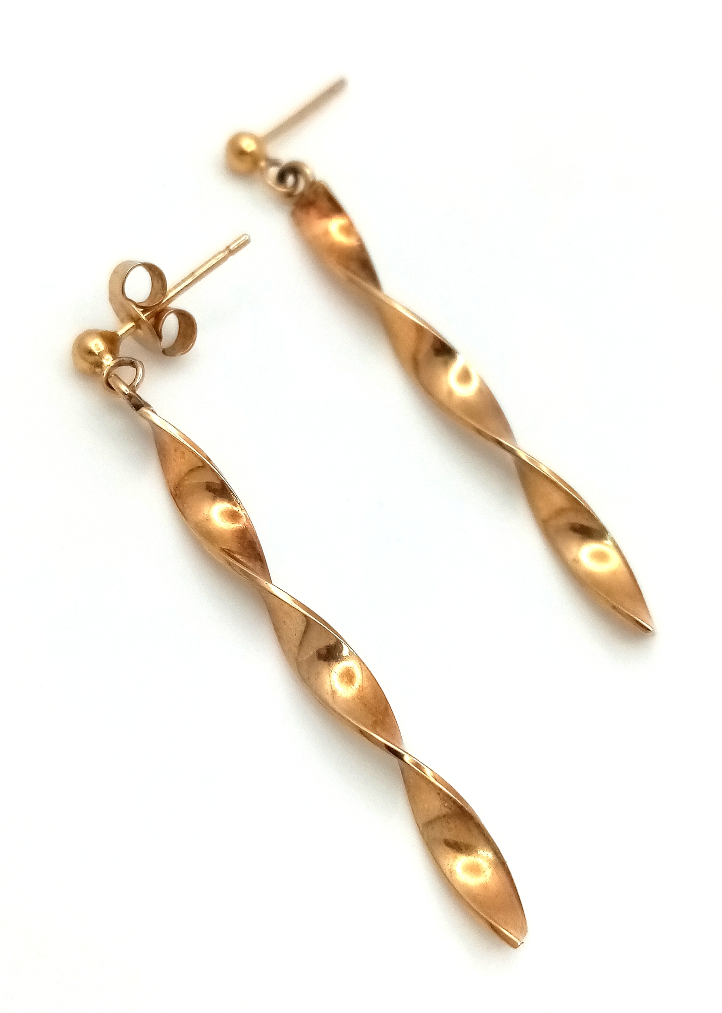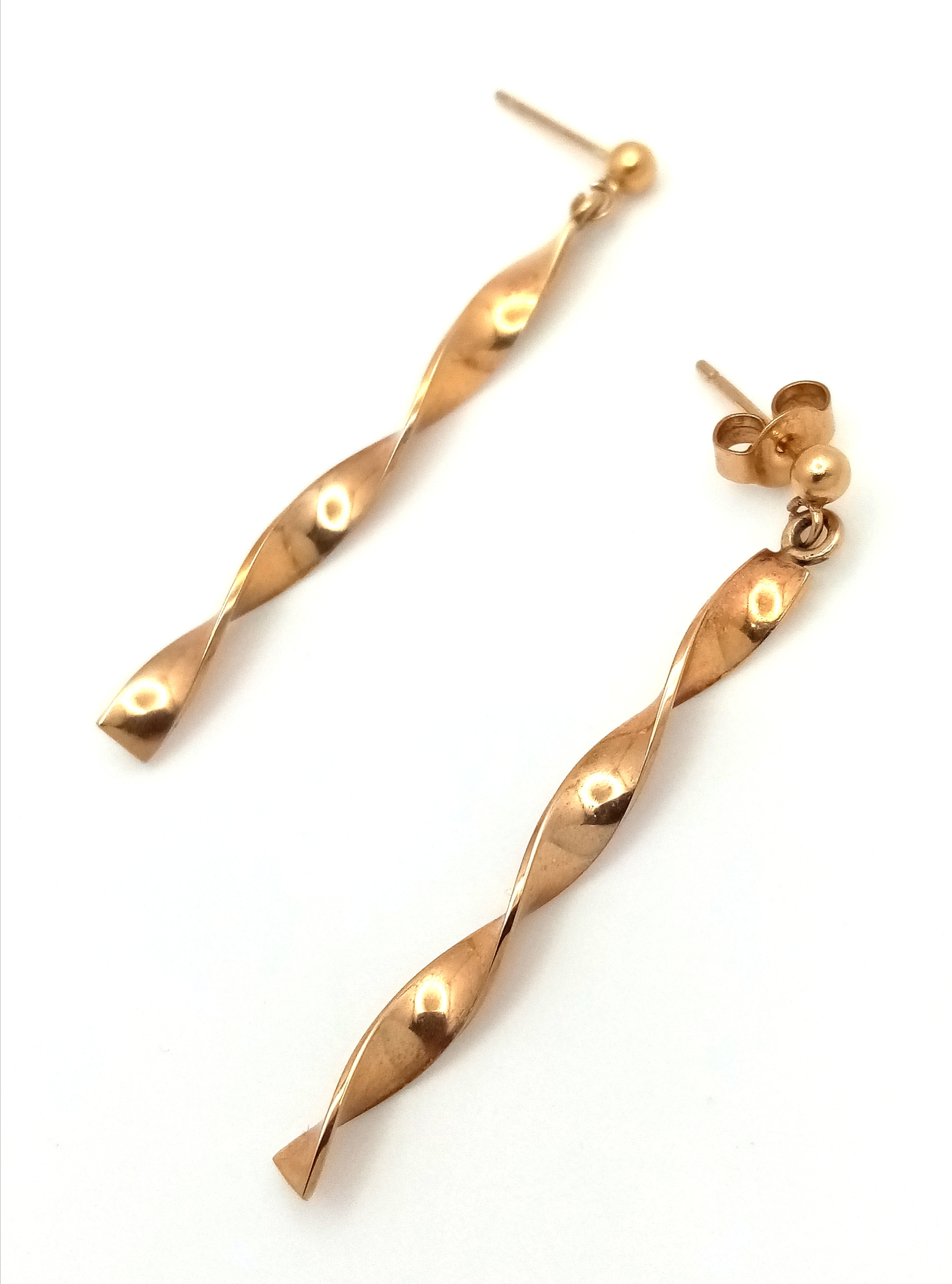 A Pair of 9K Yellow Gold Twist Drop Earrings. 3.5cm. 1.85g.