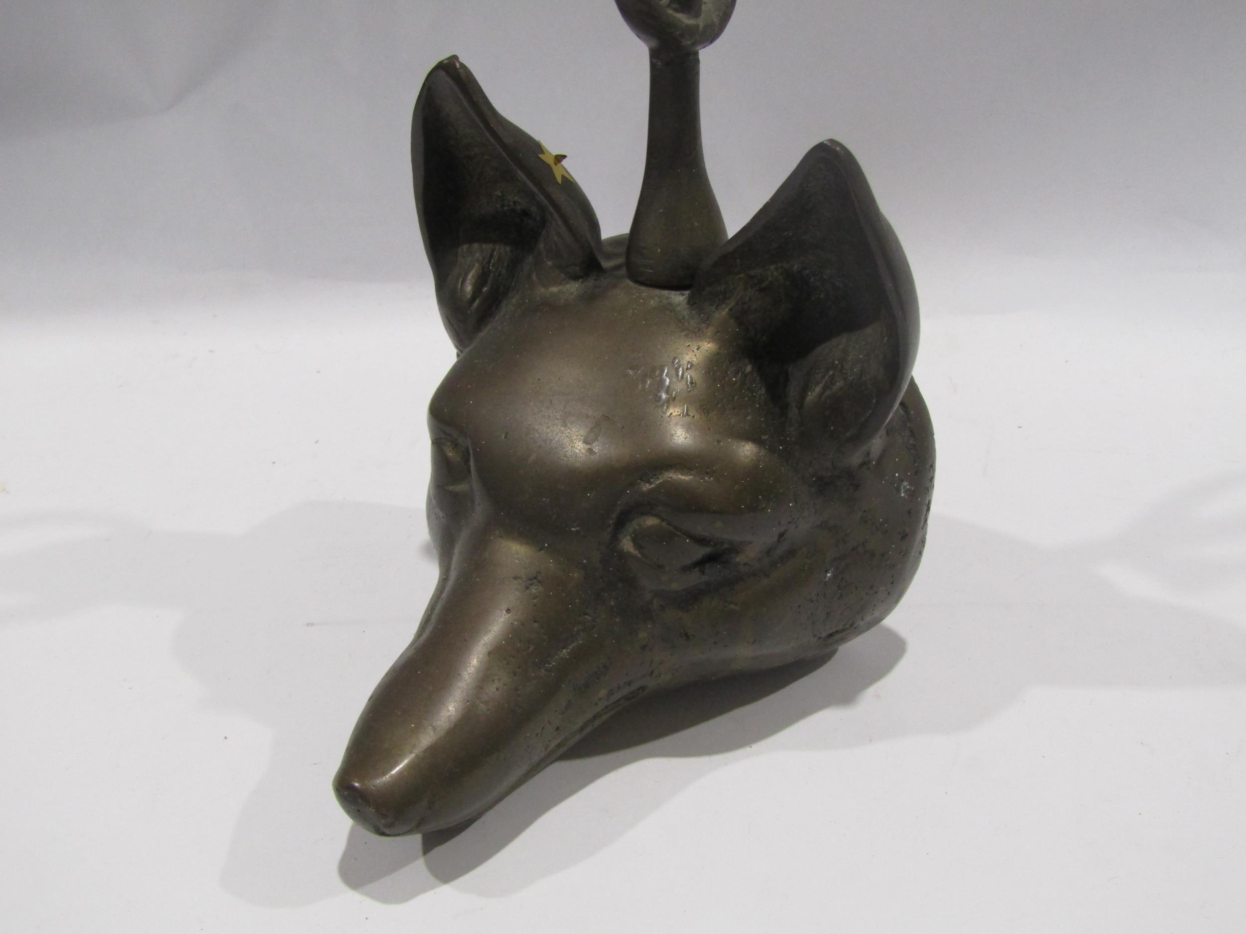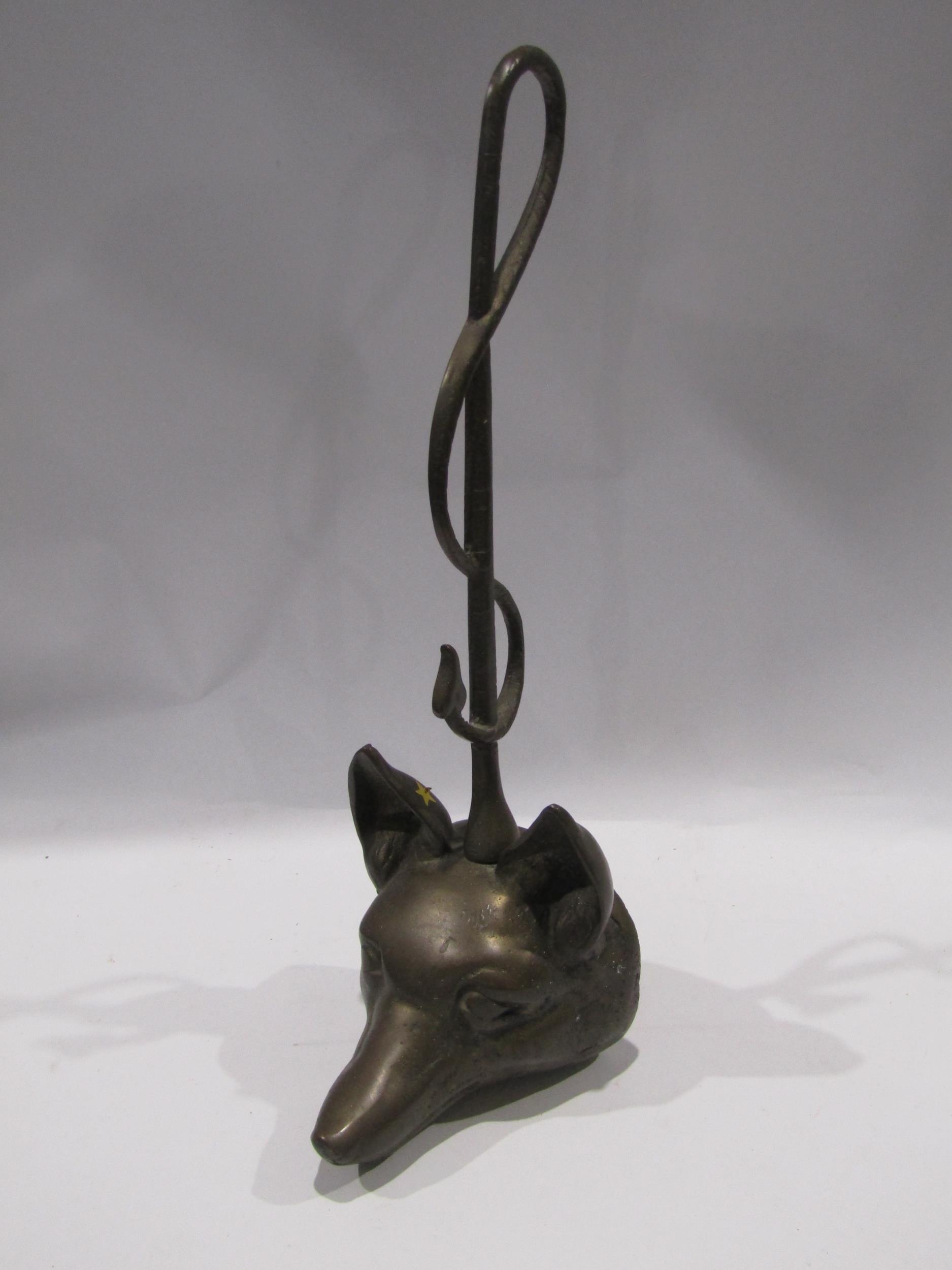 A vintage brass fox head doorstop