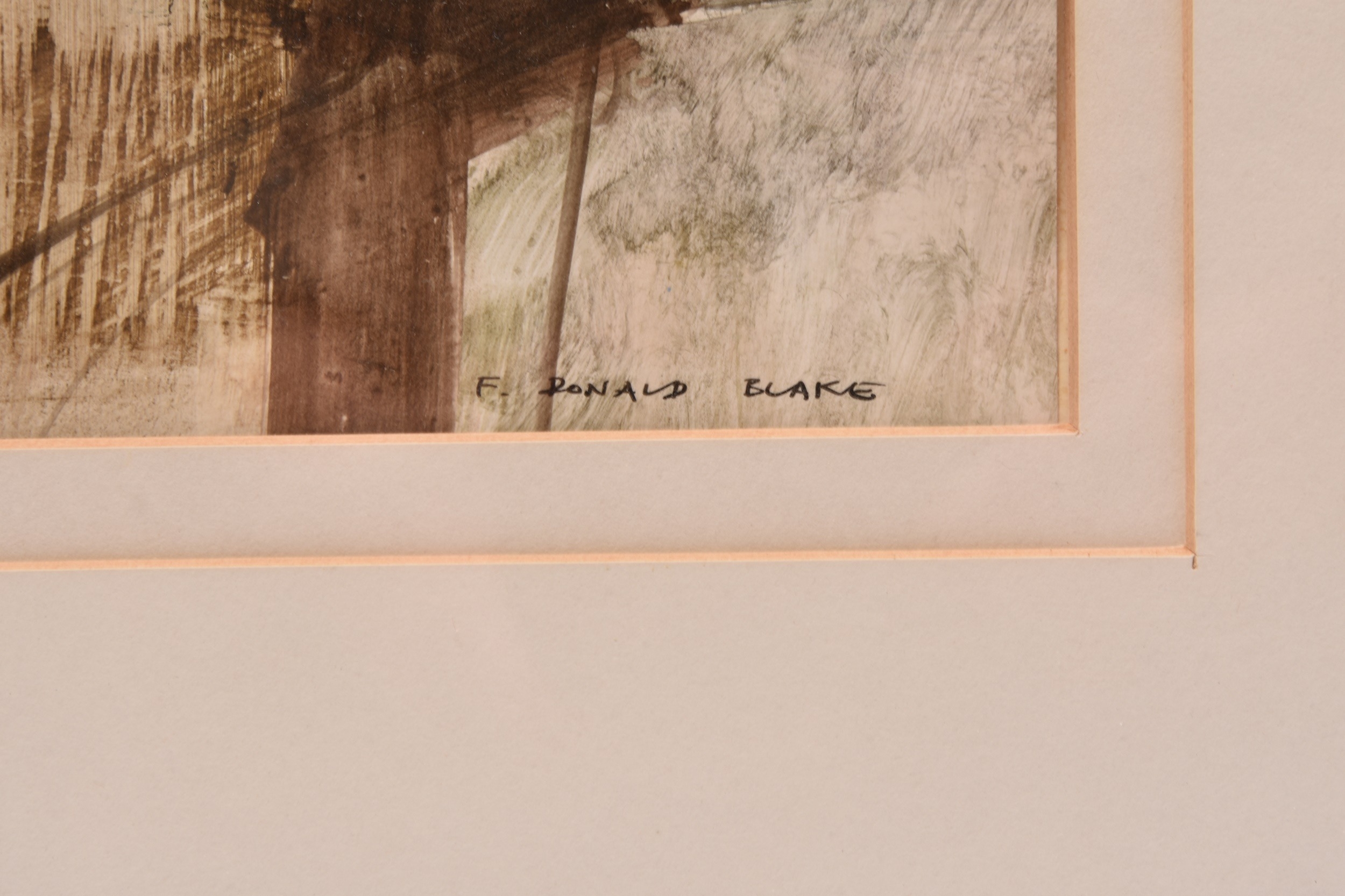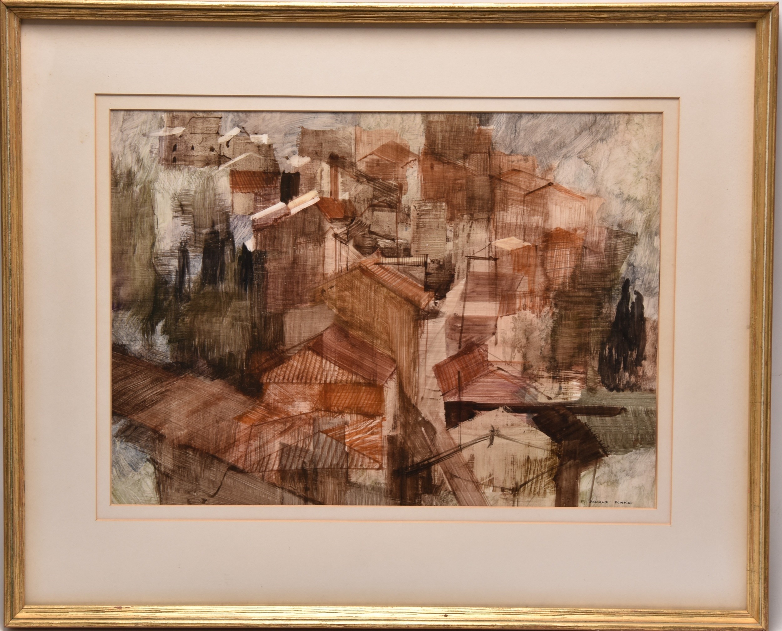 Frederick Donald Blake (1908-1997) Village near La Spezia, signed lower right, label with title to the back, oil, 34 x 47cm, frame 53.5 x 65cm, glazed