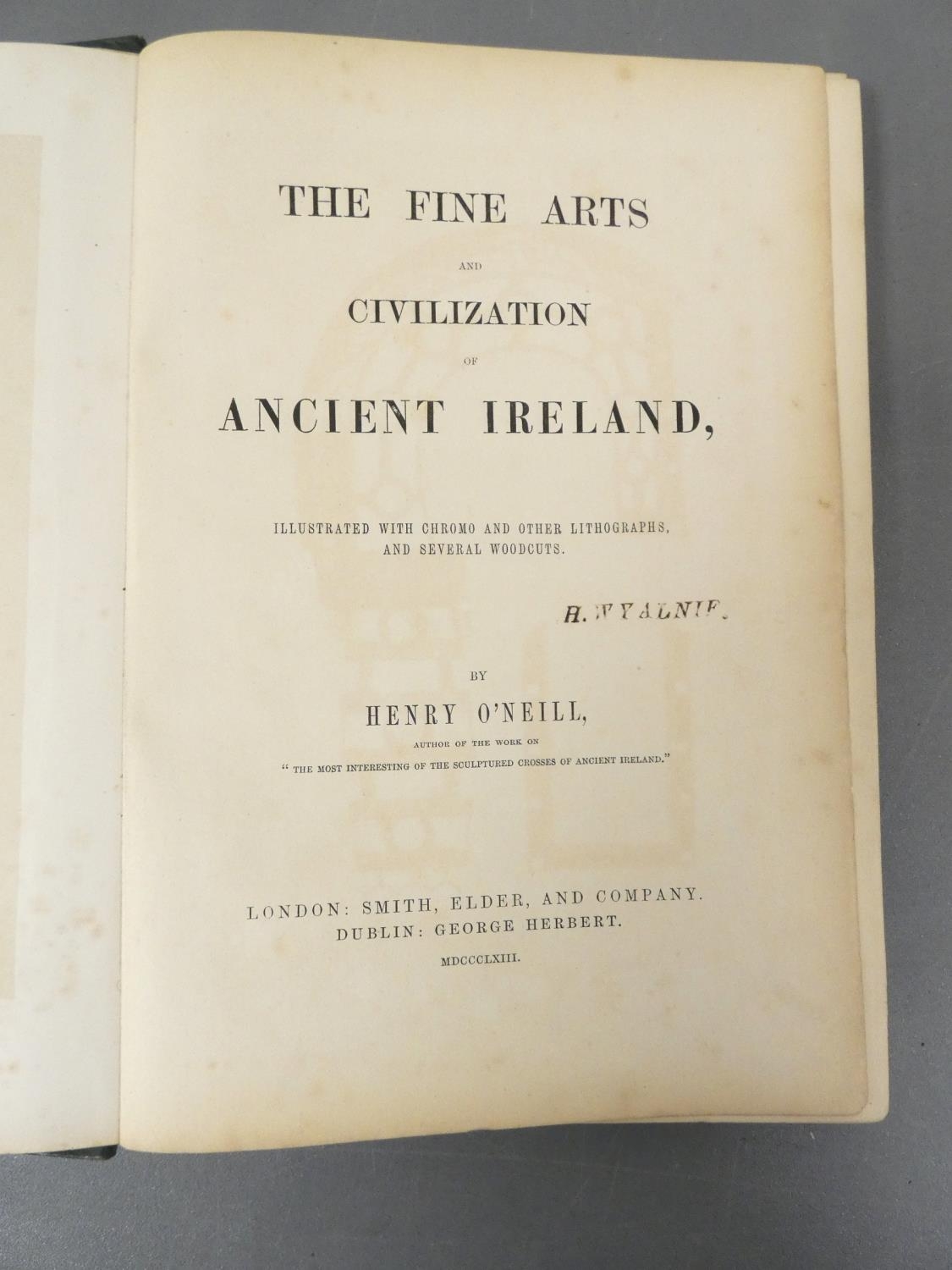 O'NEILL HENRY. The Fine Arts & Civilisation of Ancient Ireland. Chromolitho plates & other illus. Quarto. Orig. green cloth, rubbing & wear, press cuttings & annotations to endpapers. 1863.