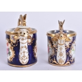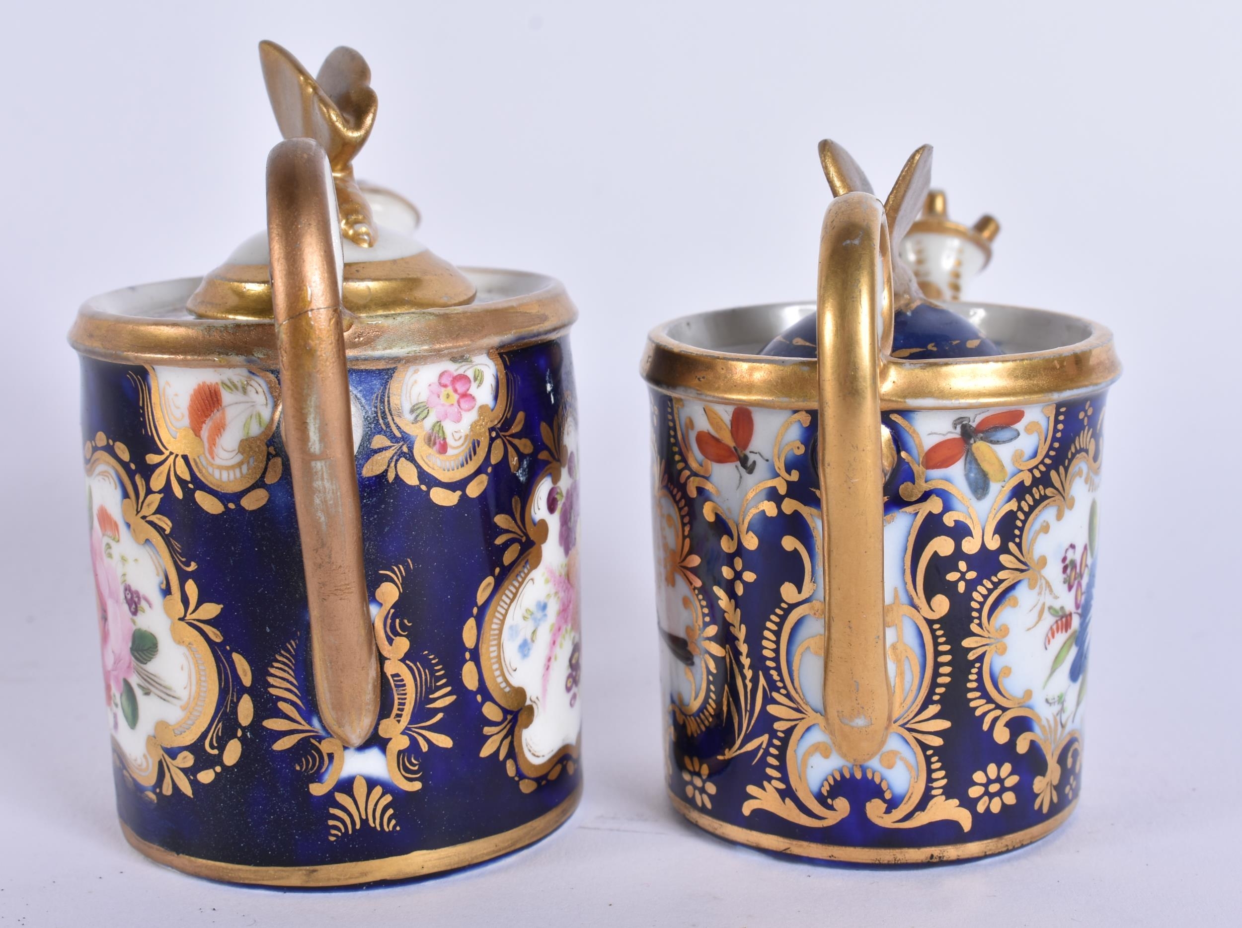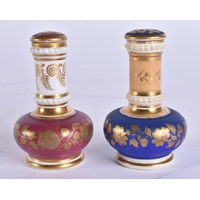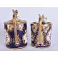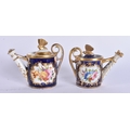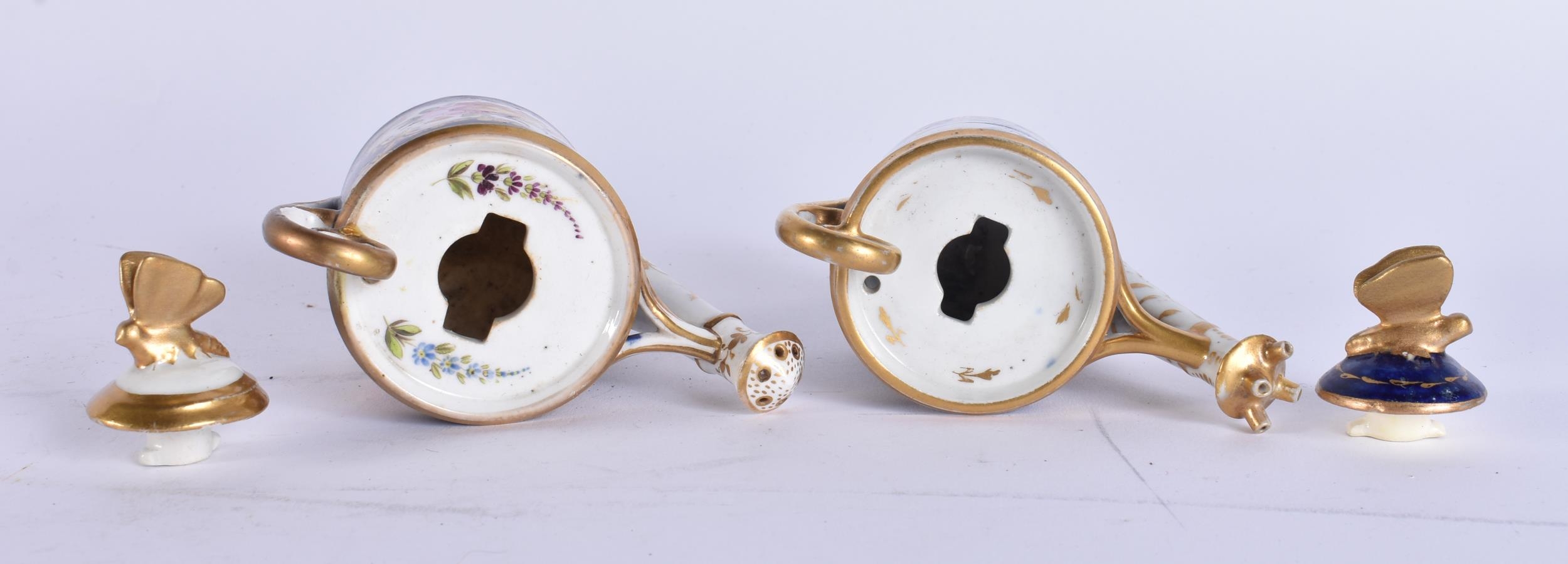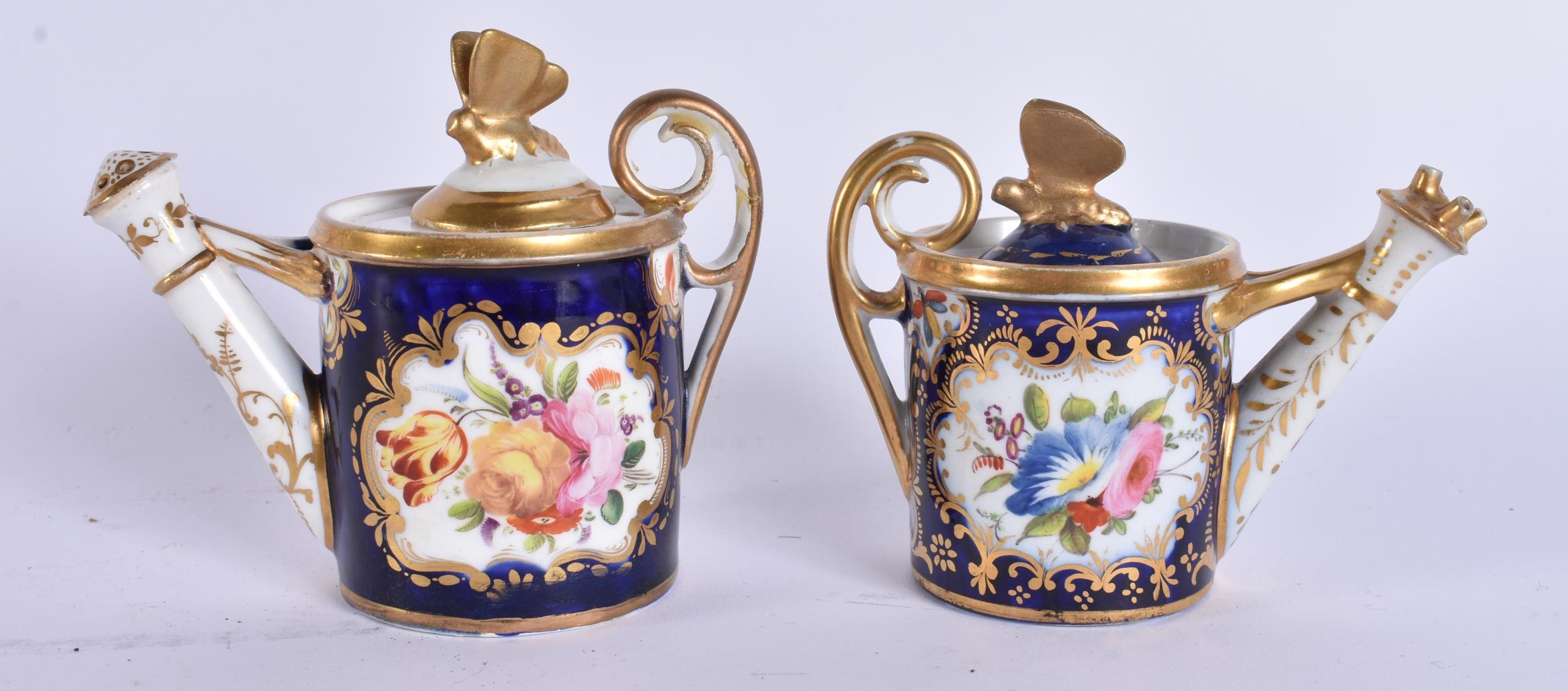 A RARE PAIR OF EARLY 19TH CENTURY ENGLISH PORCELAIN WATERING CANES possibly cruets. 9.5 cm wide.